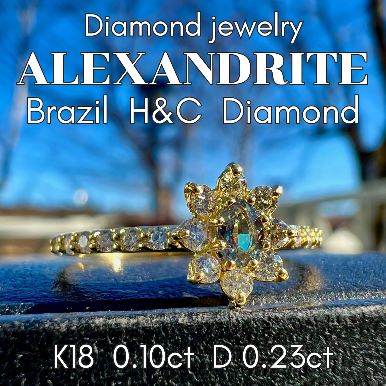 K18ブラジル産アレキサンドライトALL H&C ダイヤモンドリング