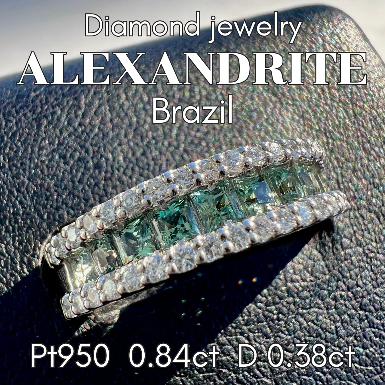 Pt950 ブラジル産アレキサンドライト一文字リング 0.84ct