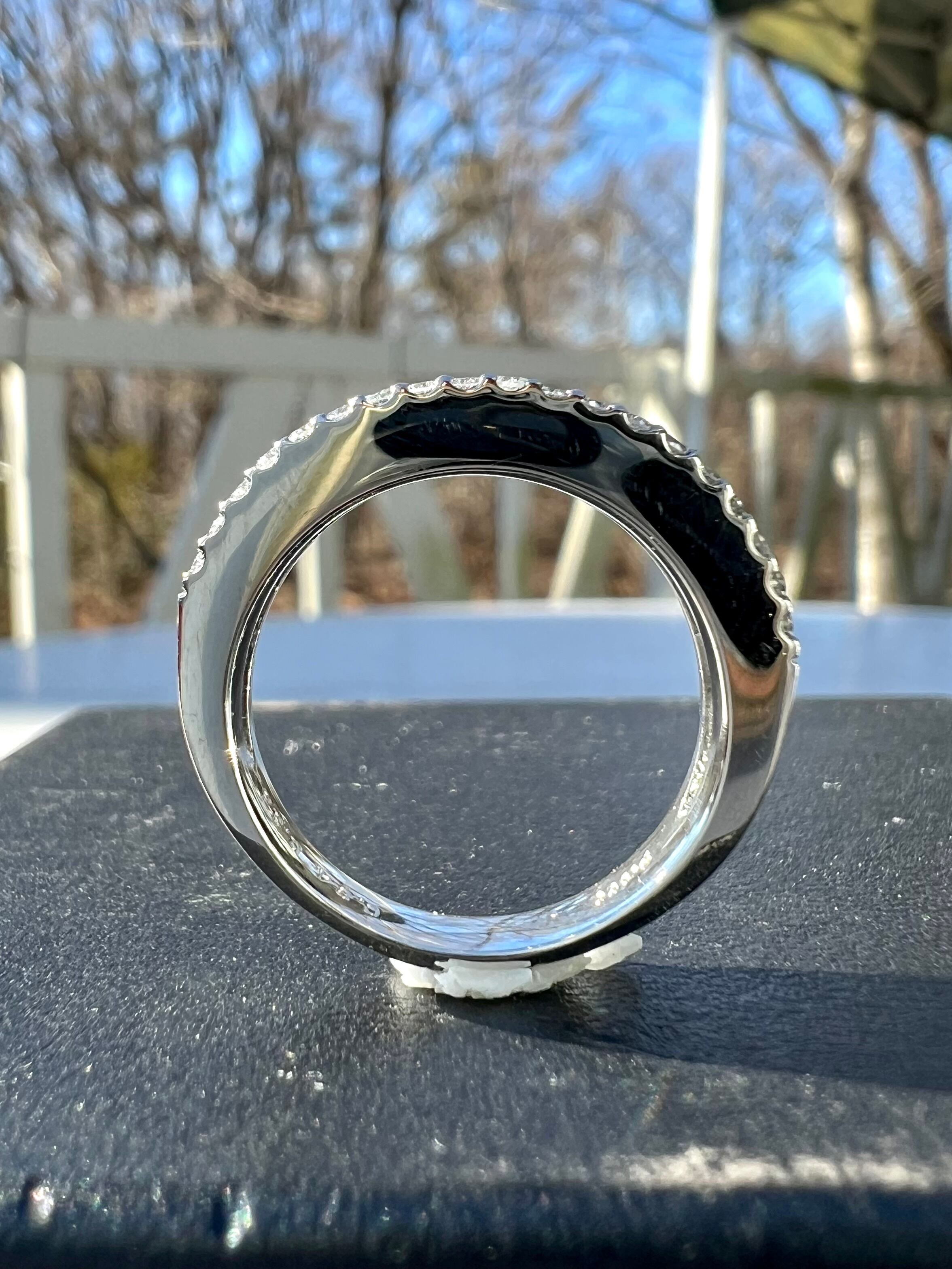 リングの上下にダイヤモンド1.3mmを高さを上げてリブ状に配置しとてもエレガントなデザインしました。