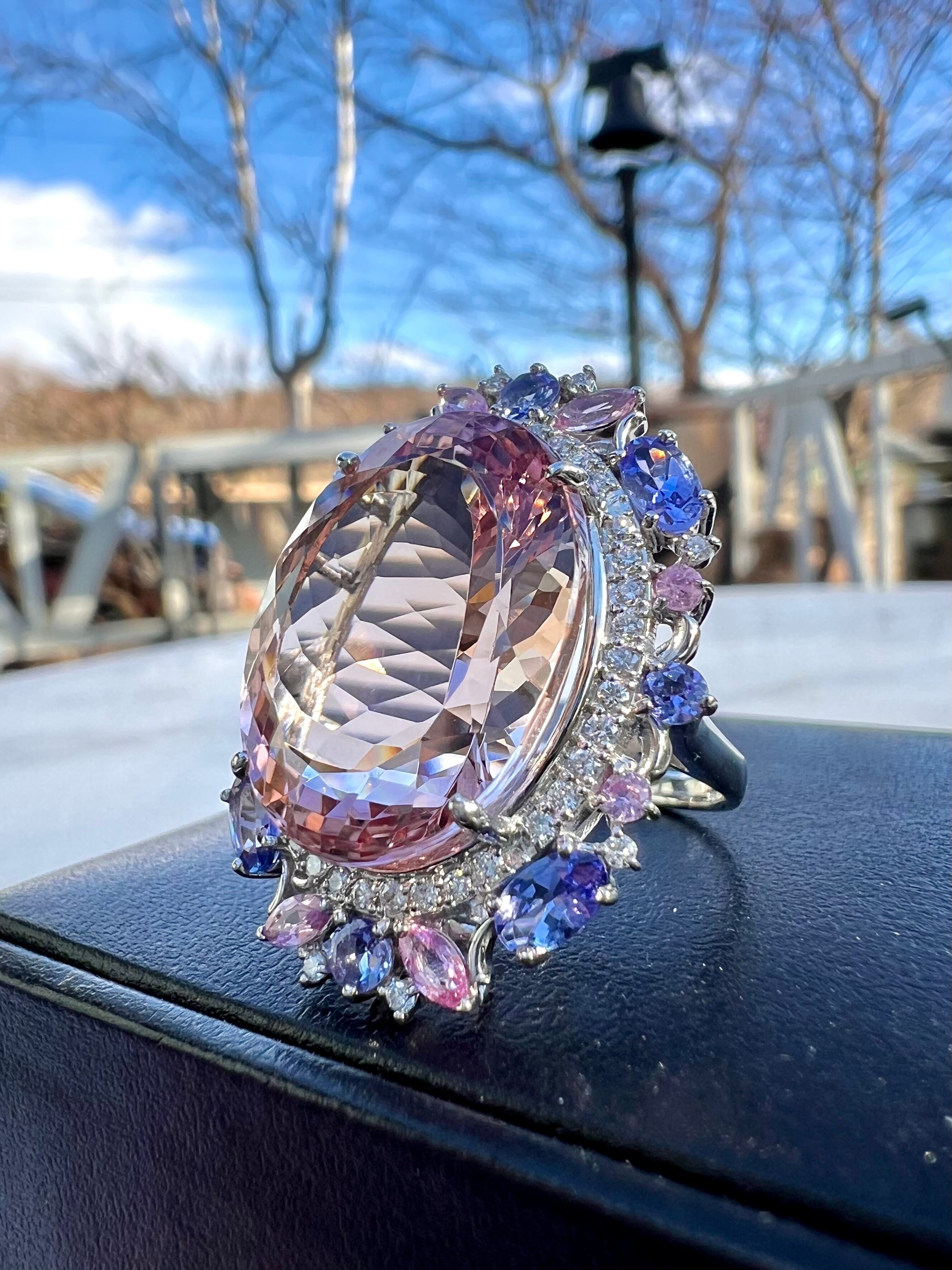 今回のデザインは脇石にダイヤだけではなくタンザナイトを1.24ctピンクサファイアを0.55ct配置しました。