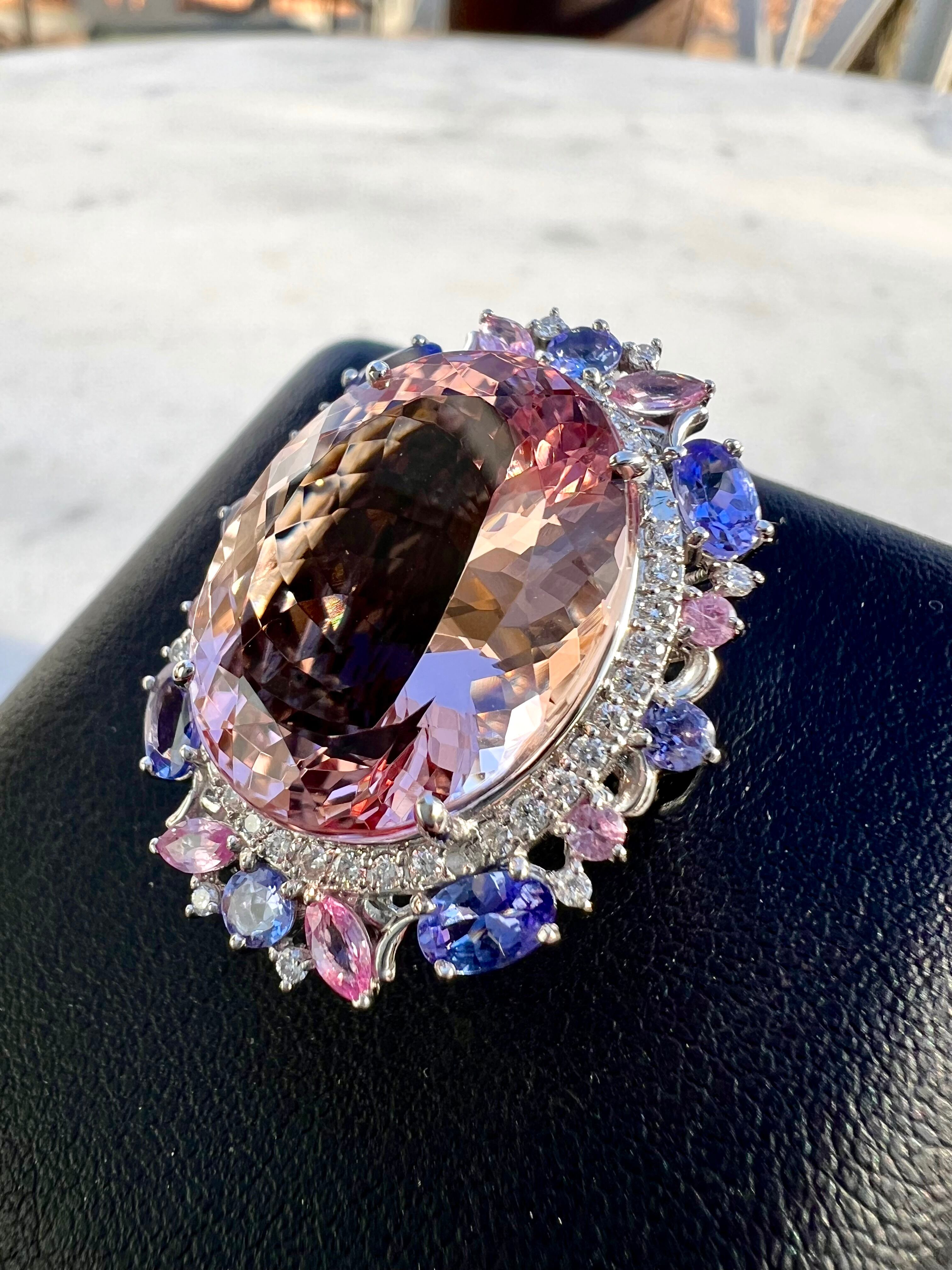 モルガナイトの色が濃いので自信を持ってPt950にて作成しました。