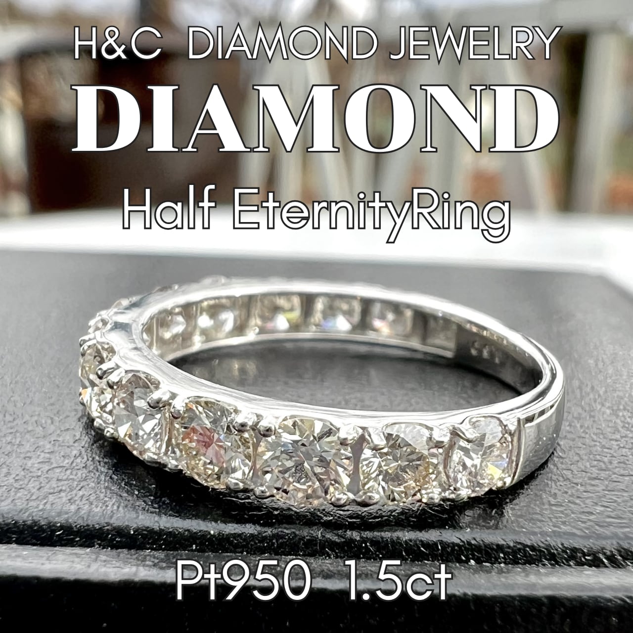超豪華!高品質ダイヤ仕様!Pt950 H&Cダイヤモンド1.5ct ハーフエタニティリング GGSカード鑑別付属