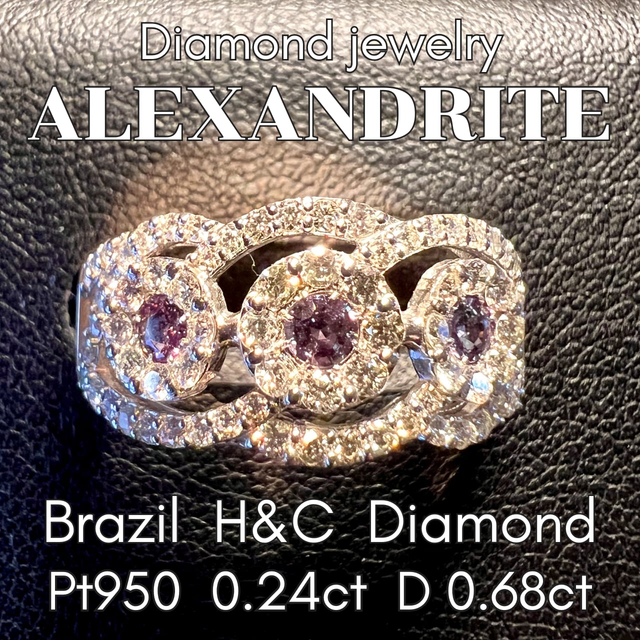 Pt950ブラジル産アレキサンドライトALL H&C ダイヤモンドリング