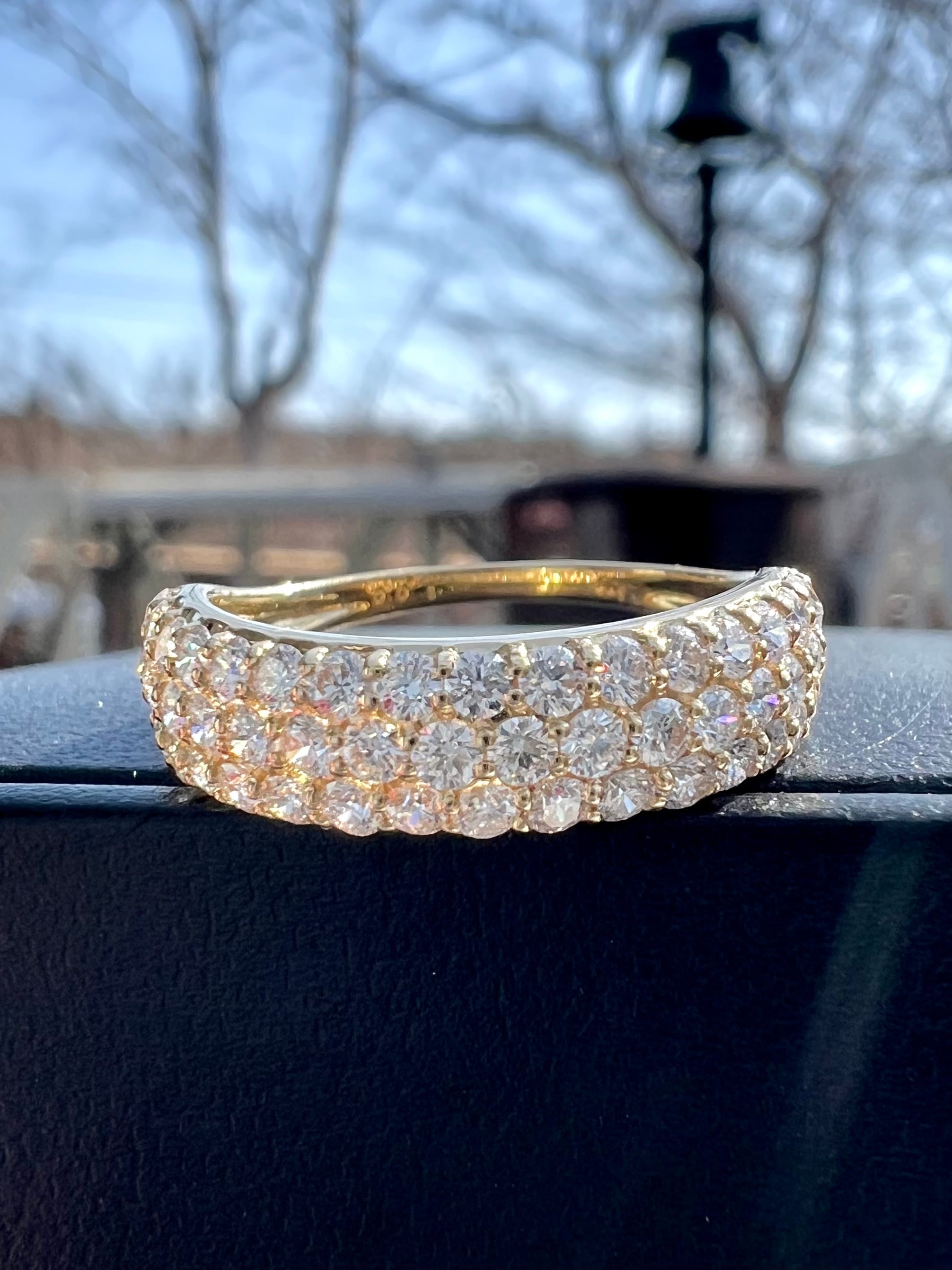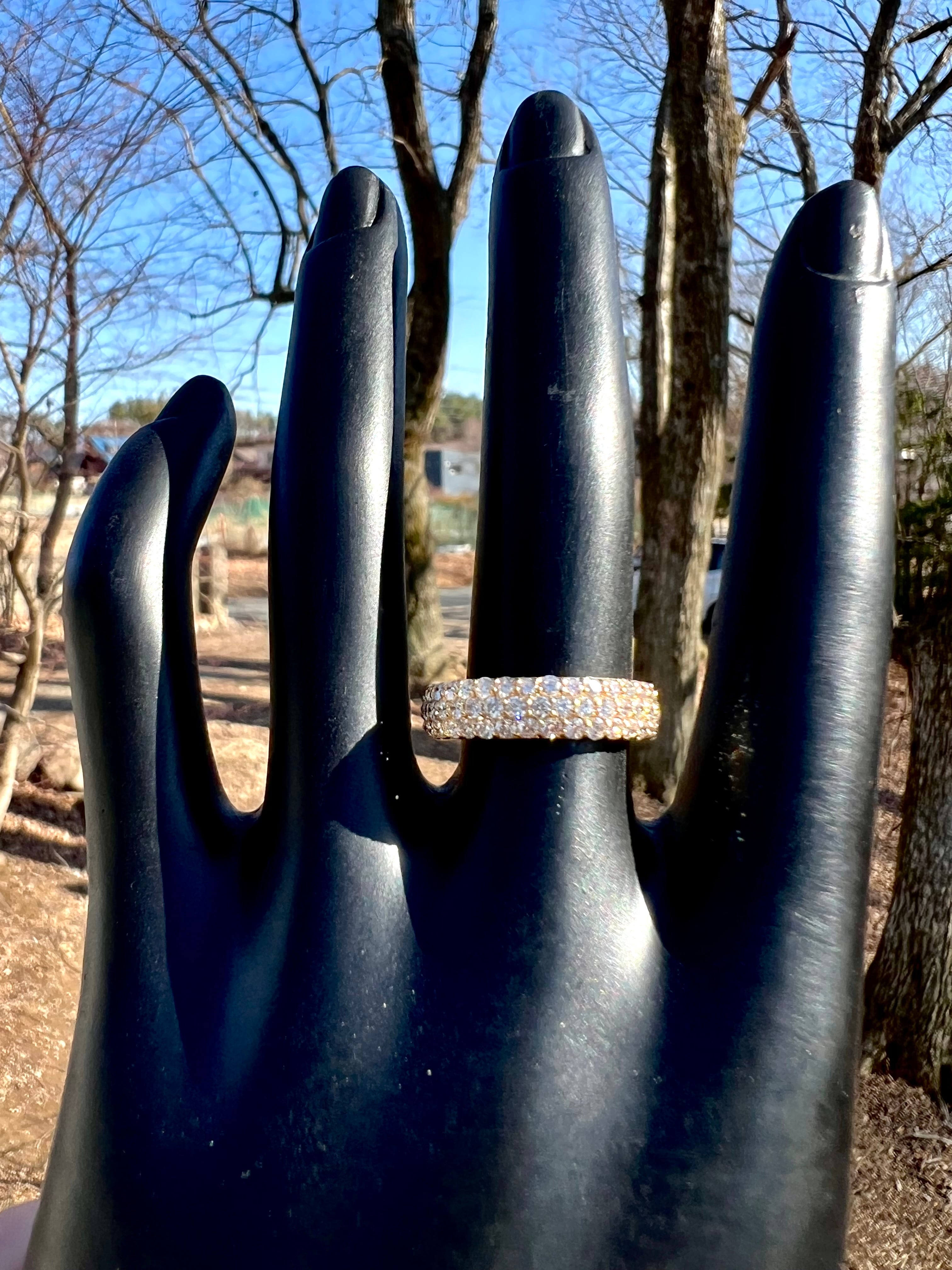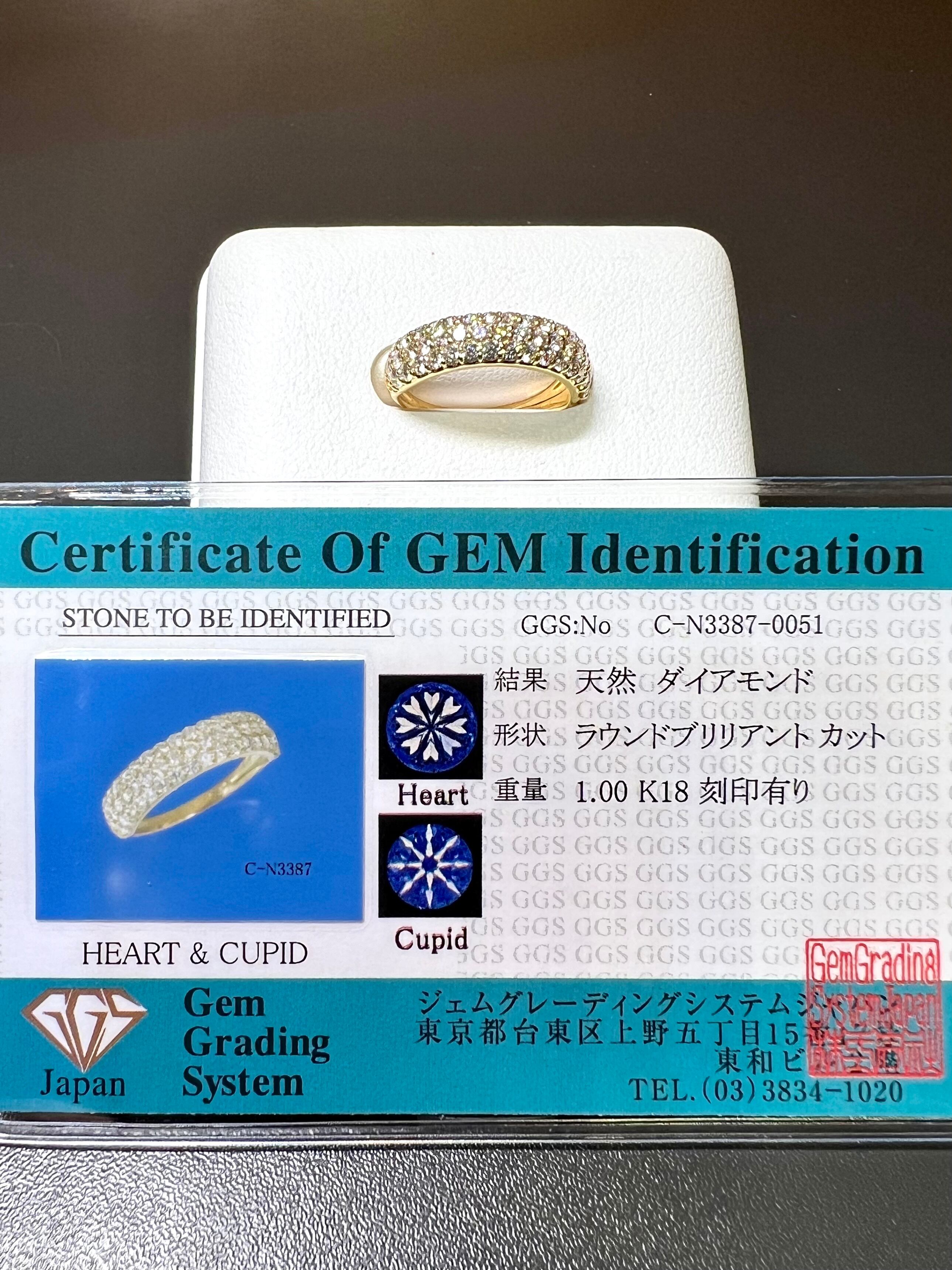 高品質ダイヤ仕様!K18 H&Cダイヤモンド1.0ct 3列パヴェリング(石畳) GGSカード鑑別付属