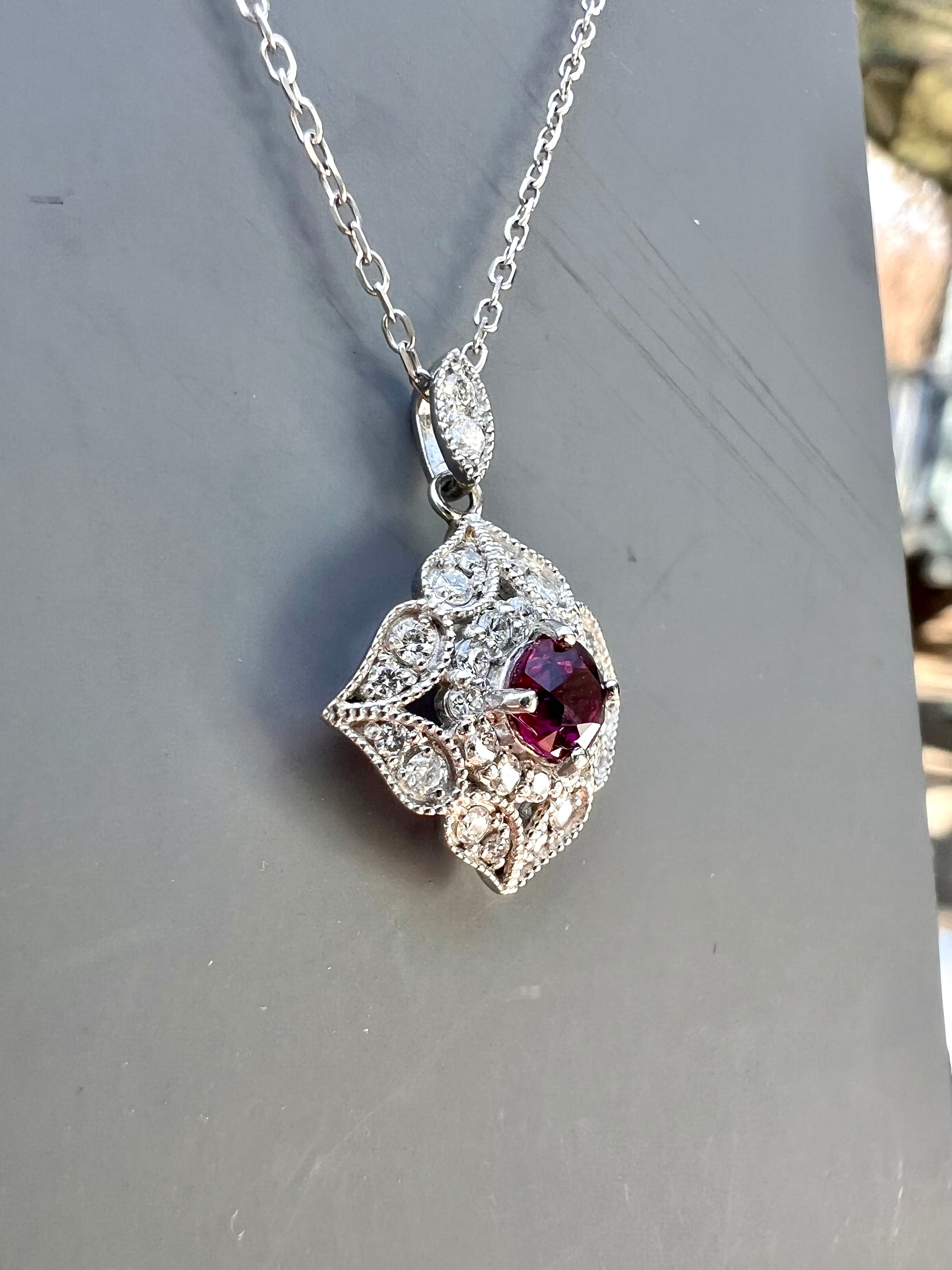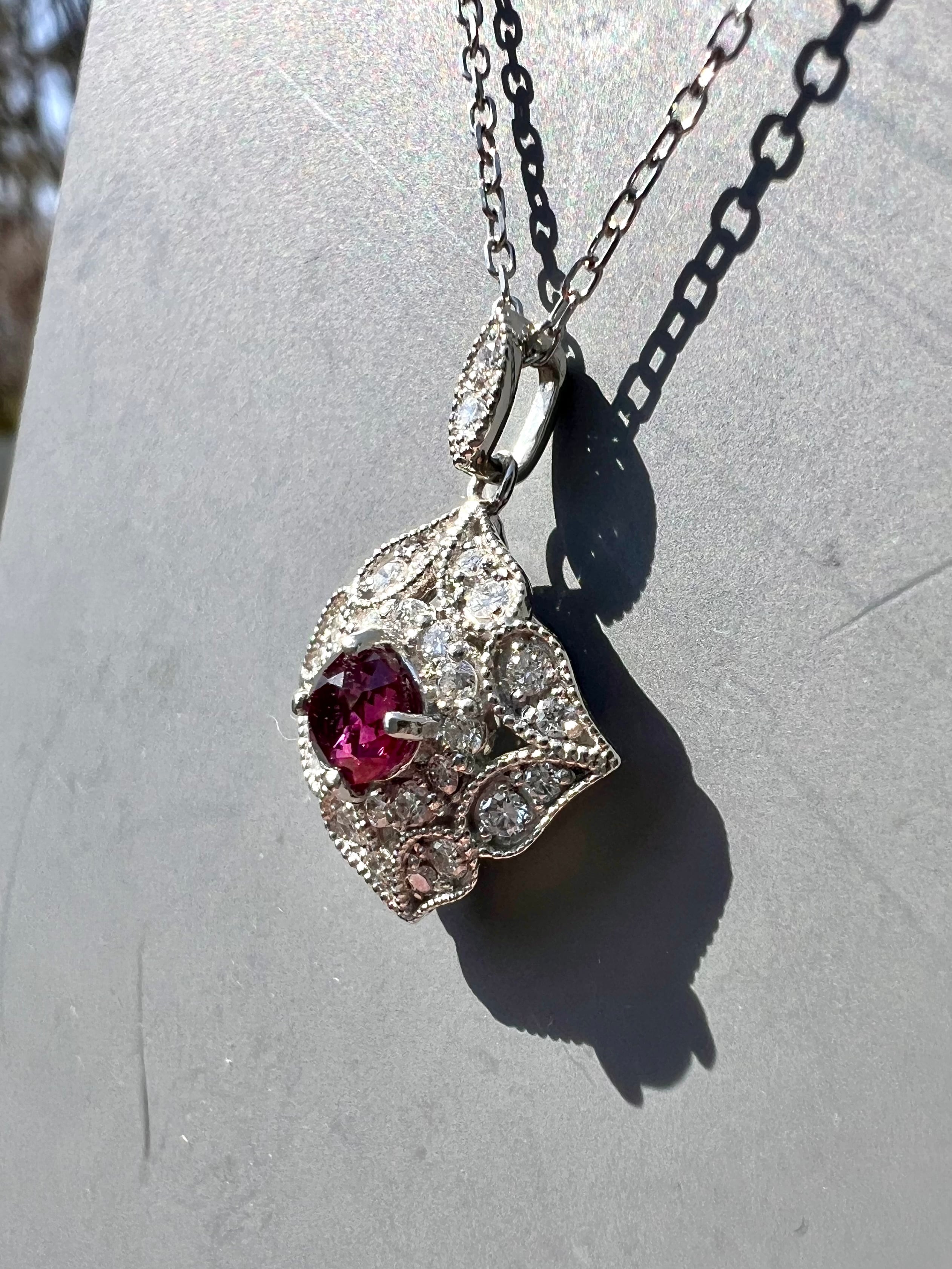 Pt950 Burma産 No heat & Pigeon ルビーダイヤモンドペンダントネックレス AIGS鑑別書付属