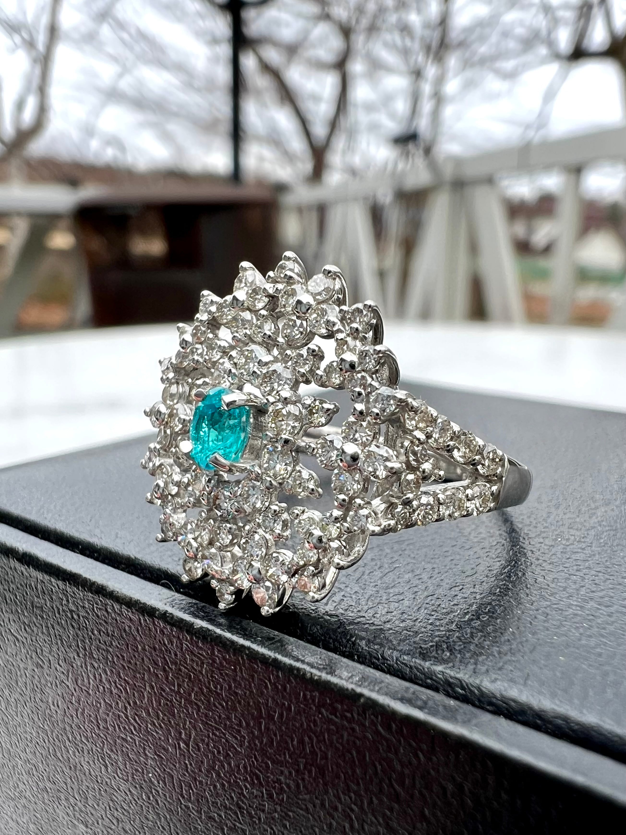 極上品!Pt950ブラジル産パライバトルマリンダイヤモンドリング《日米鑑別書付属》