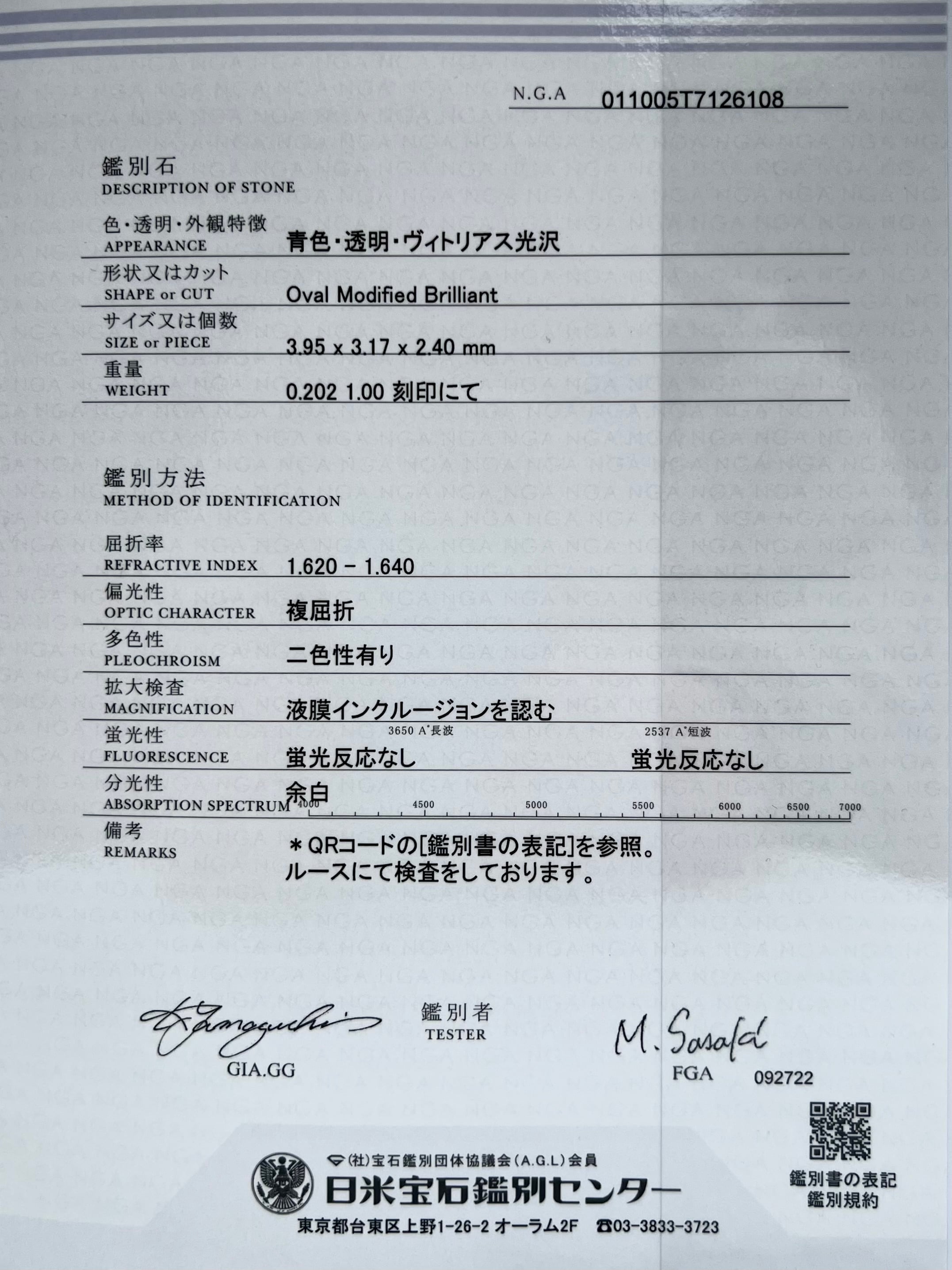 付属品 NGA宝石鑑別書