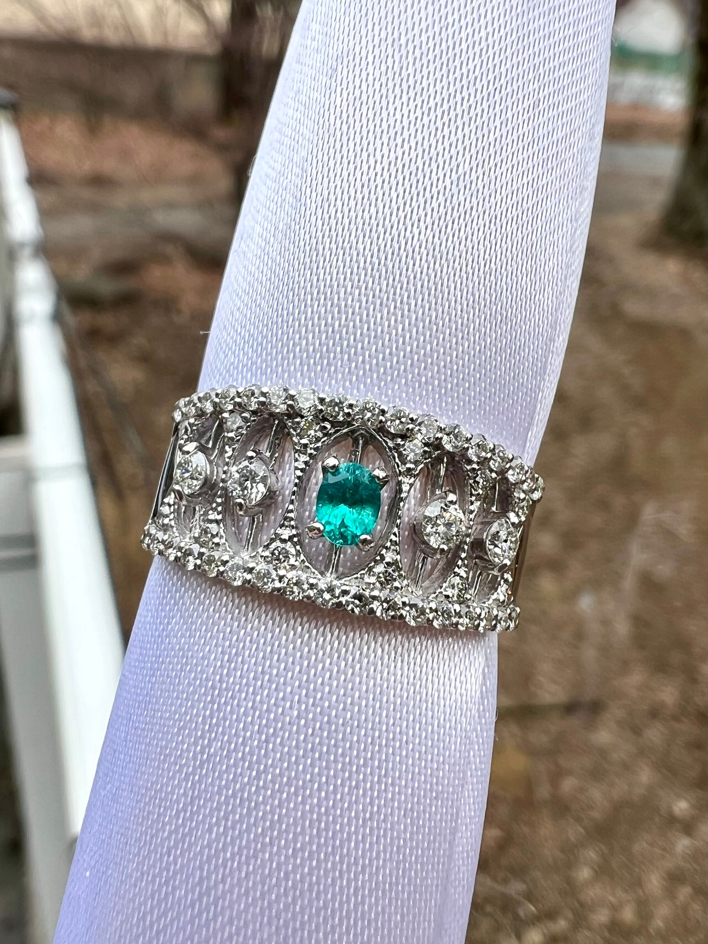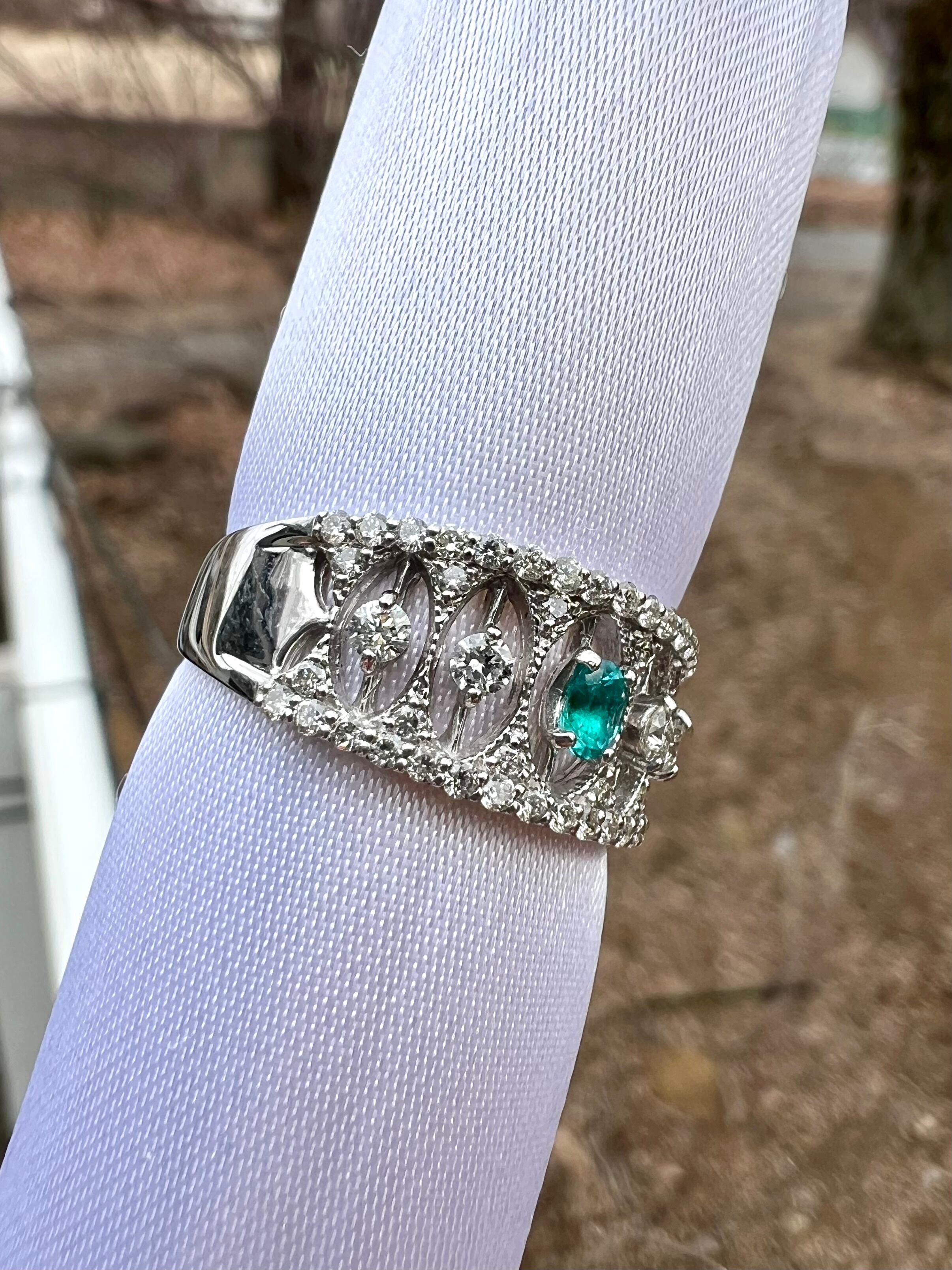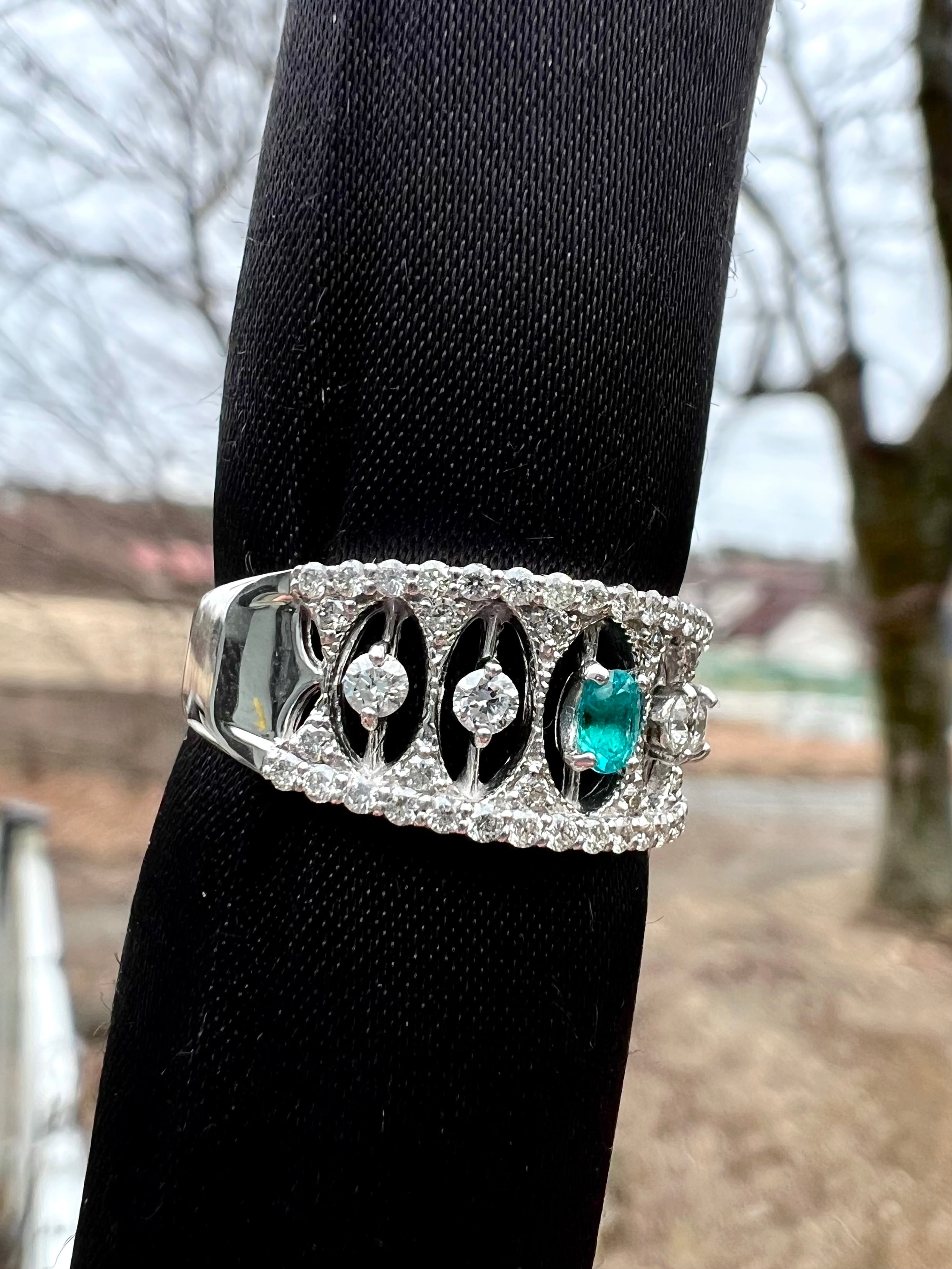 丸窓の透かし感あるゴージャスデザインとても綺麗なダイヤを使ったとても素敵なリングです。