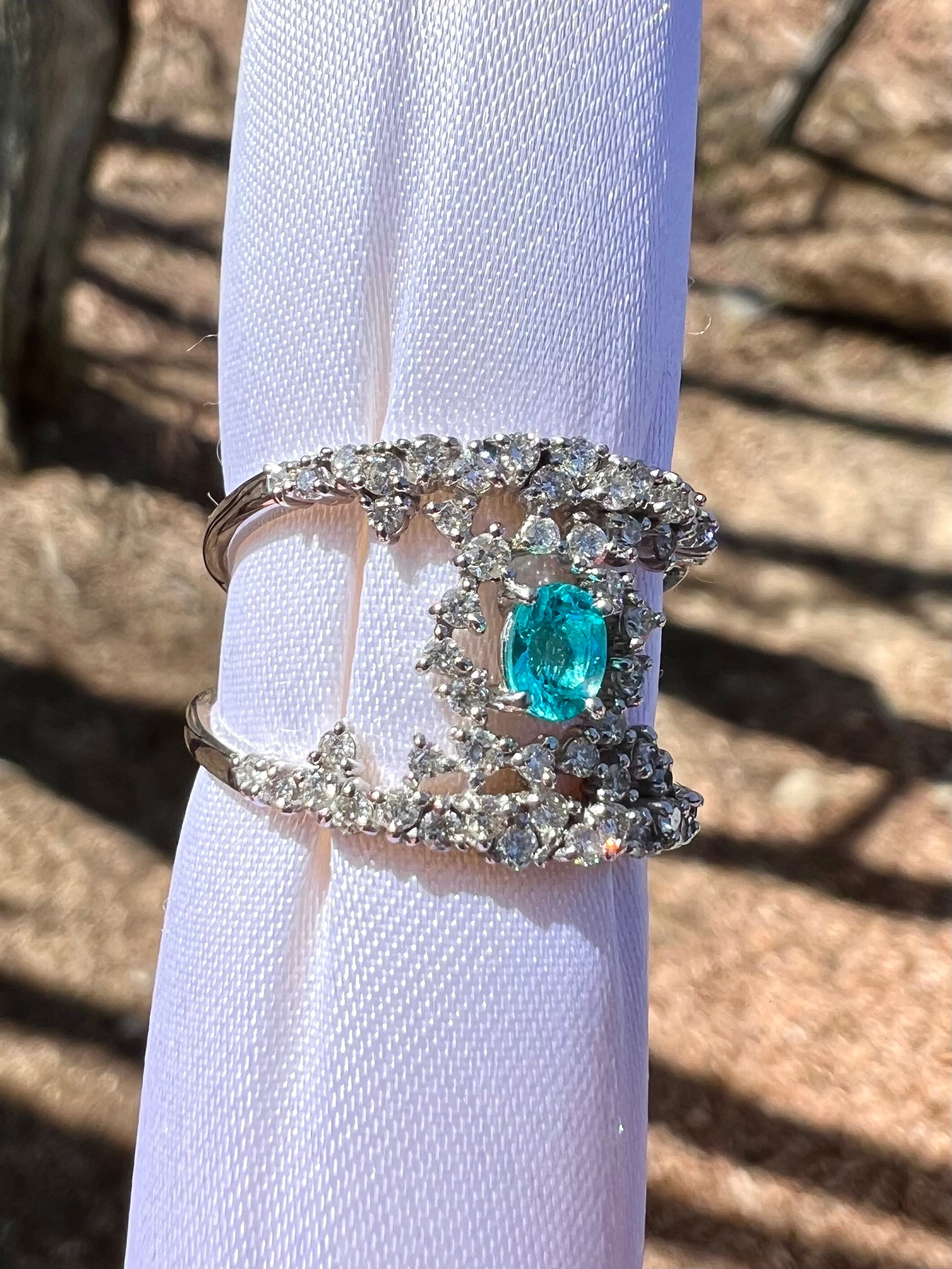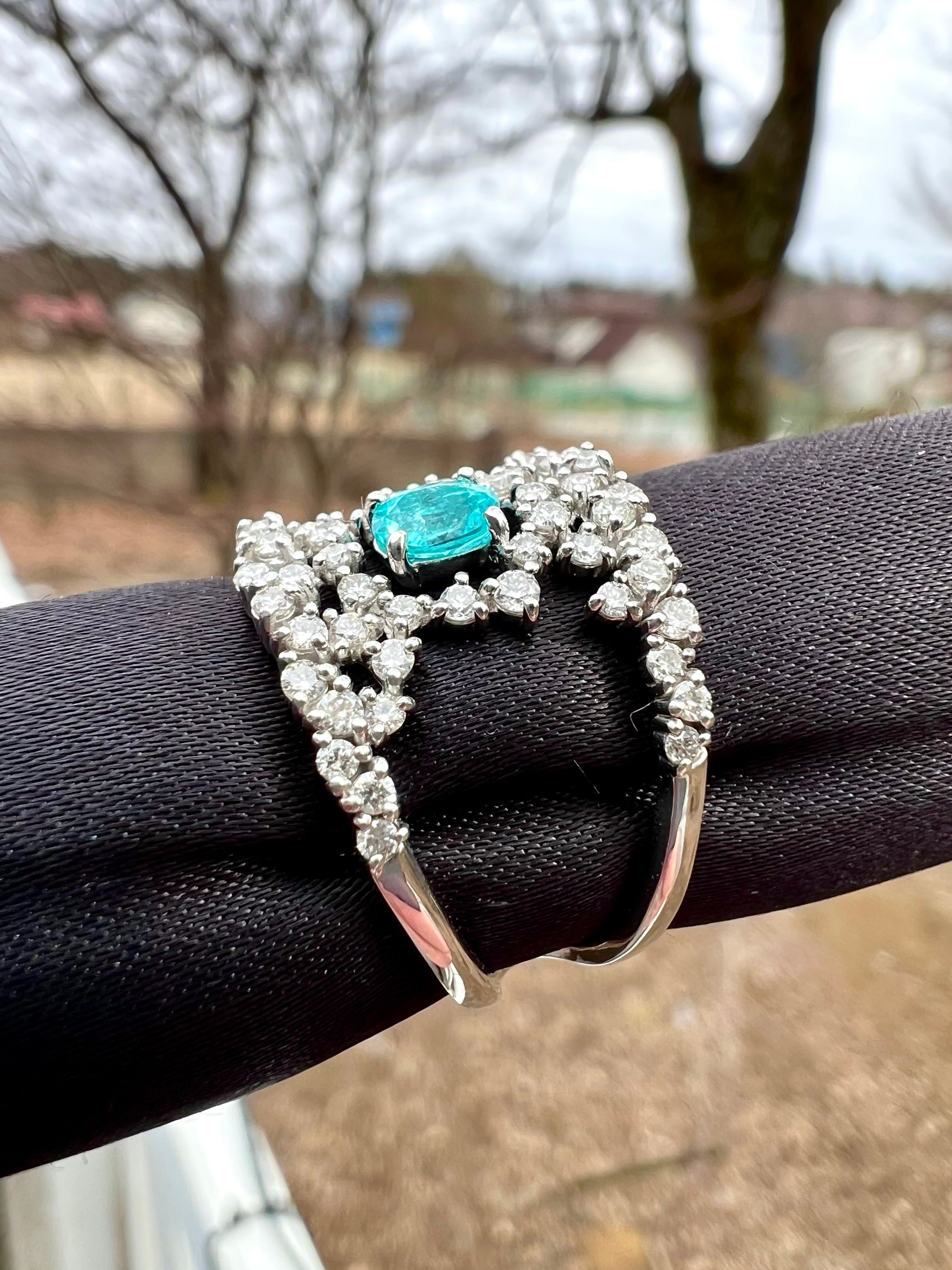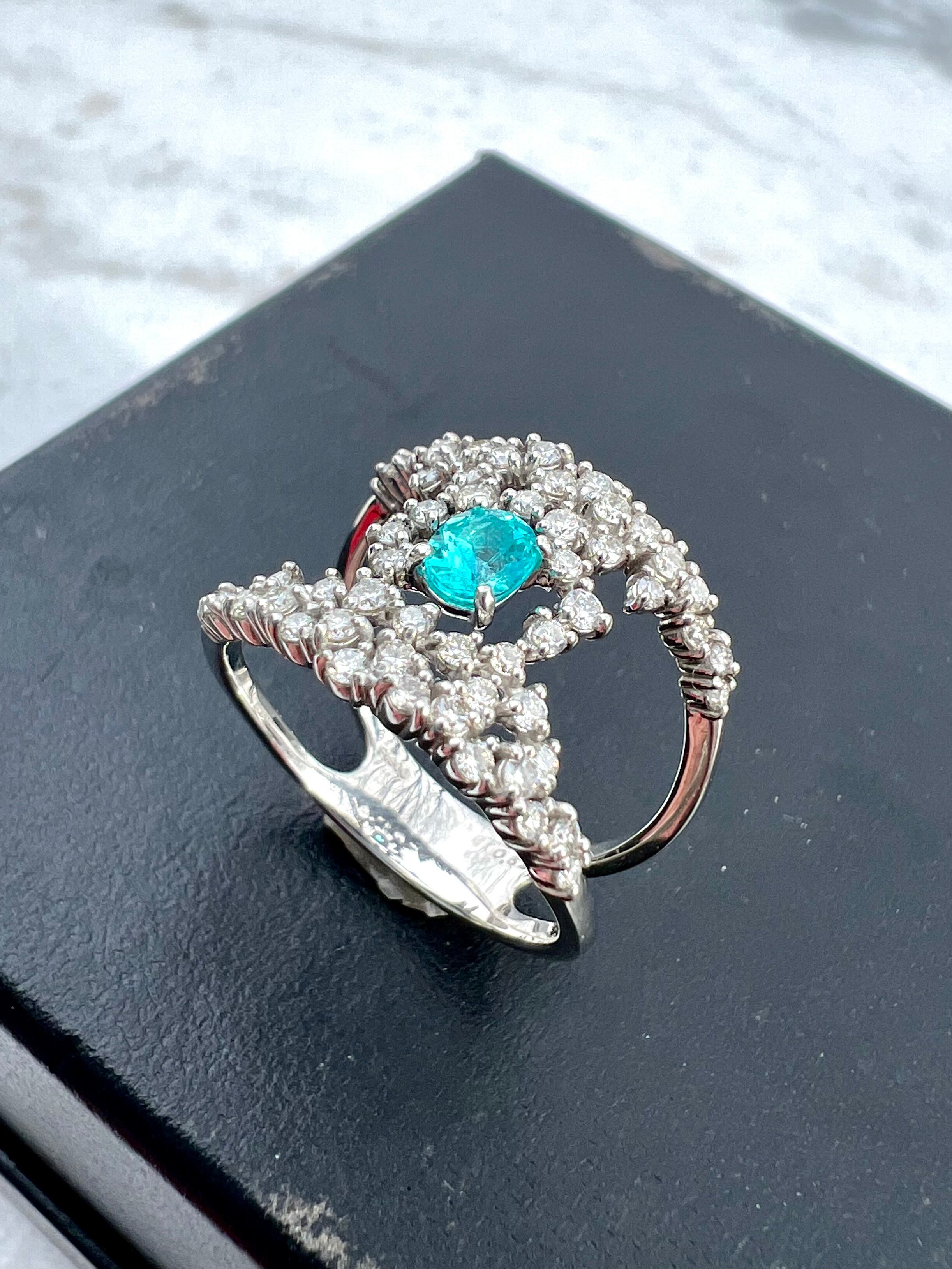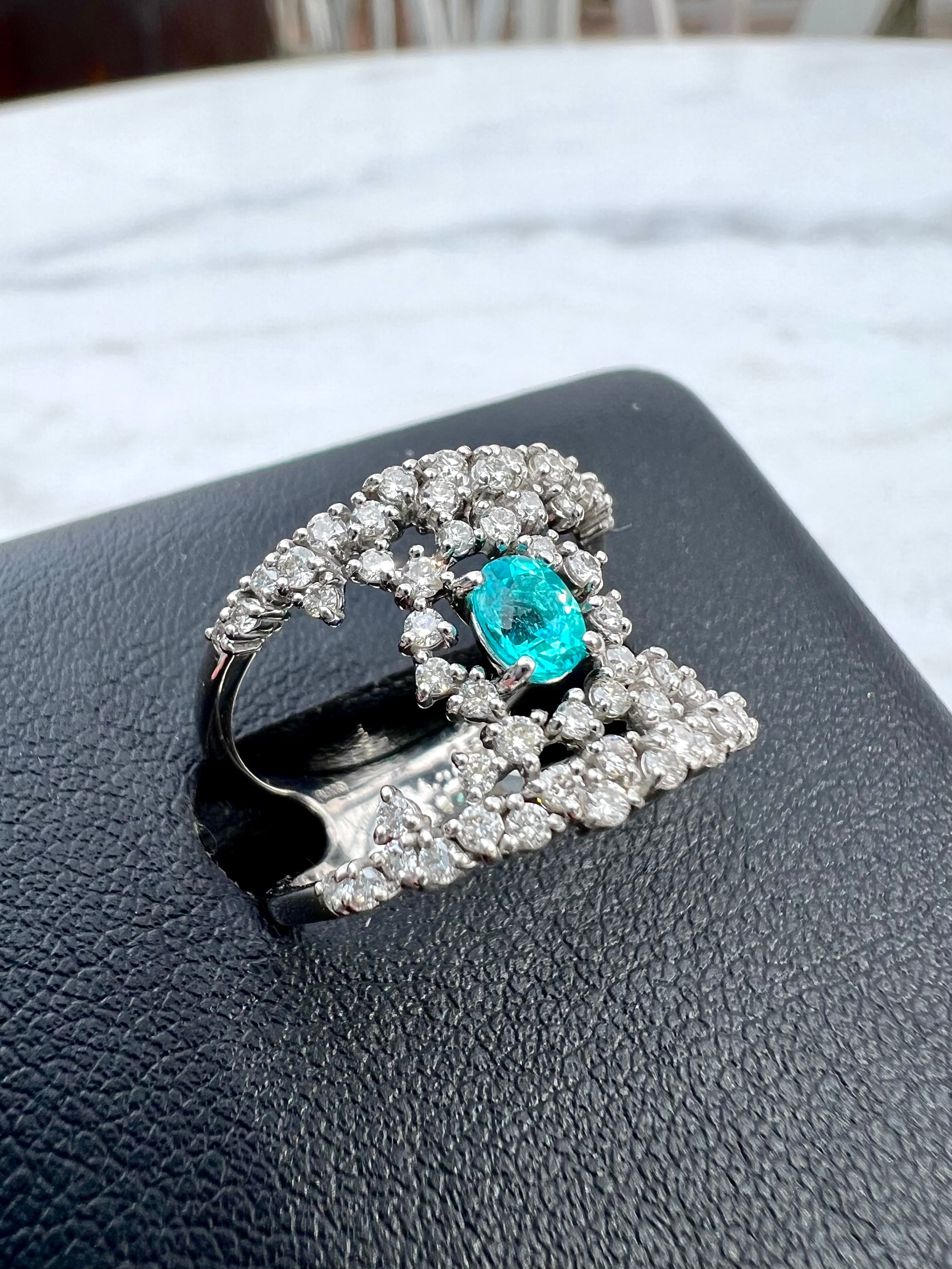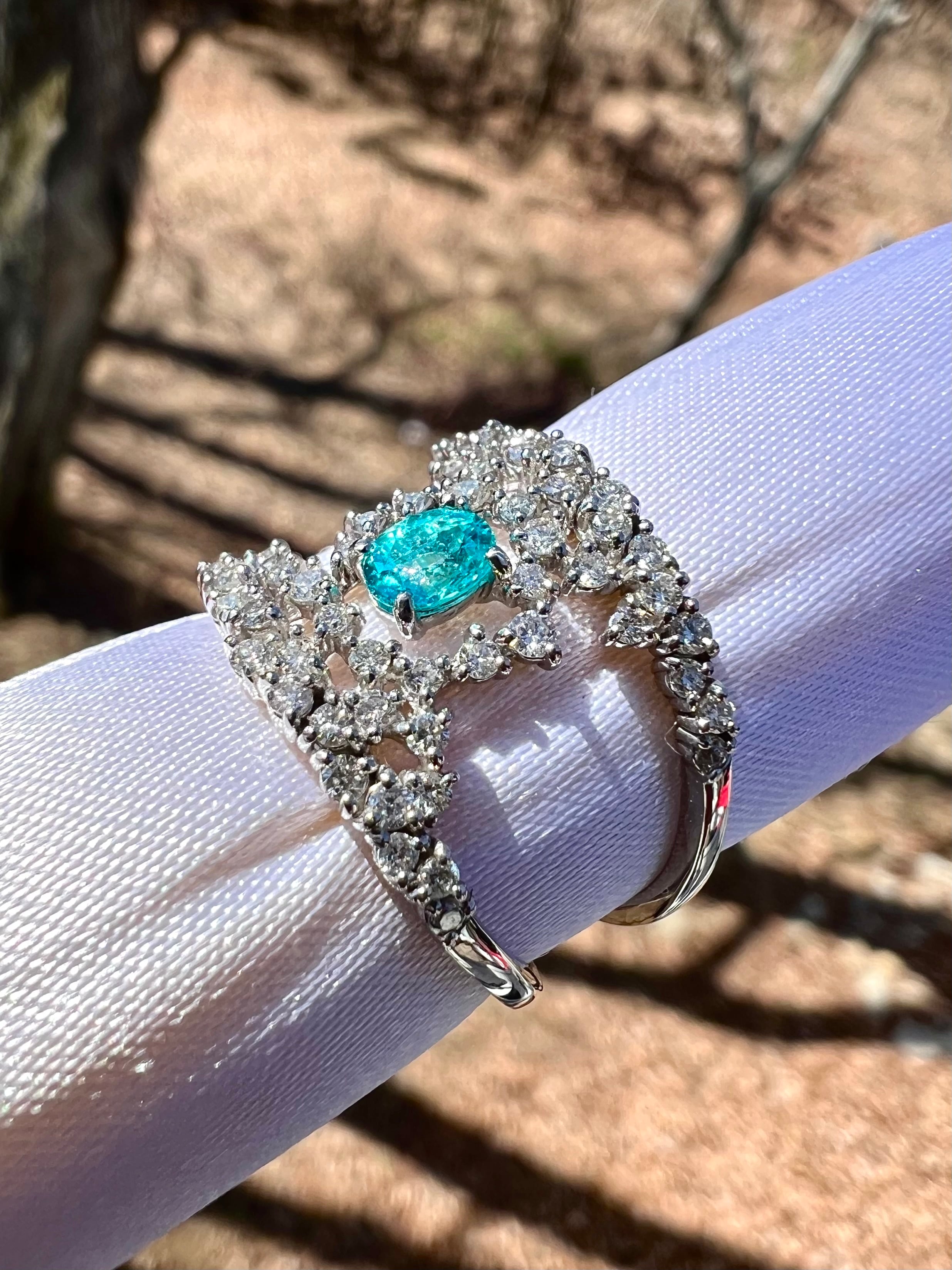 とても綺麗なパライバをとても綺麗なダイヤで不規則に取り巻きました。