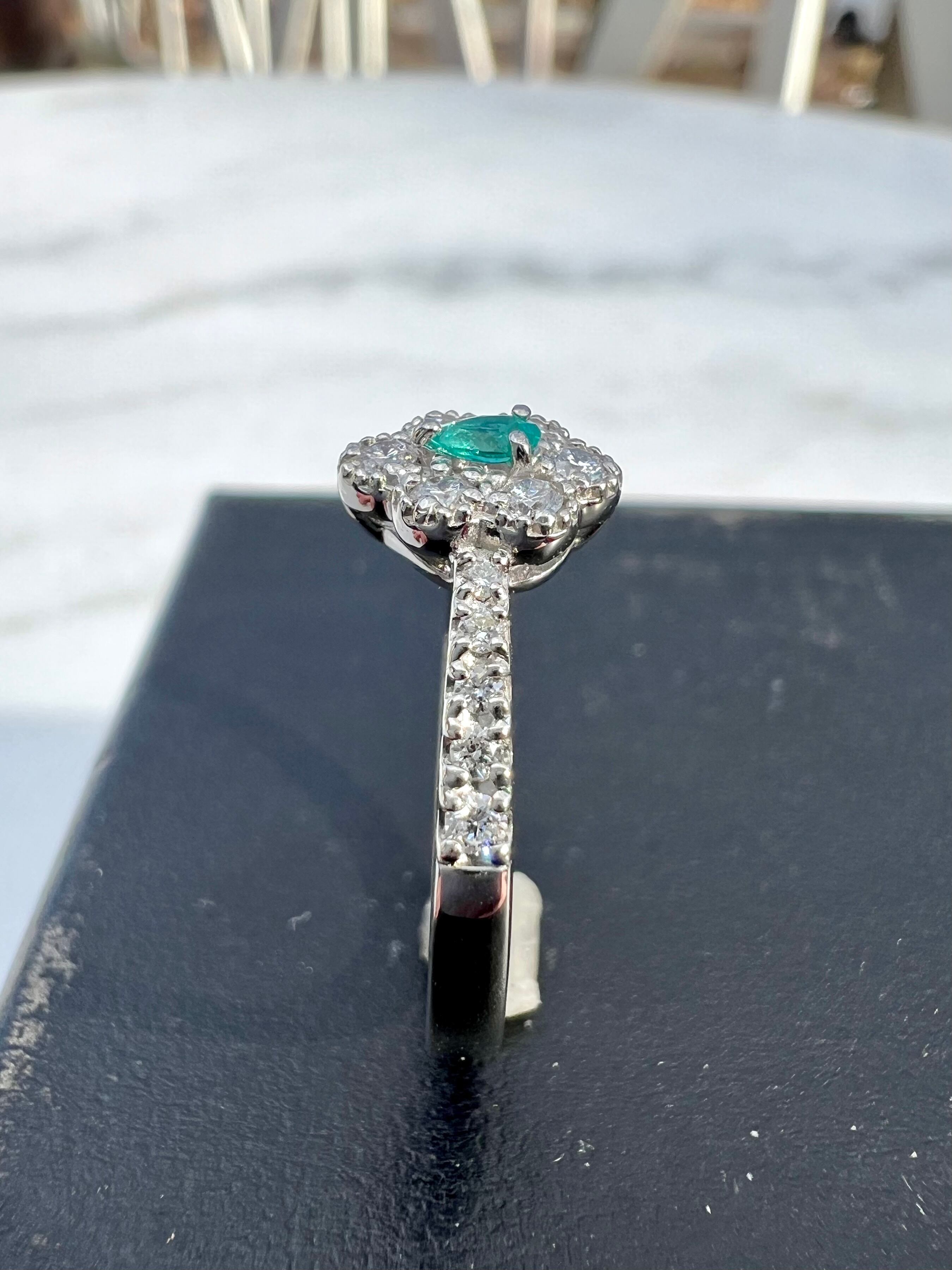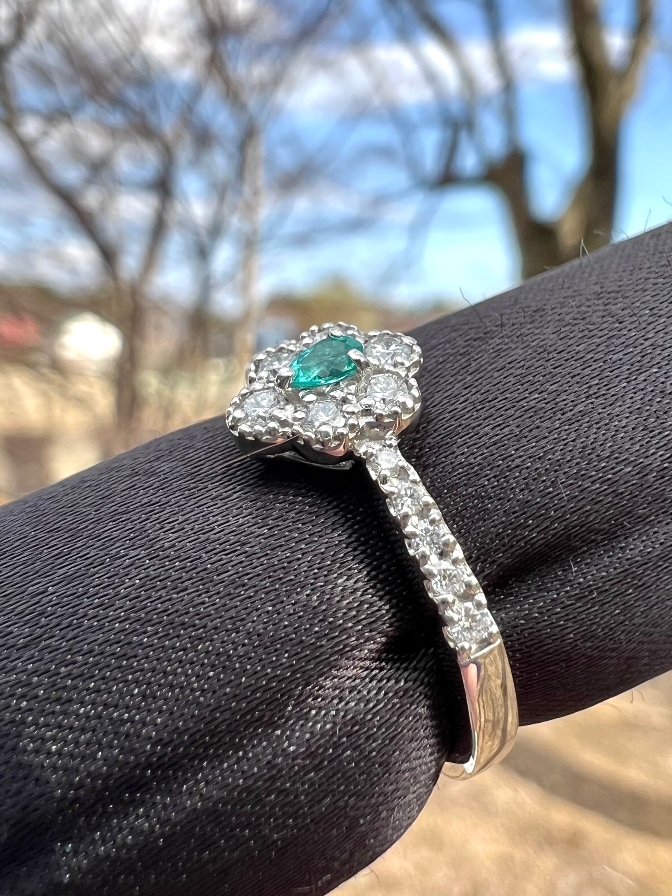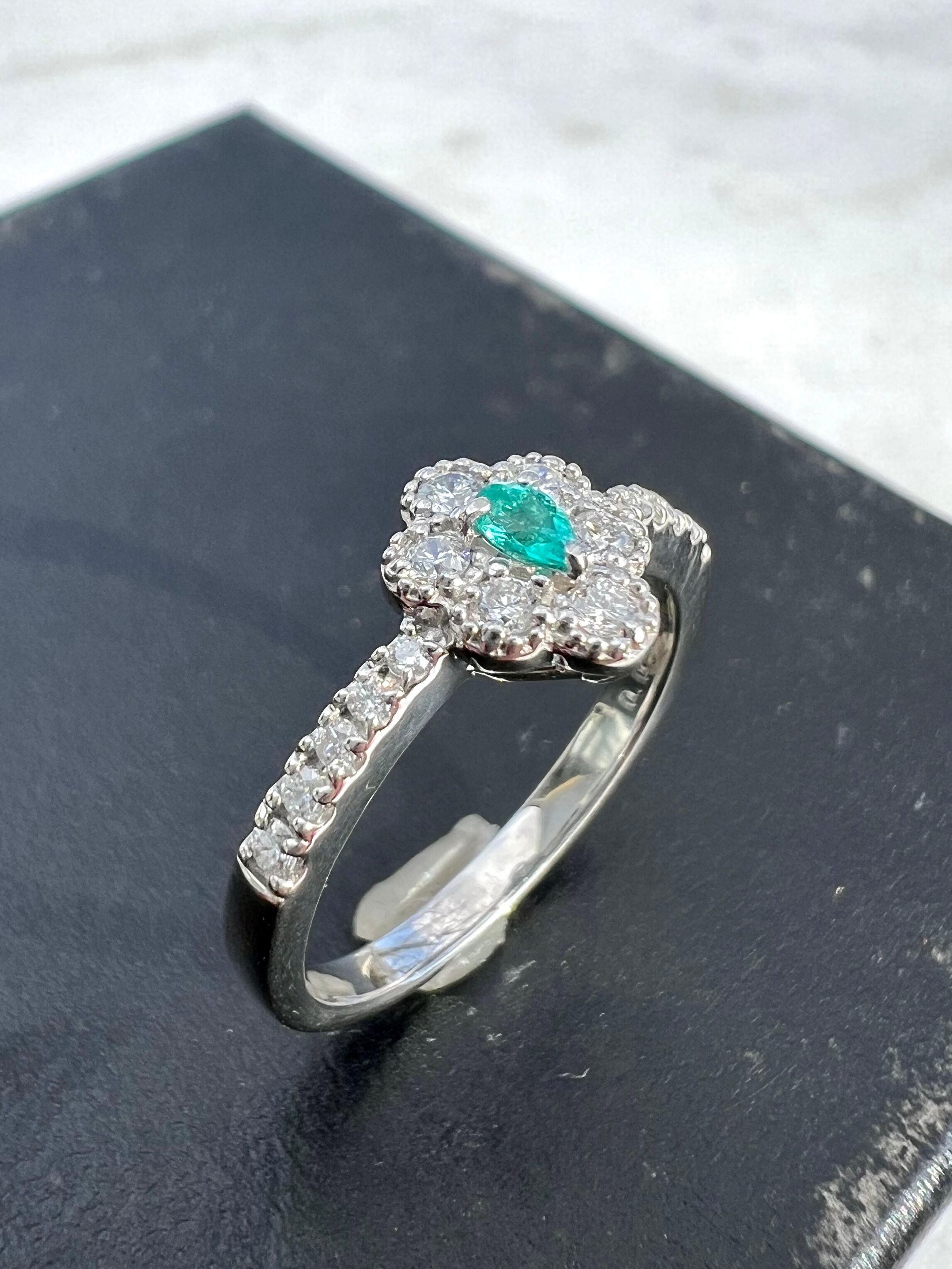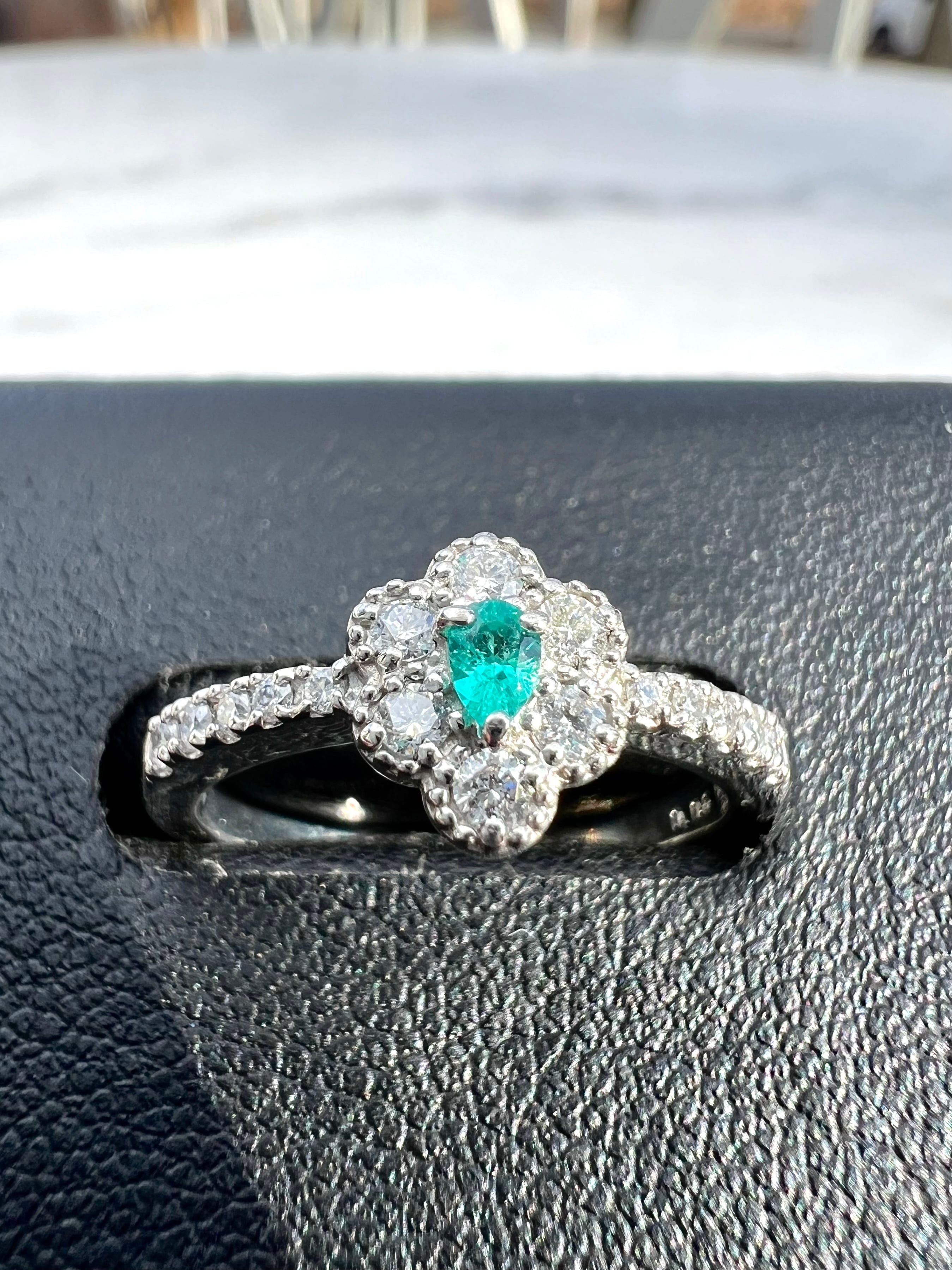 今回のデザインは中石を綺麗なダイヤで取り巻き更にミルで取り巻いた可愛いデザイン!
