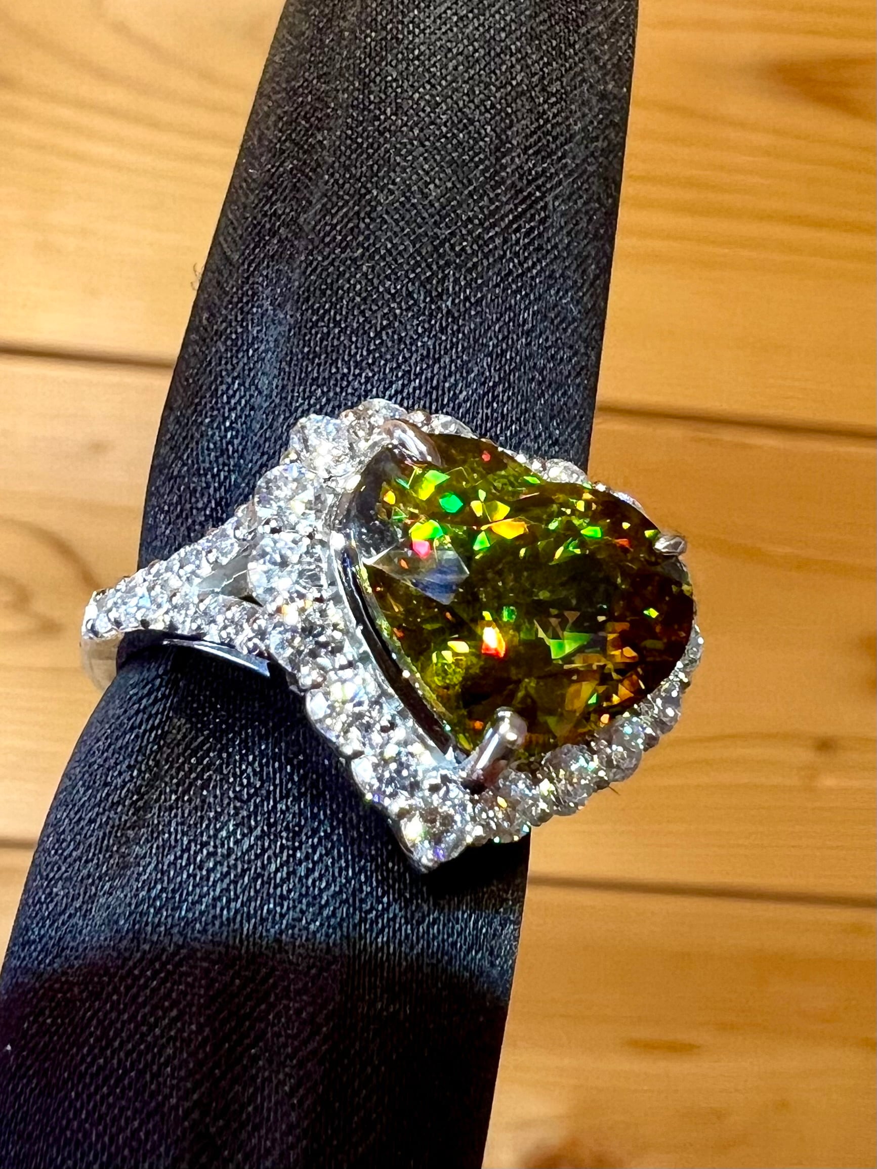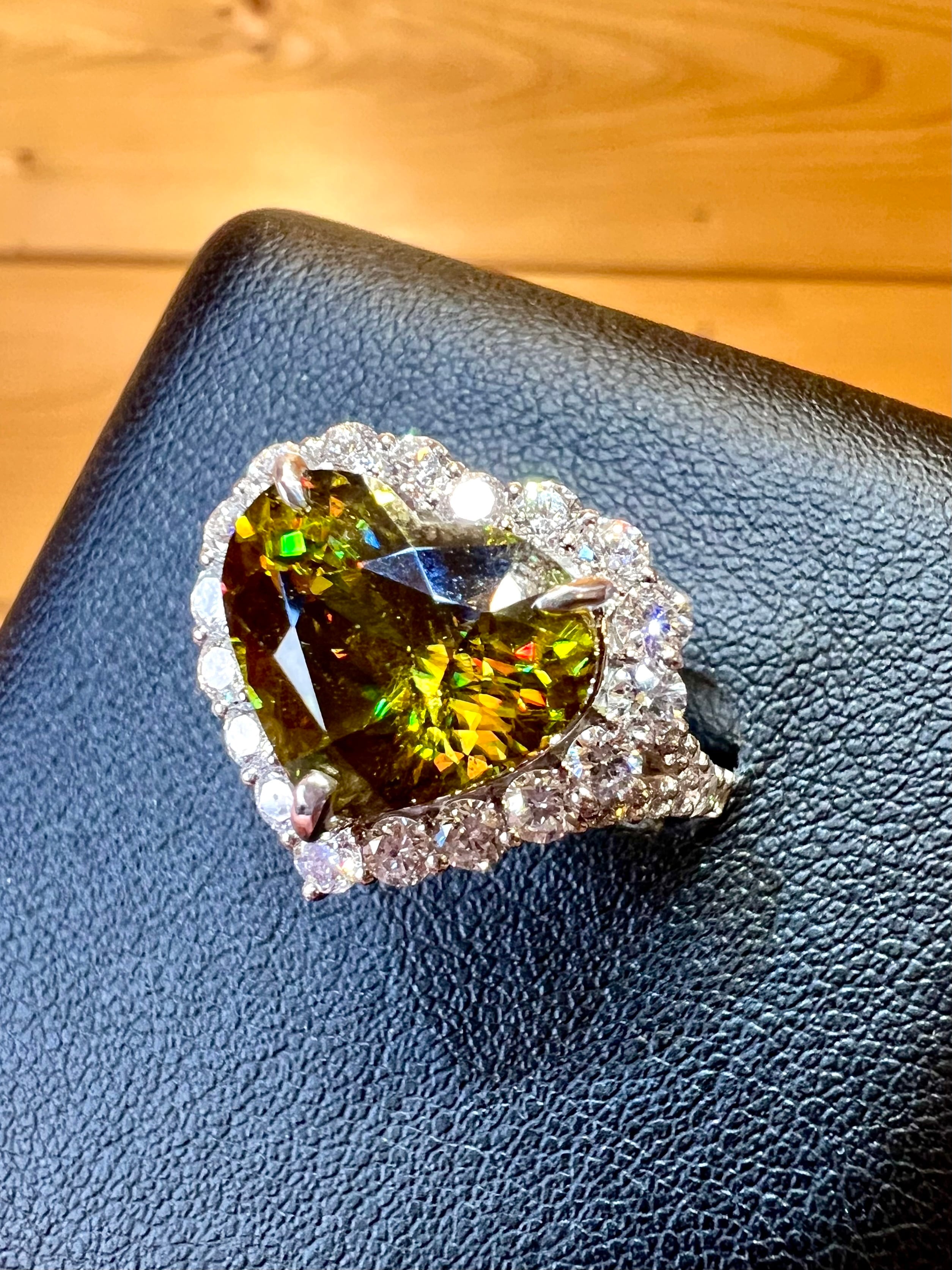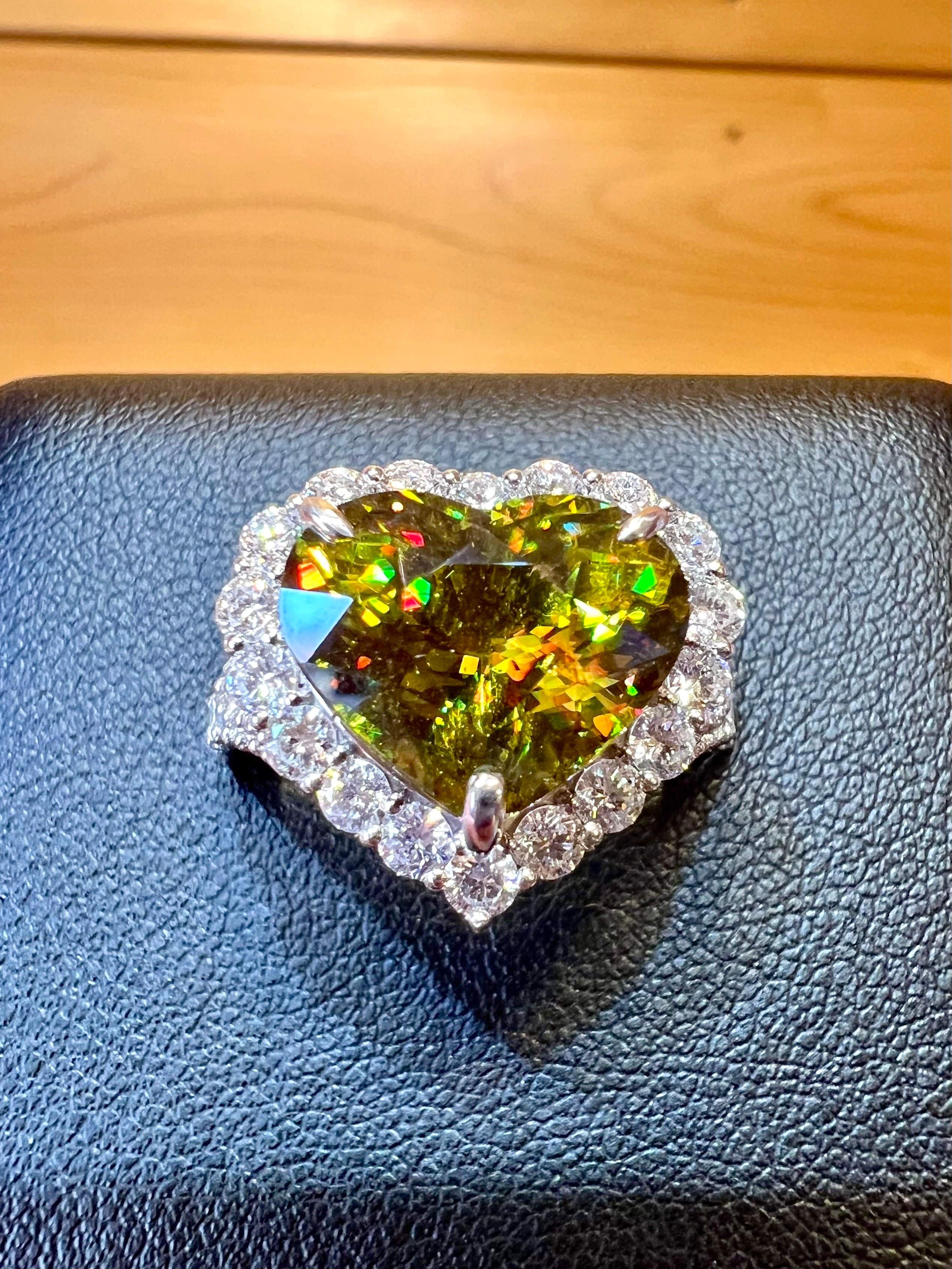超絶ギラッギラ!超可愛いぃハートシェイプスフェーン Pt900ダイヤモンドリングJGGL鑑別書付属