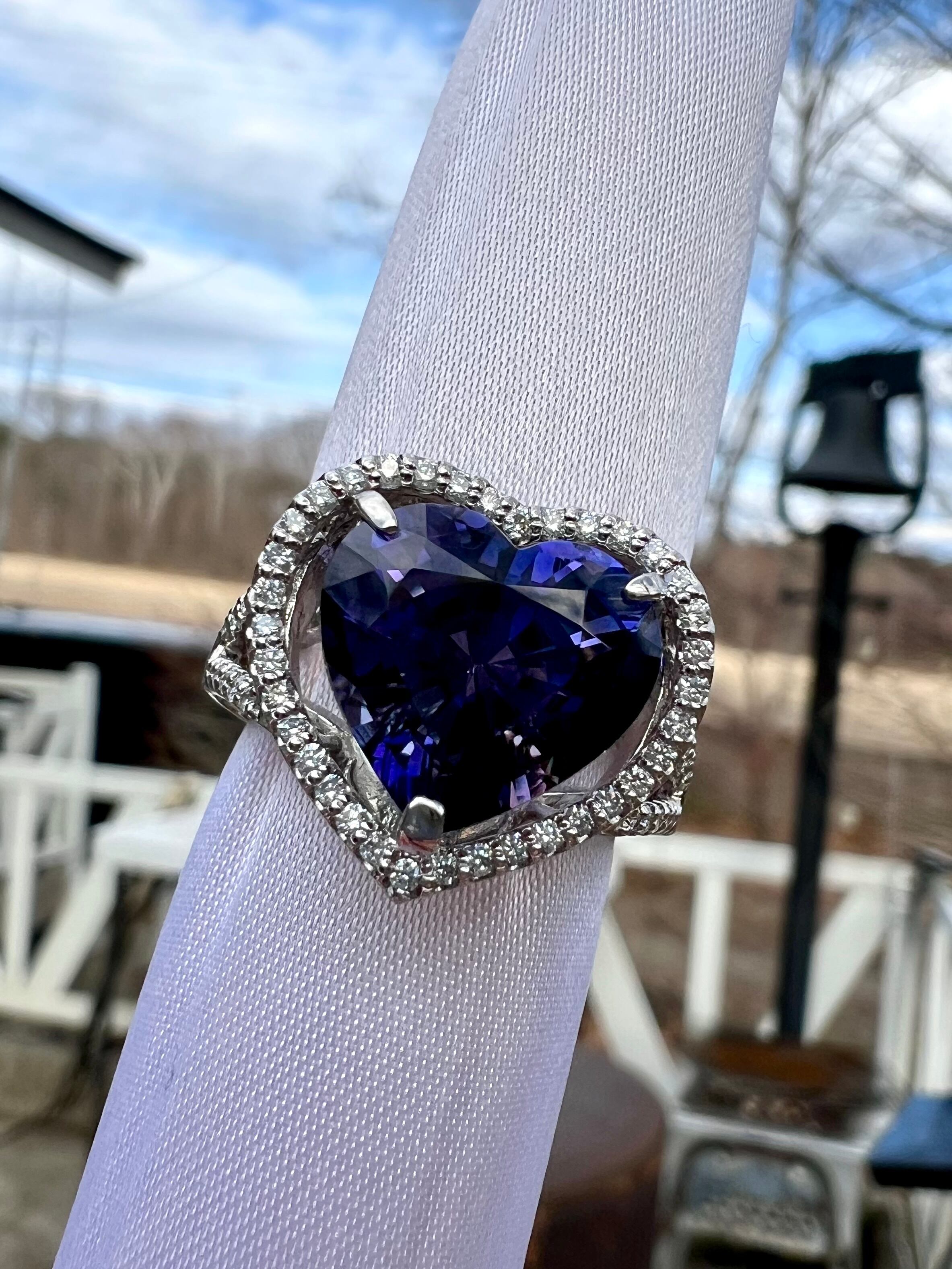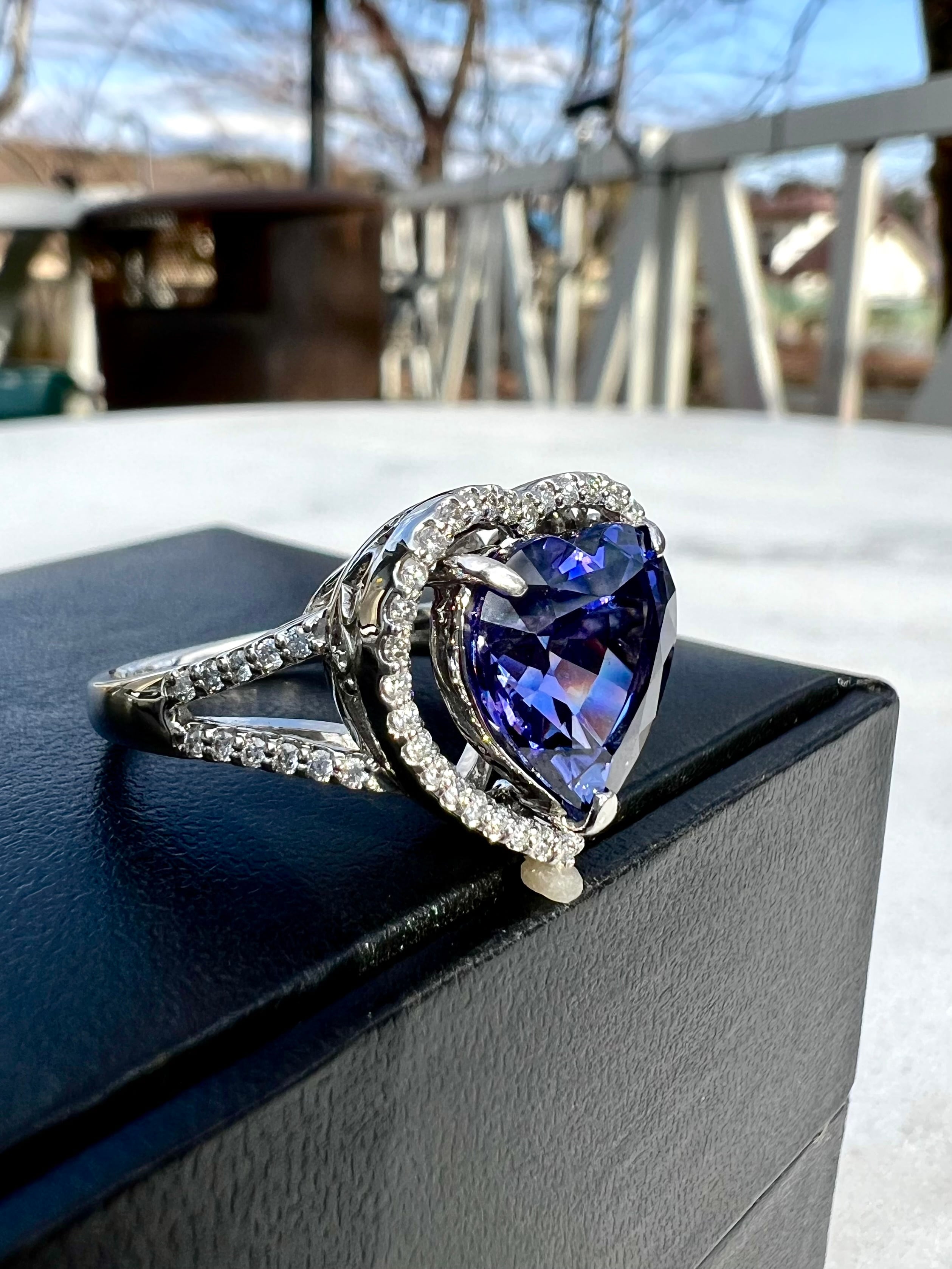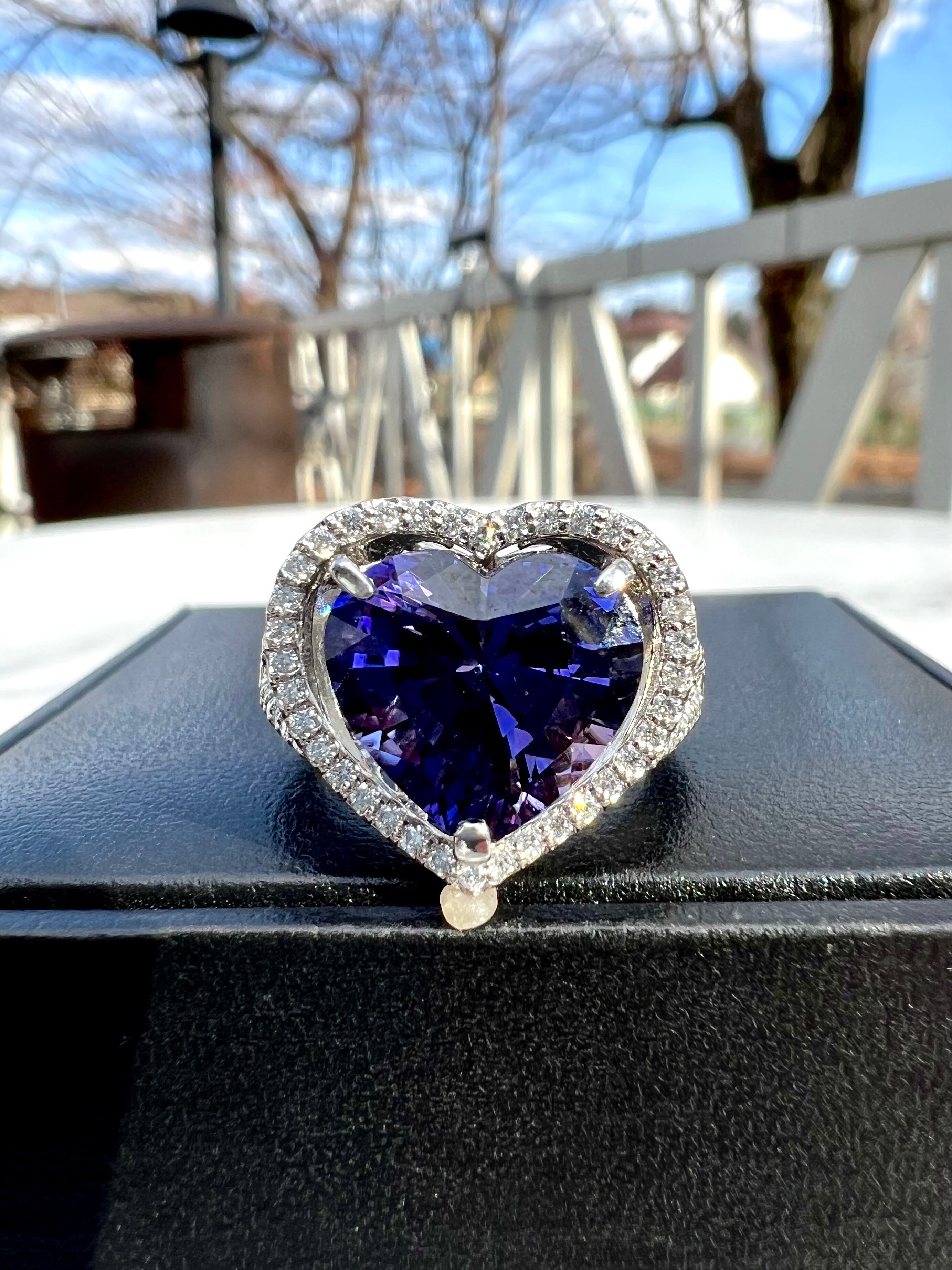 とても色の濃い本当に綺麗なハートシェイプの非加熱タンザナイトリングです。