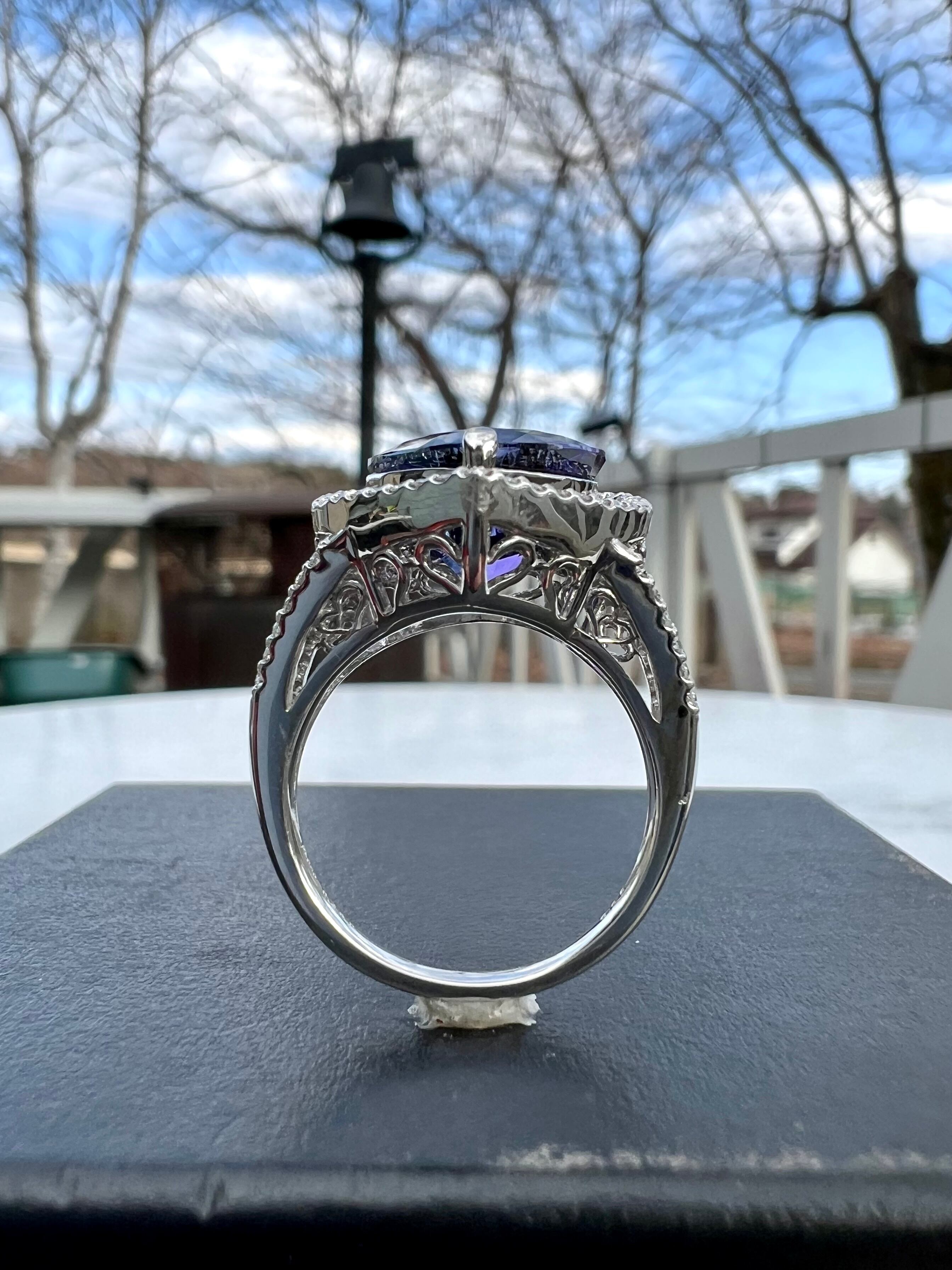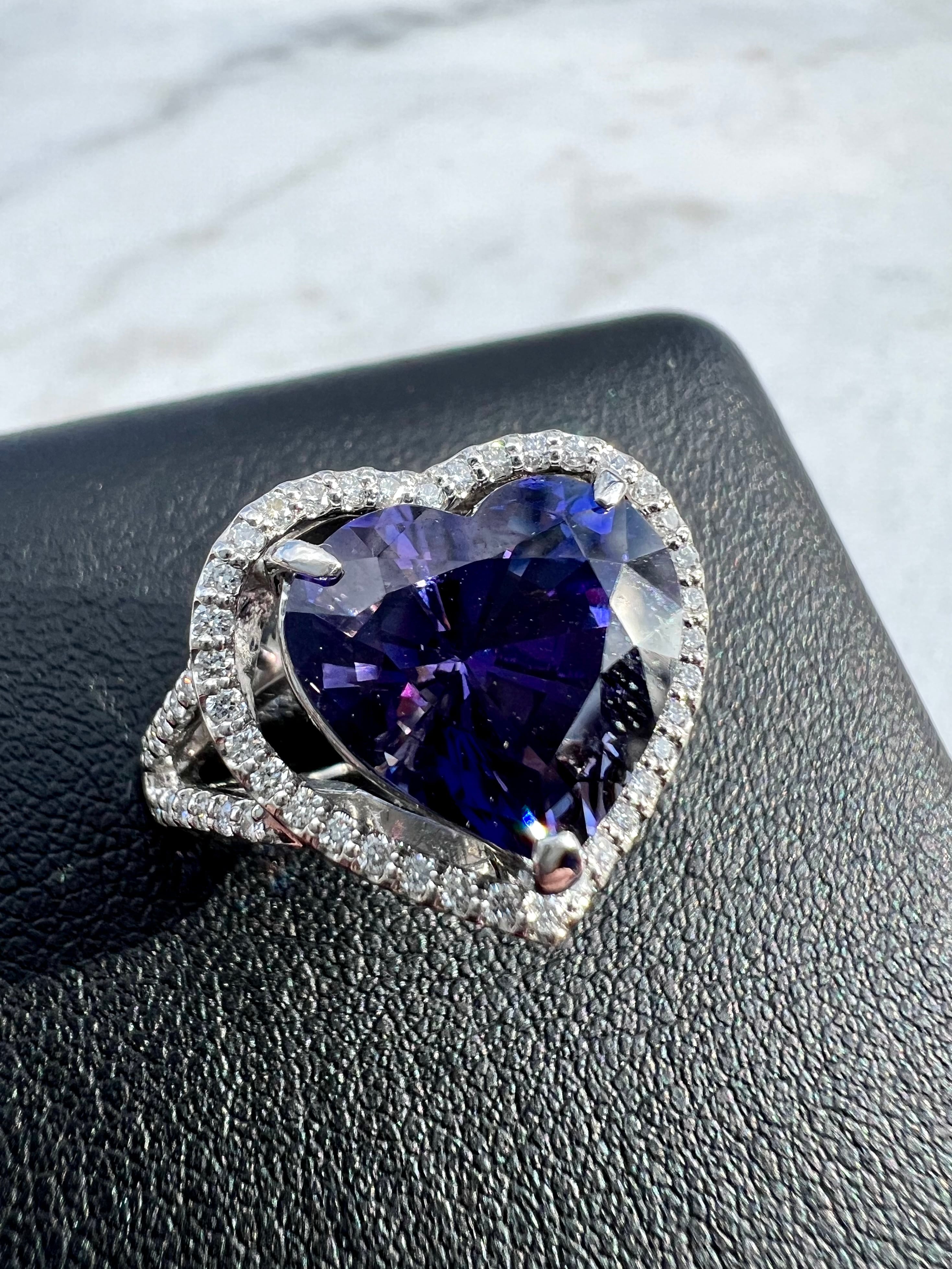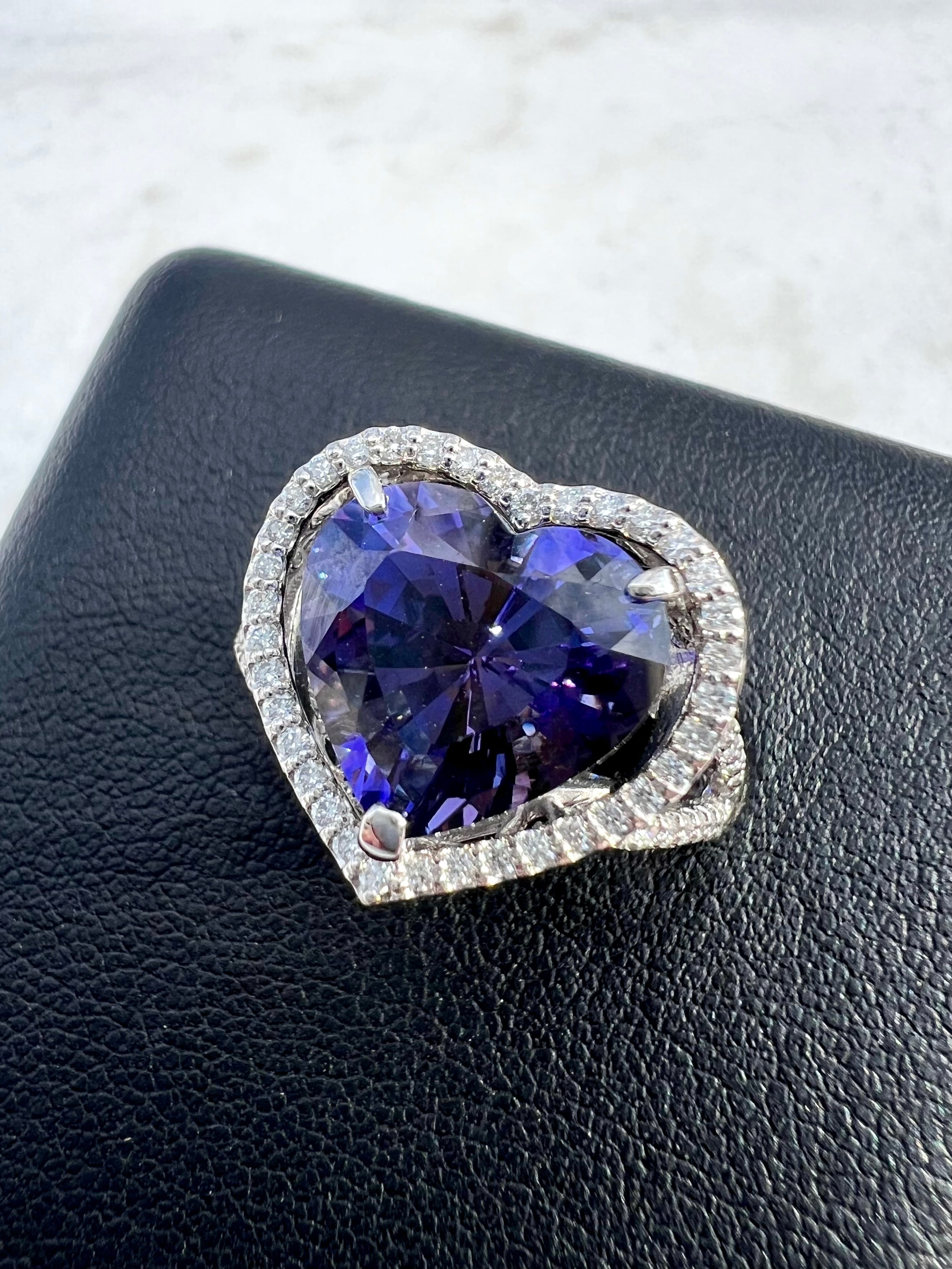 とても色の濃い本当に綺麗なハートシェイプの非加熱タンザナイトリングです。