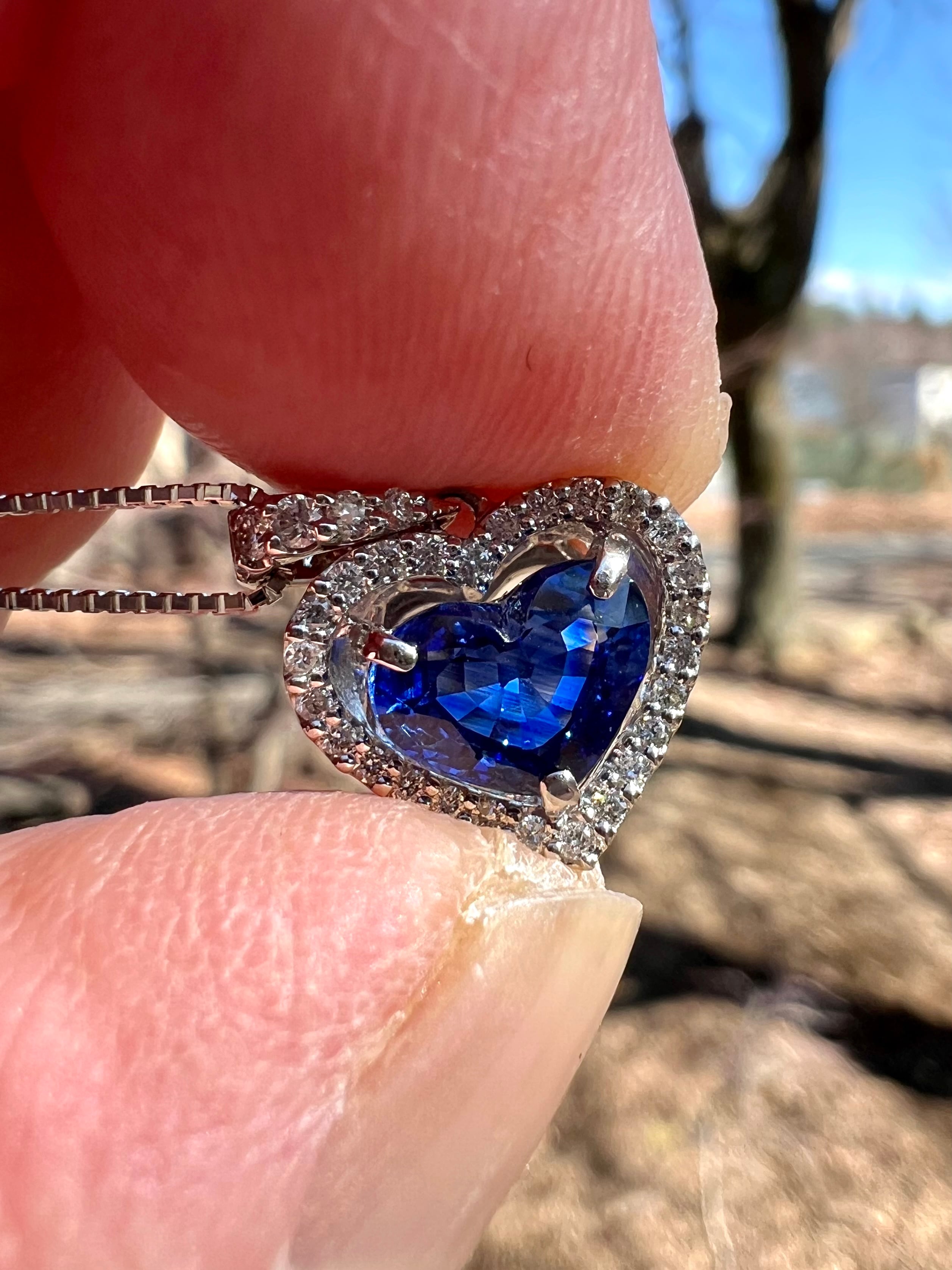ハート!スリランカ産 ロイヤルブルー! Pt900サファイヤダイヤモンドネックレス GIA書付属
