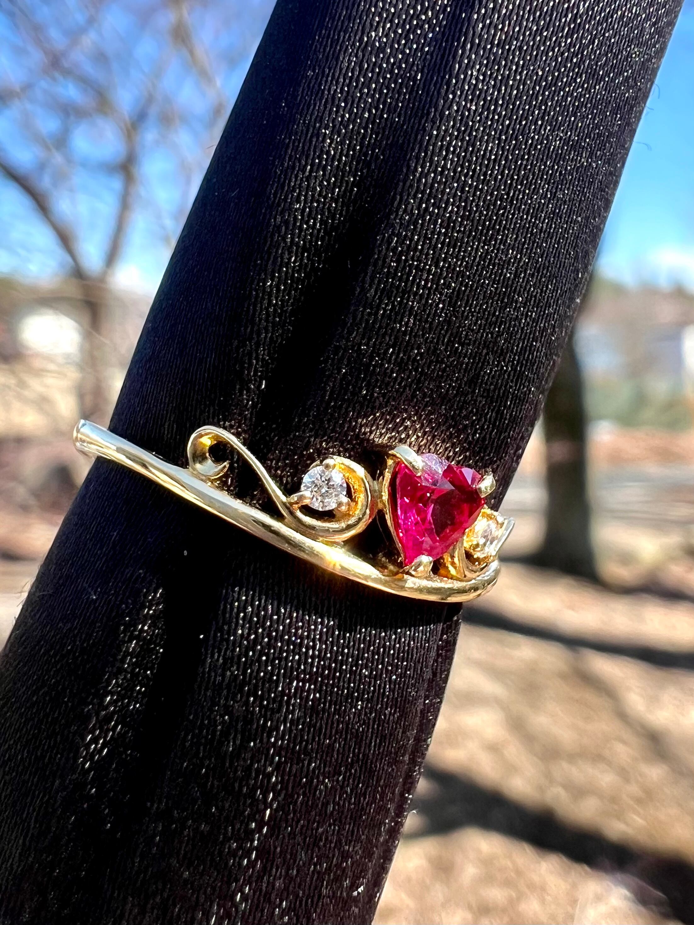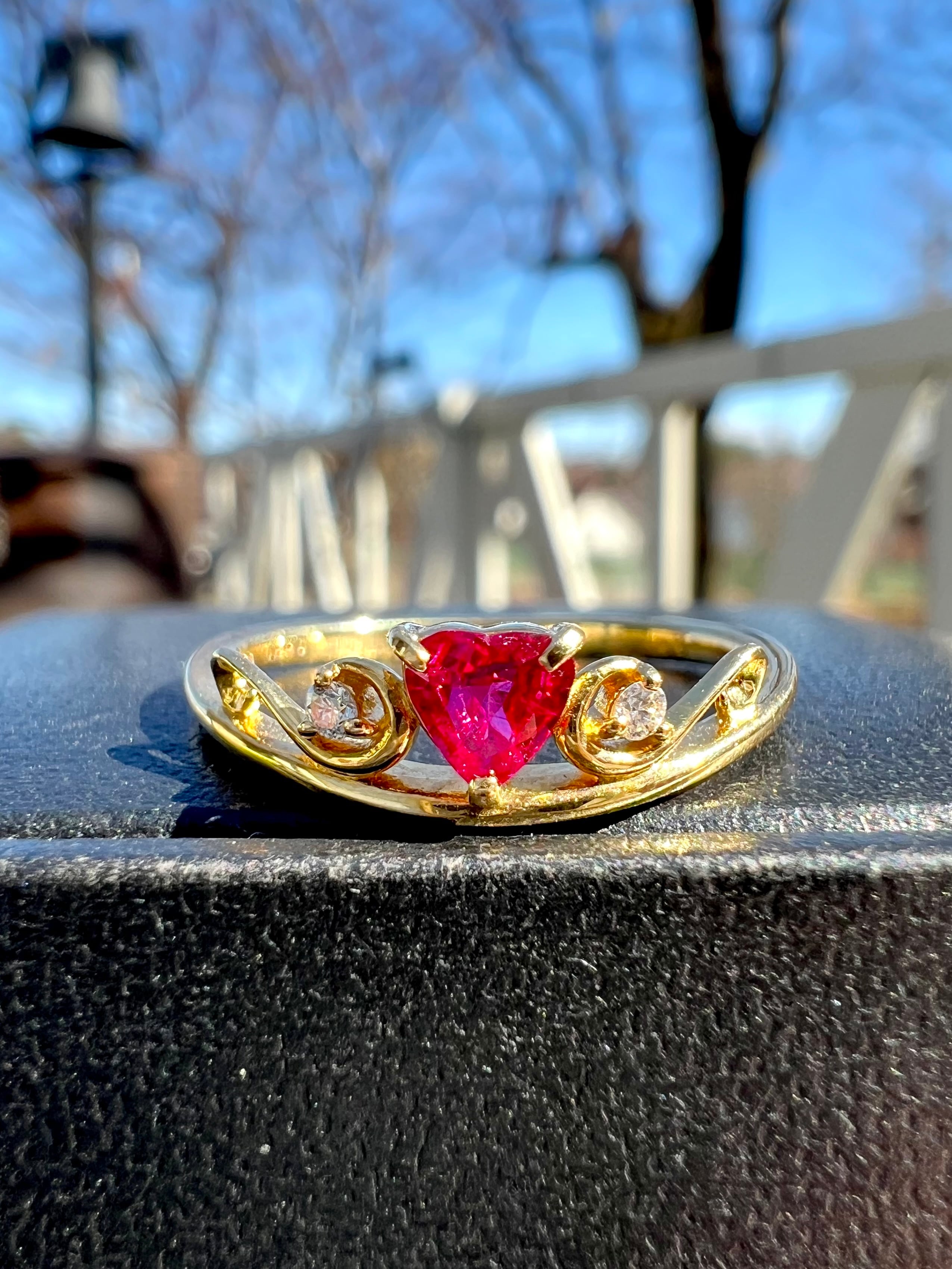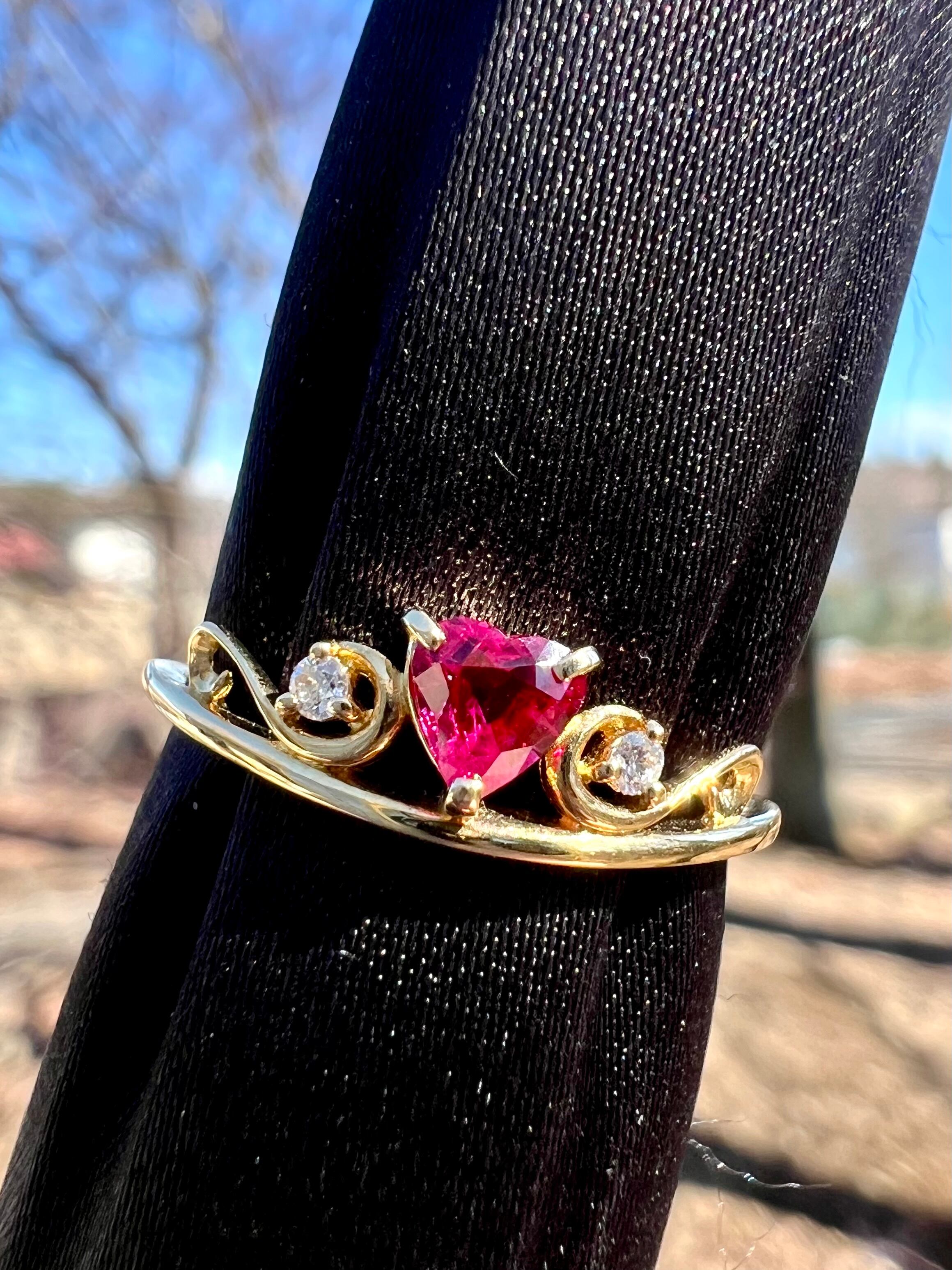 超可愛い!K18 ハートシェイプ!ルビーダイヤモンドリング JGGLソーティング付属