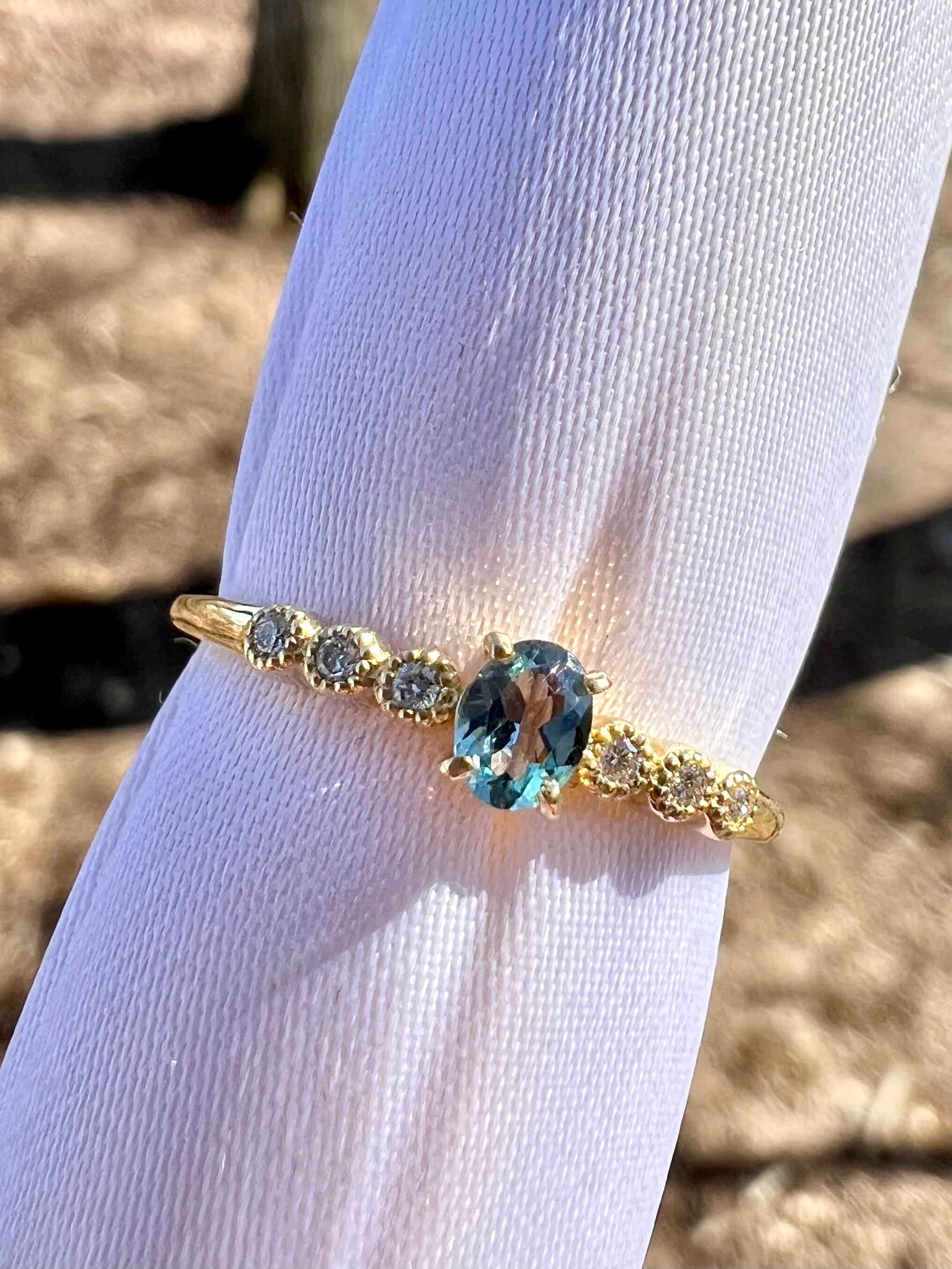 多色性のレアストーン! K18 ブルーカラータンザニア産コーネルピンダイヤモンドリング