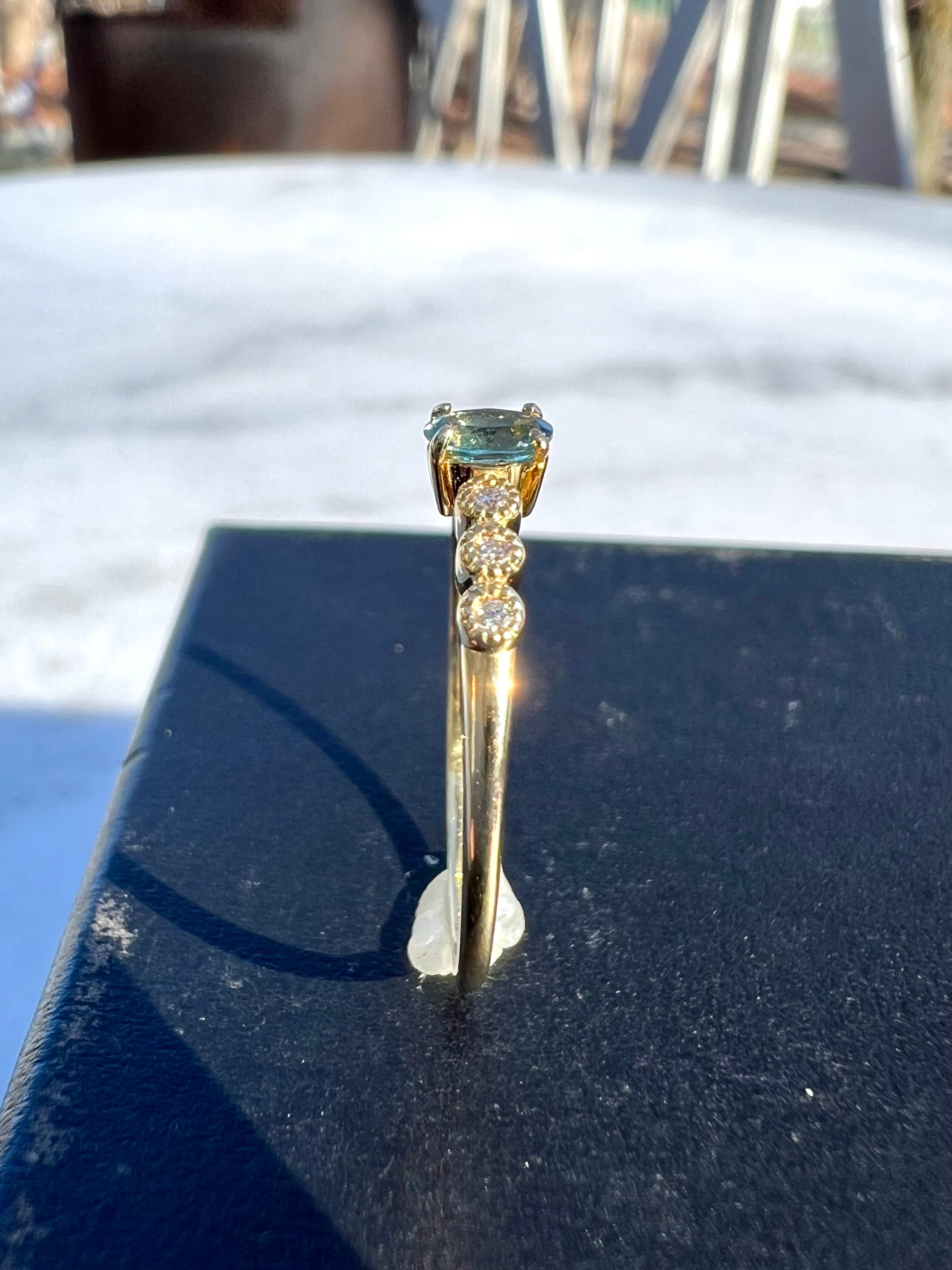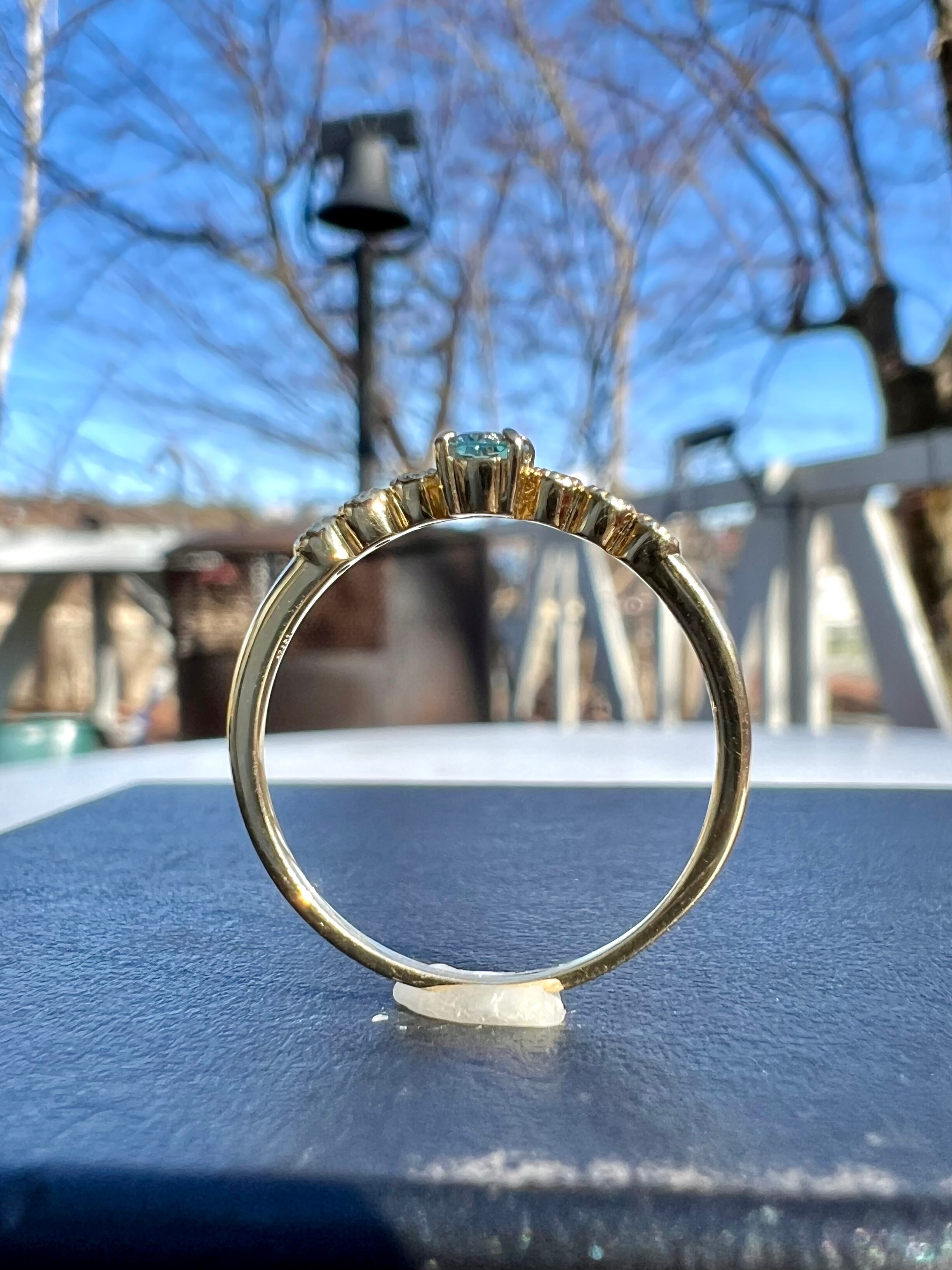 多色性のレアストーン! K18 ブルーカラーコーネルピンダイヤモンドリング