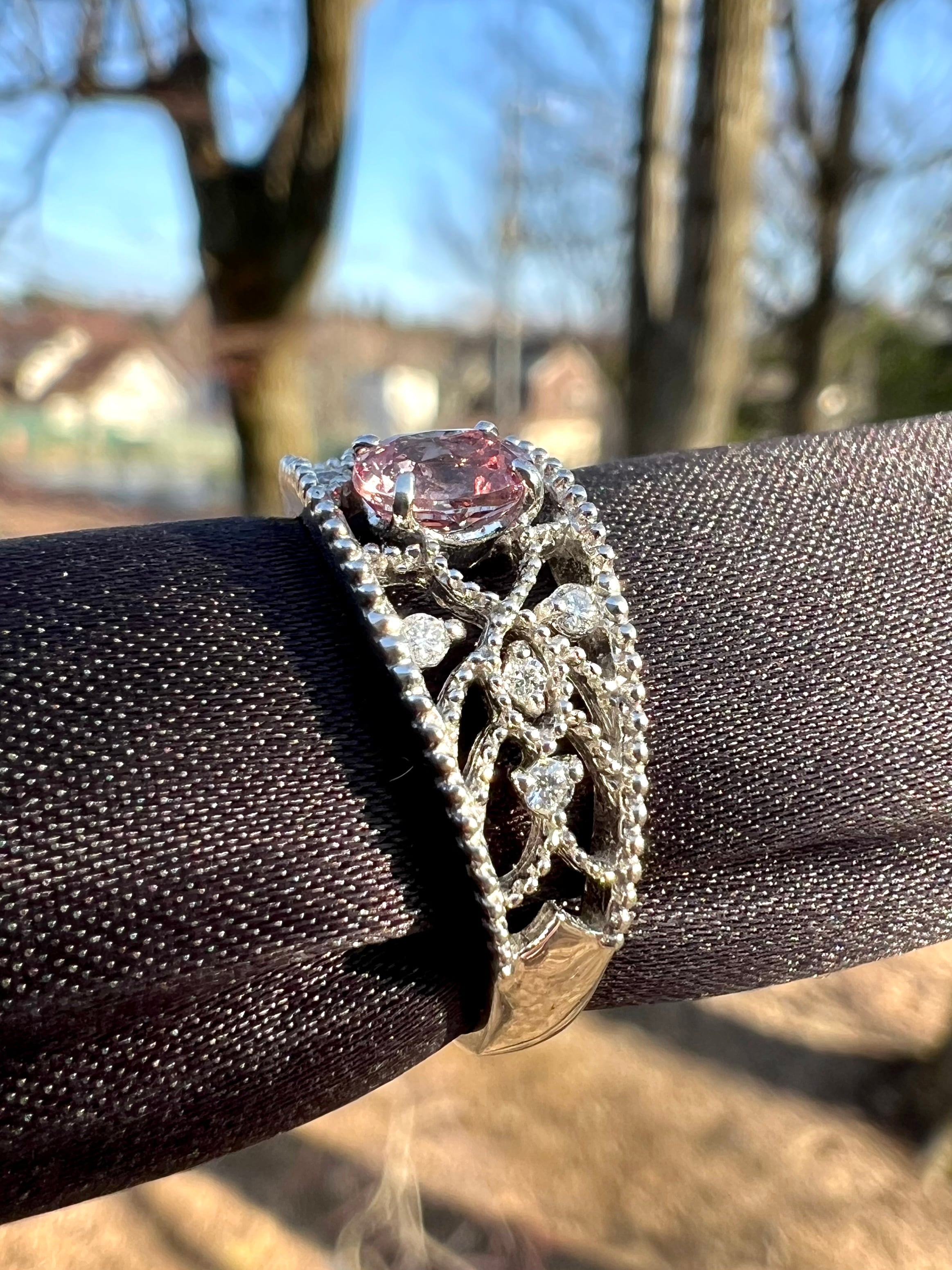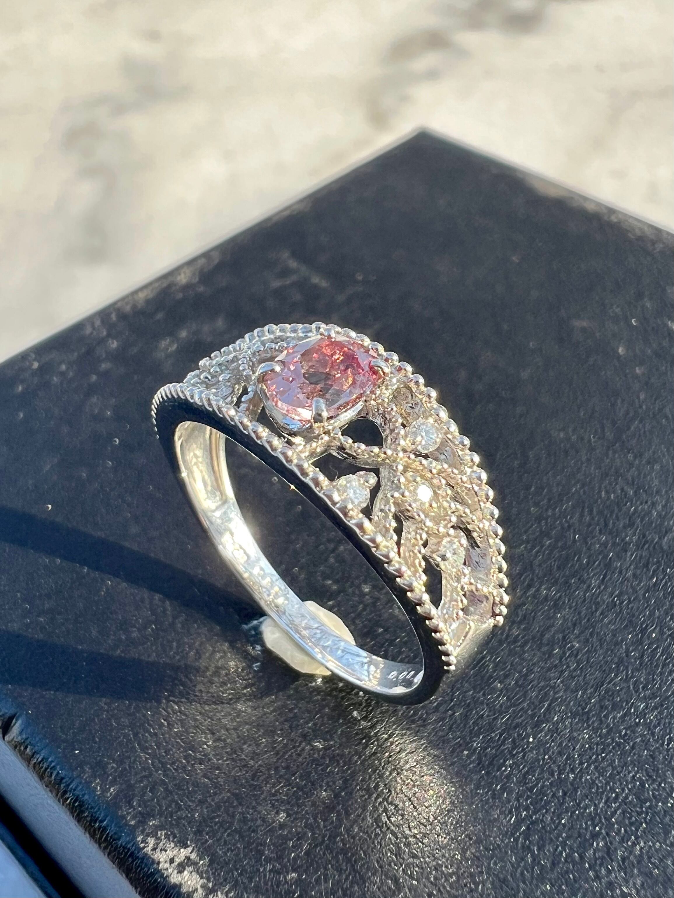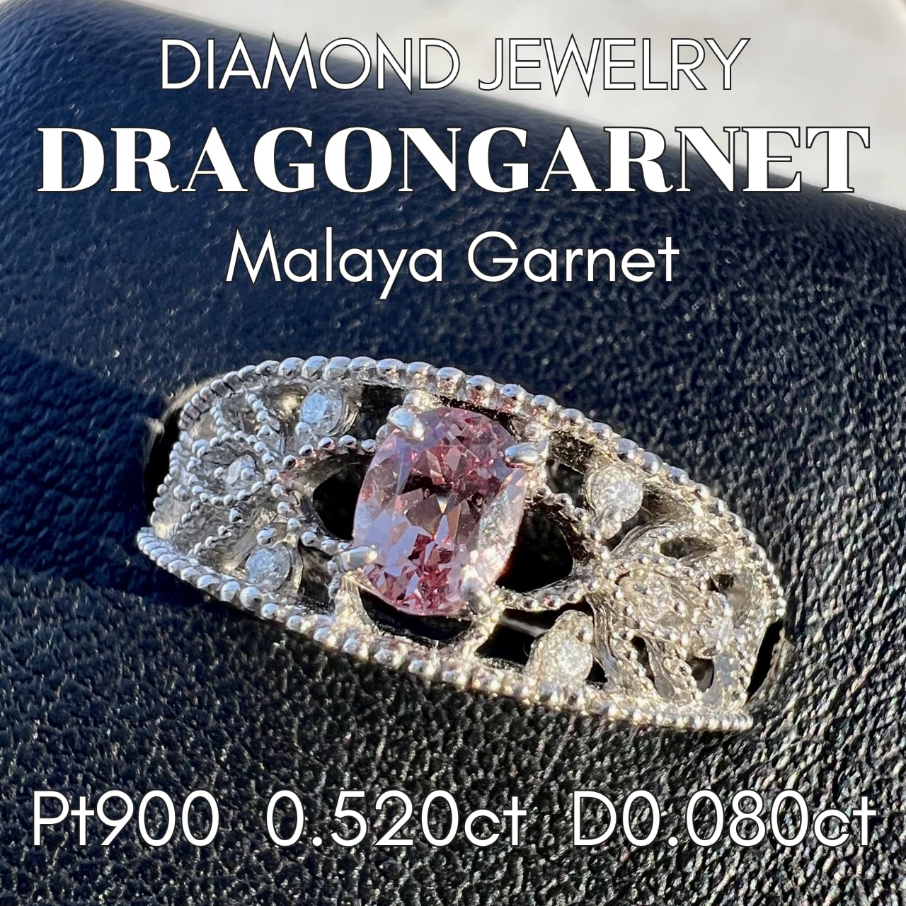 Pt900 ドラゴンガーネット(マラヤガーネット)ダイヤモンドリング JGGL鑑別書付属
