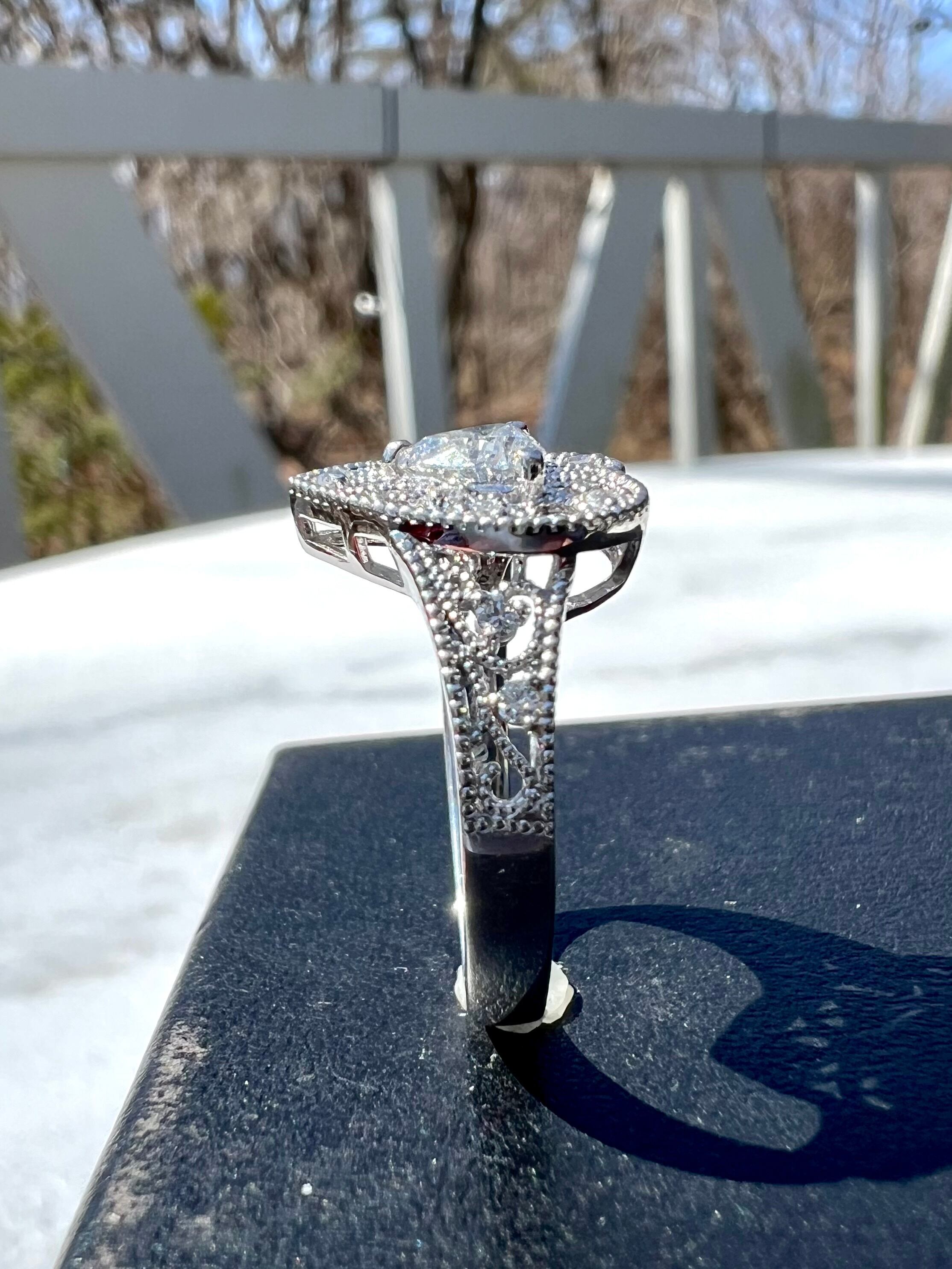 ハートシェイプのダイヤを大きなハートで包み込んだデザインが超可愛いです!