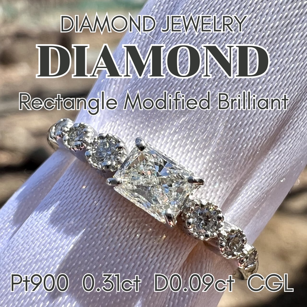 Pt900 Rectangle Modified Brilliant cut 0.31ct ダイヤモンドリング CGL鑑定書付属