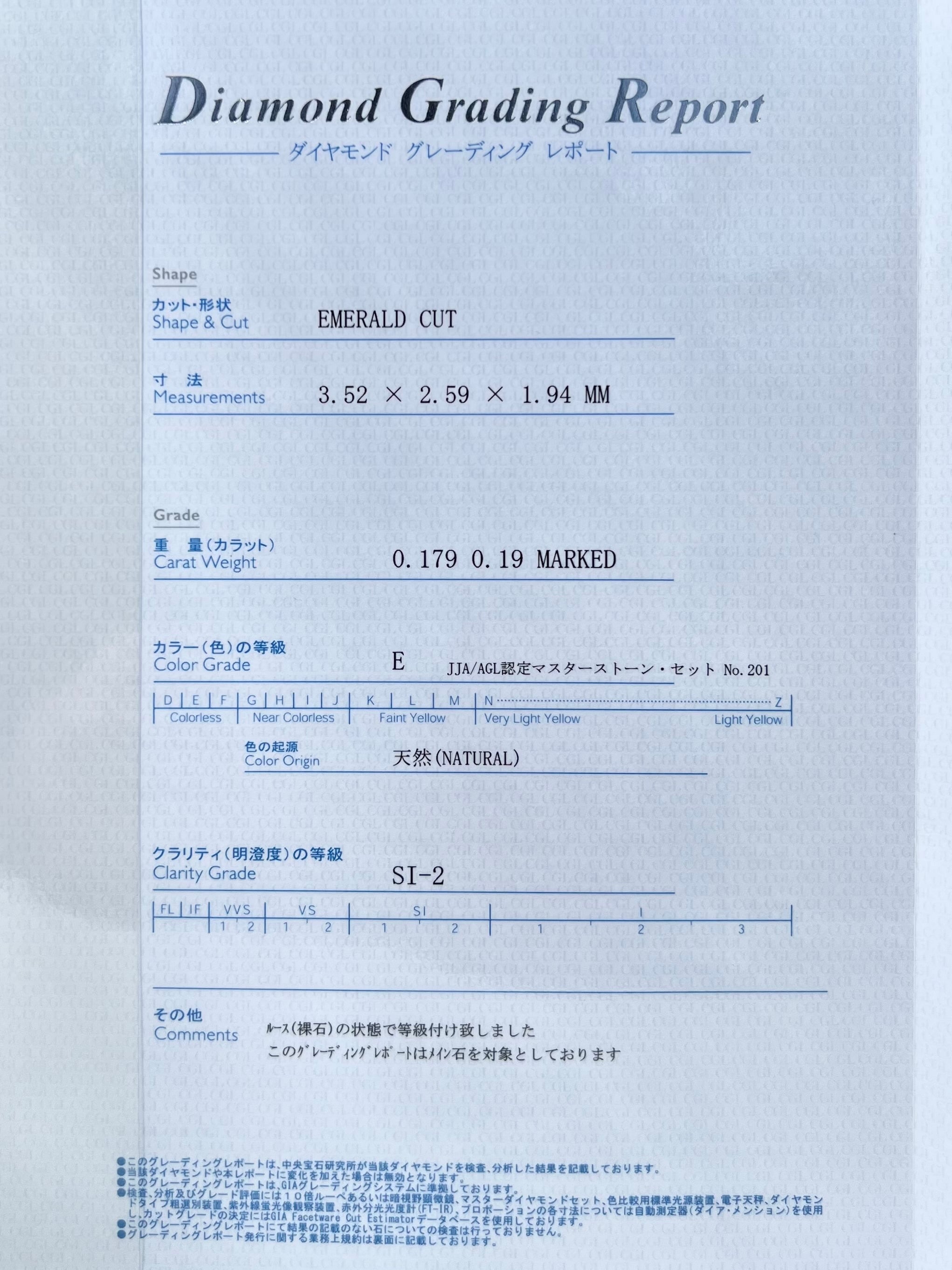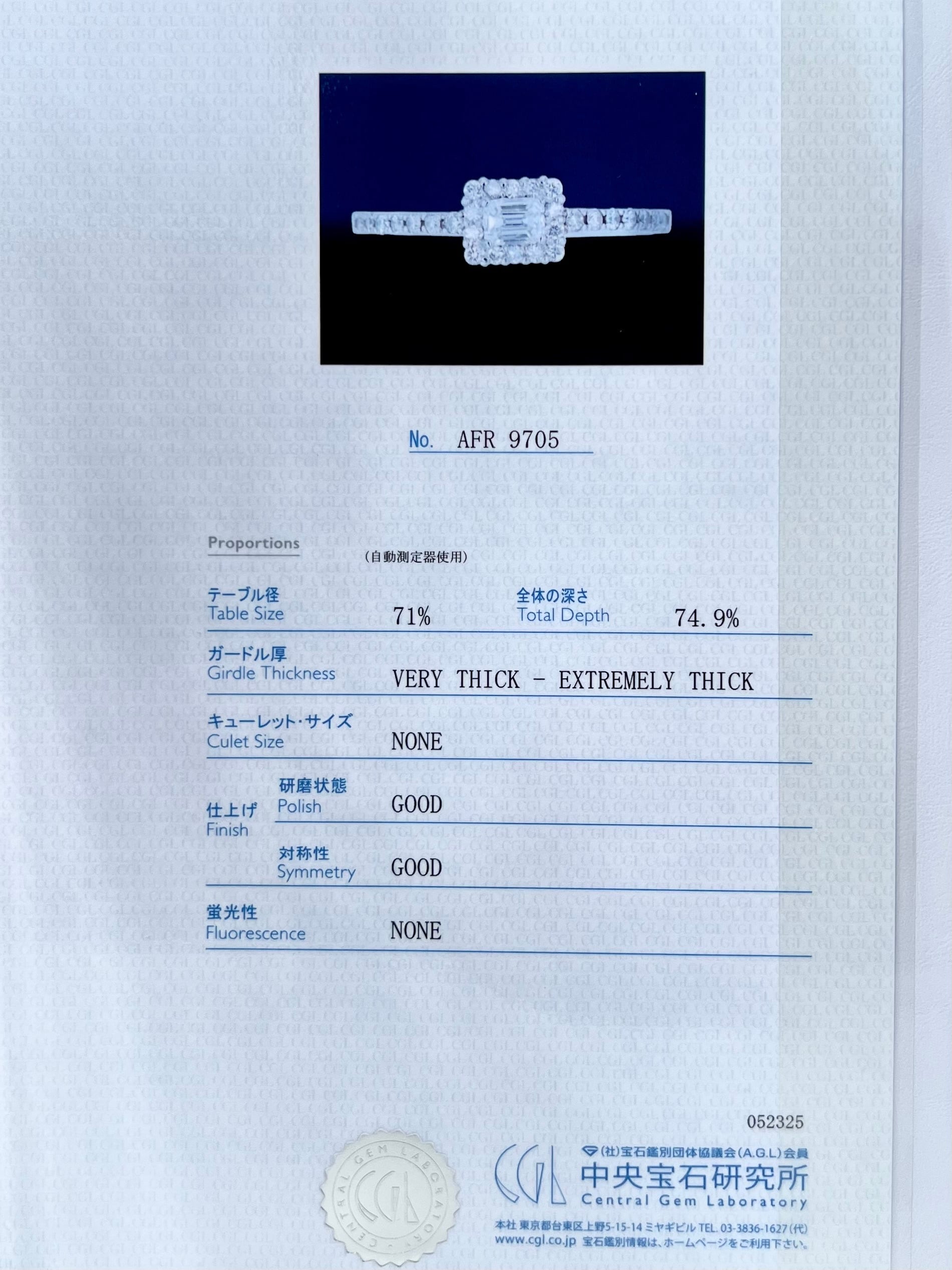 Pt900 Eカラー!エメラルド cut 0.179ct ダイヤモンドリング CGL鑑定書付属