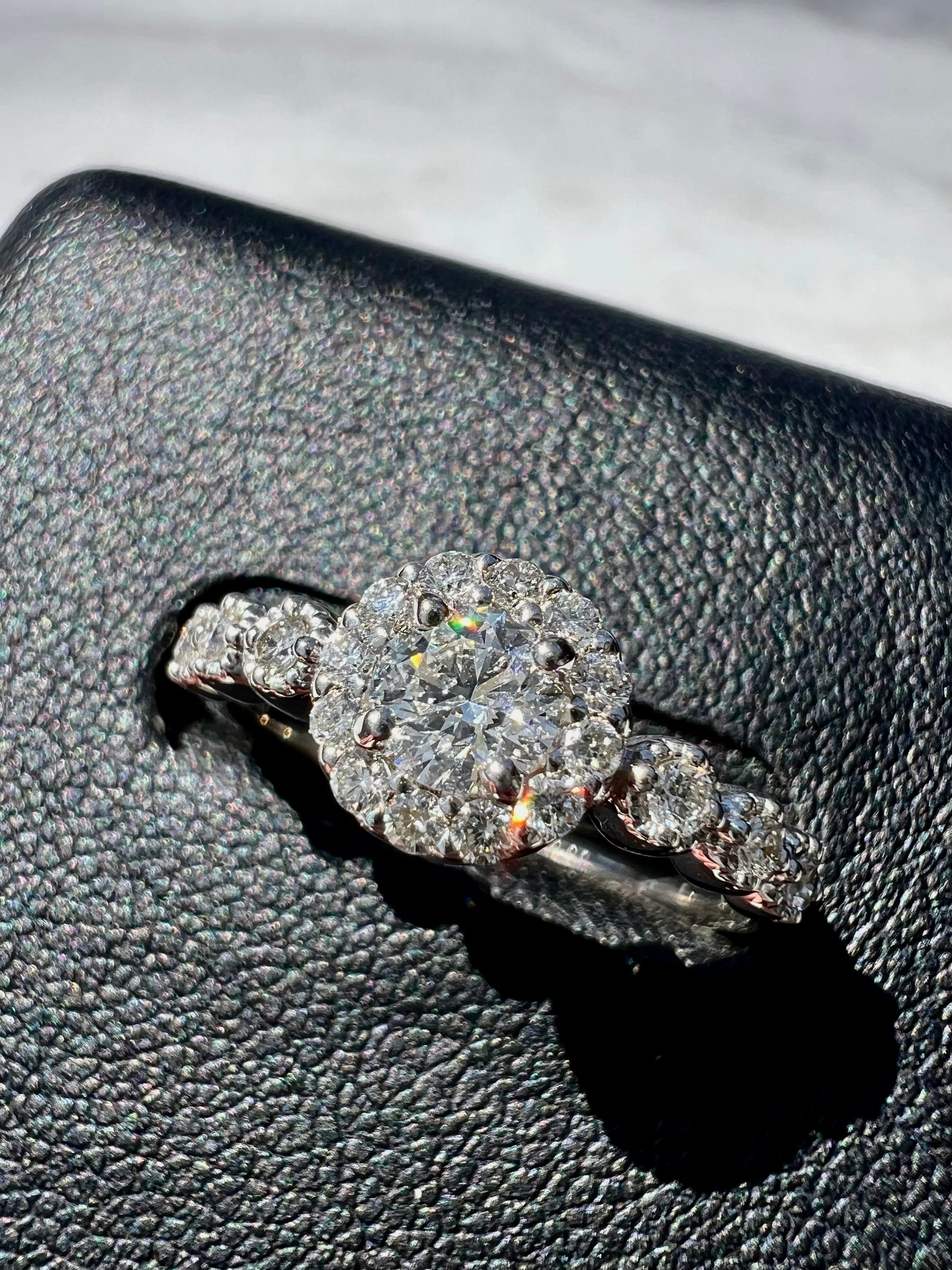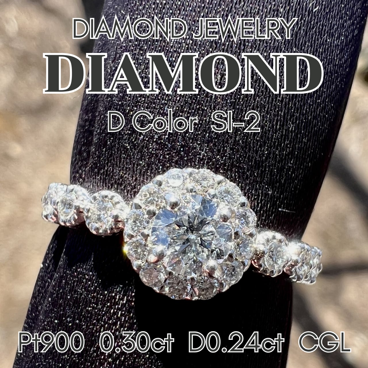 D カラー0.3ctのラウンドブリリアントカットのダイヤを綺麗なダイヤで取巻き