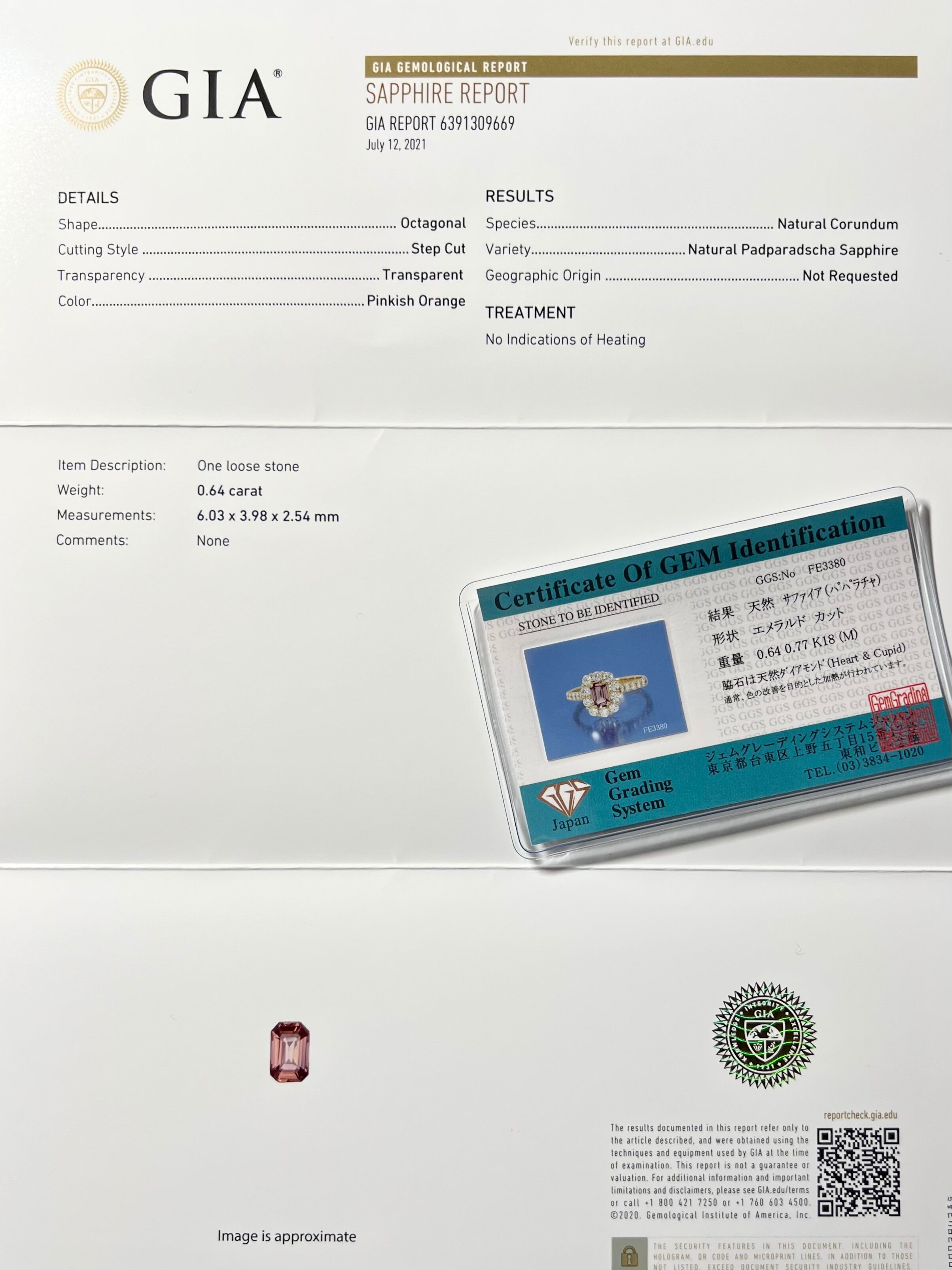 GIA 非加熱パパラチアサファイヤK18ダイヤモンドリング