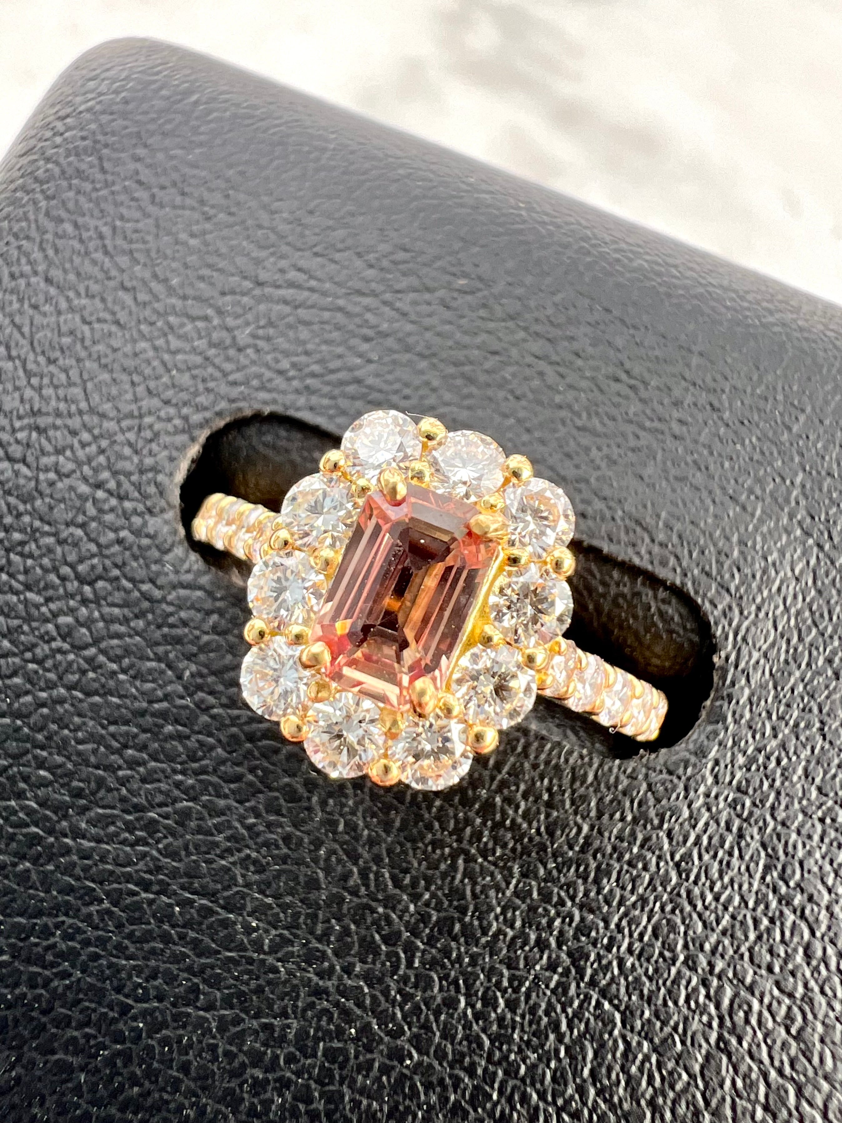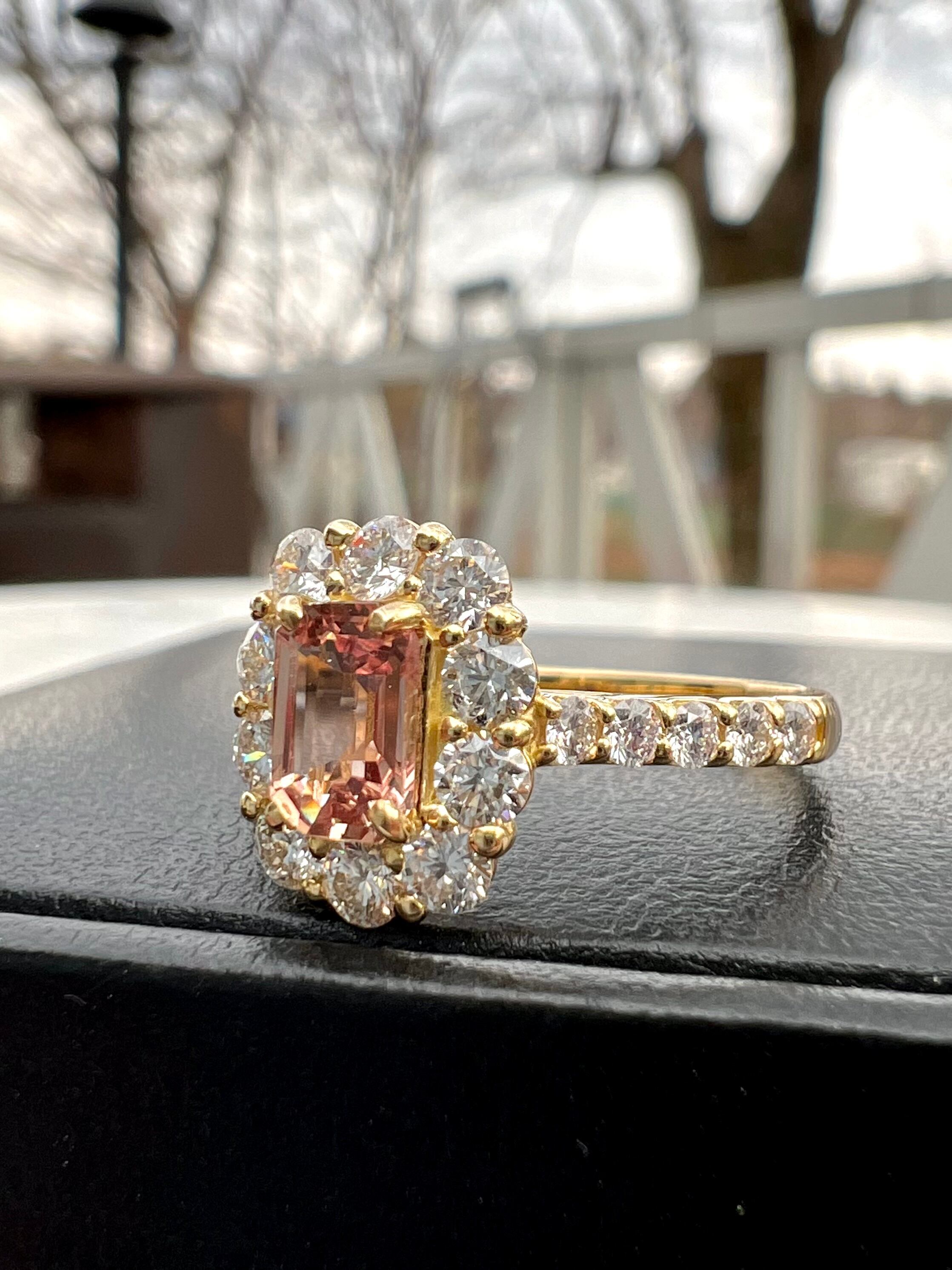 非加熱パパラチアサファイヤK18ダイヤモンドリング