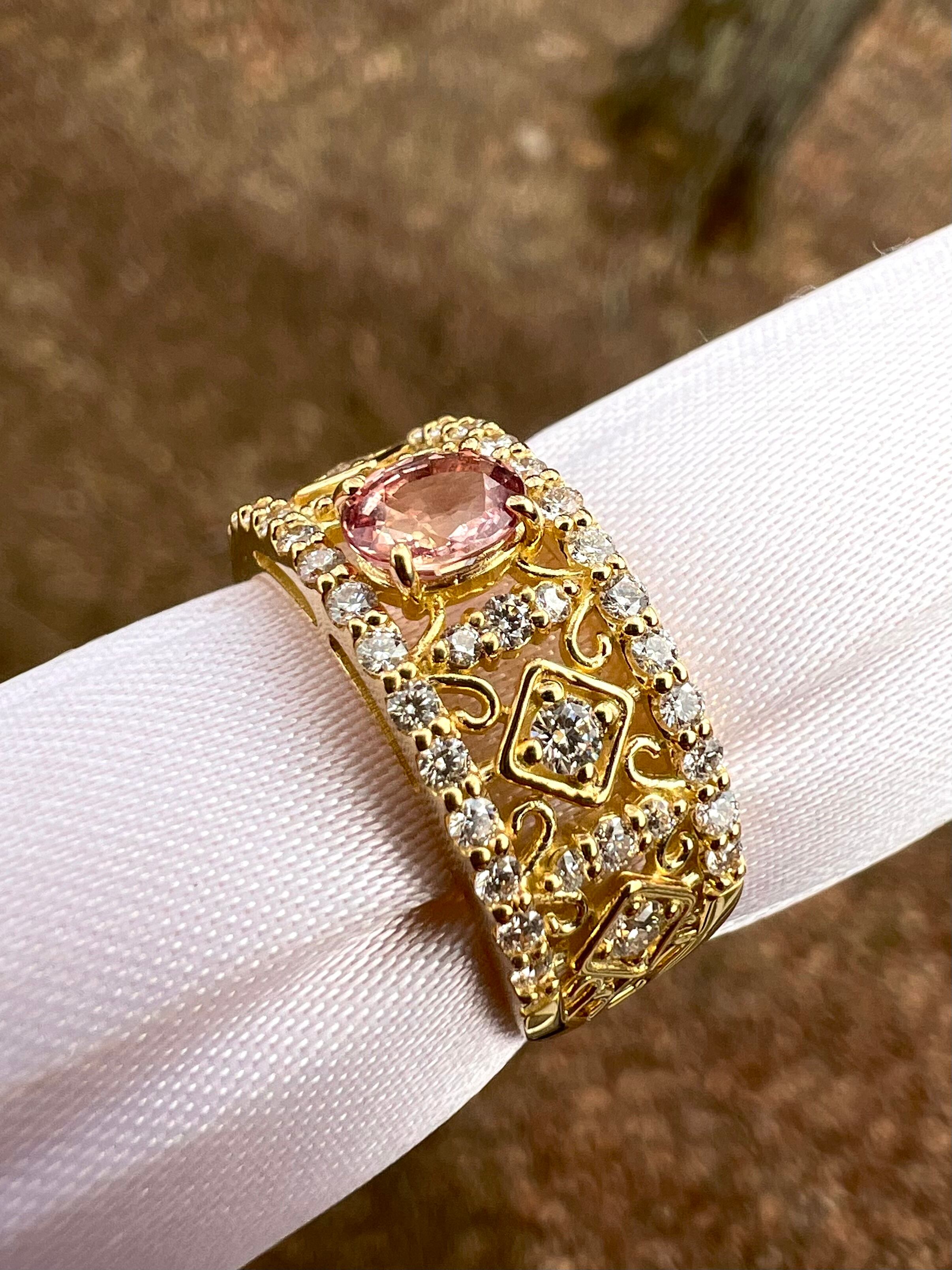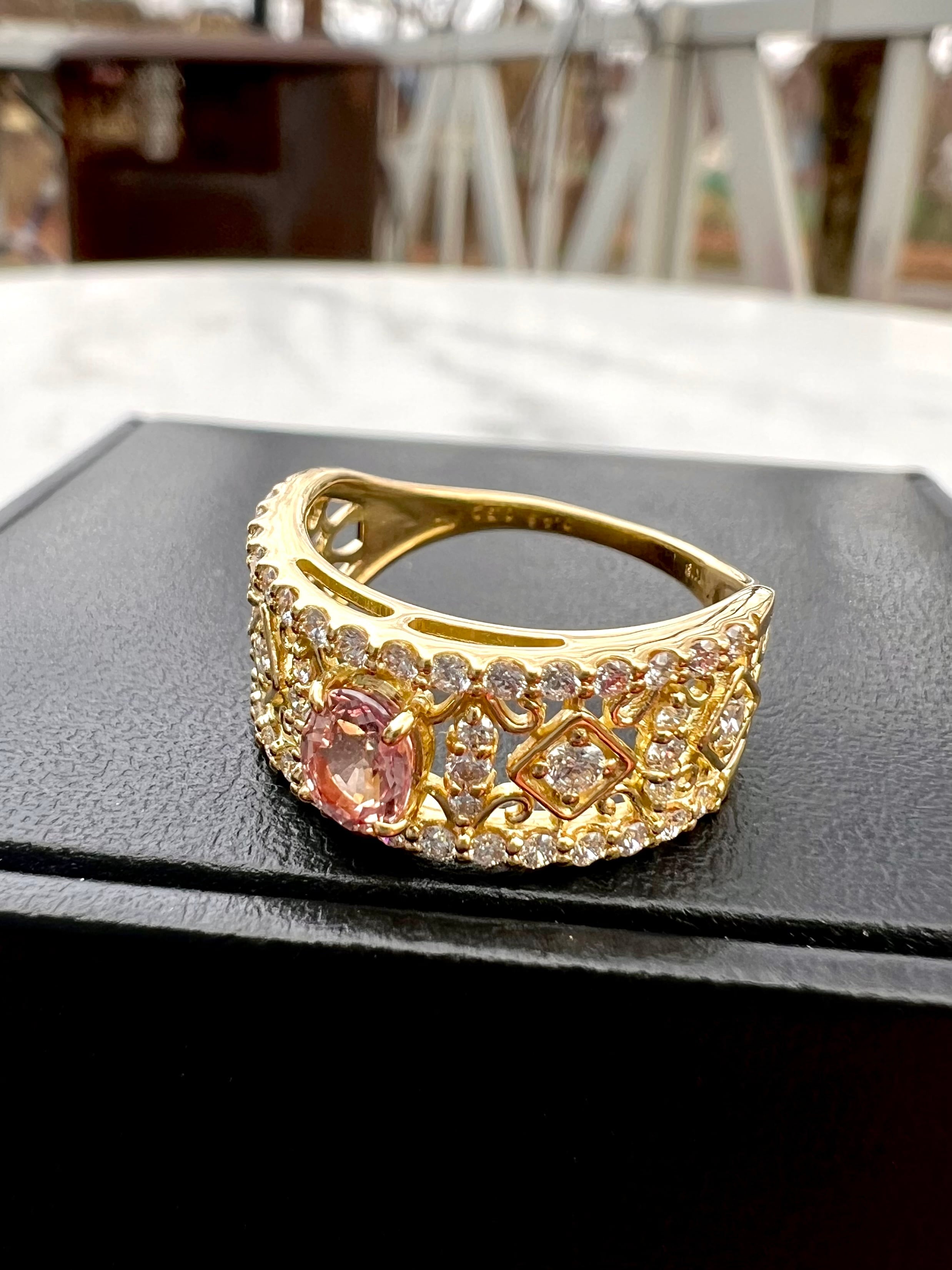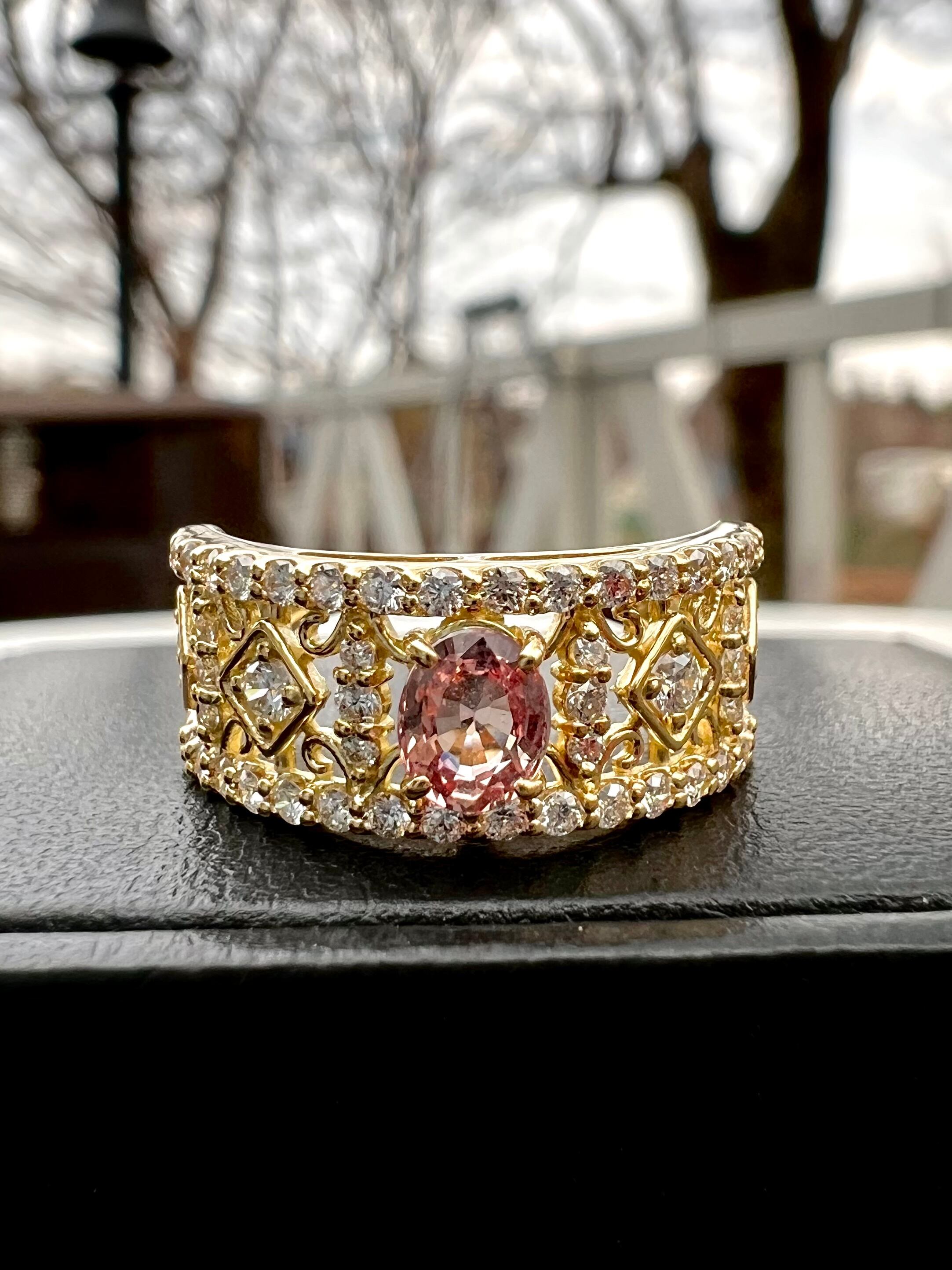 非加熱パパラチアサファイヤK18ダイヤモンドリング
