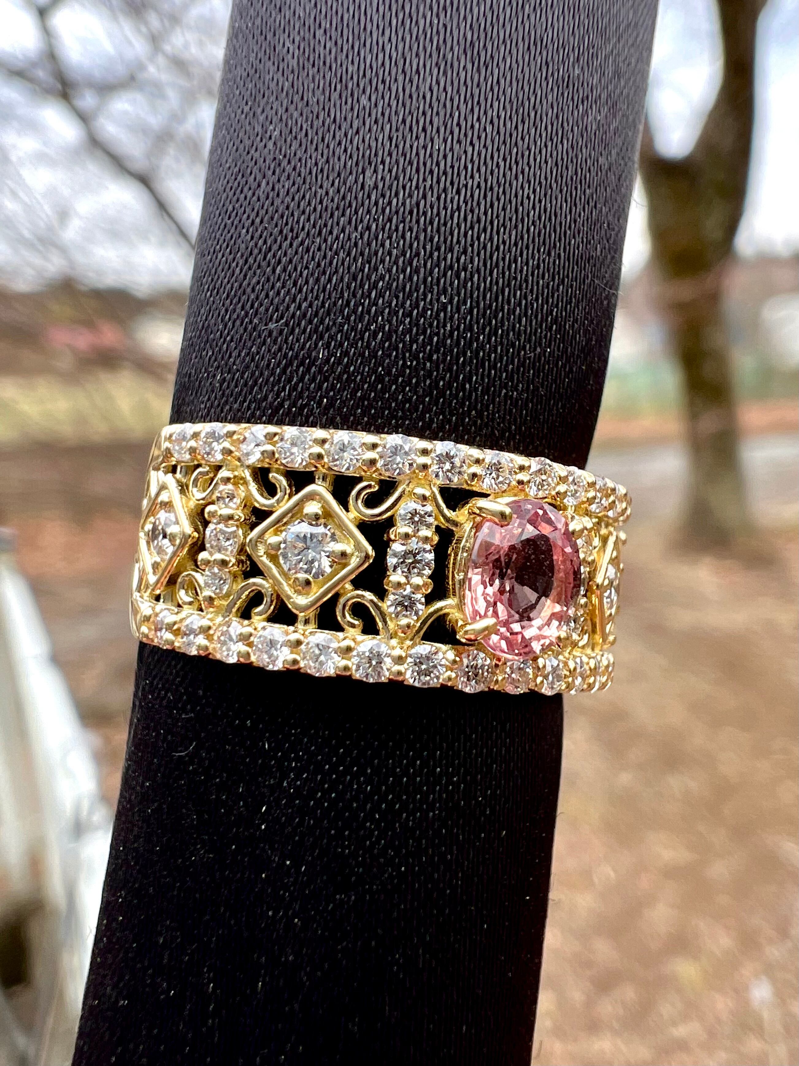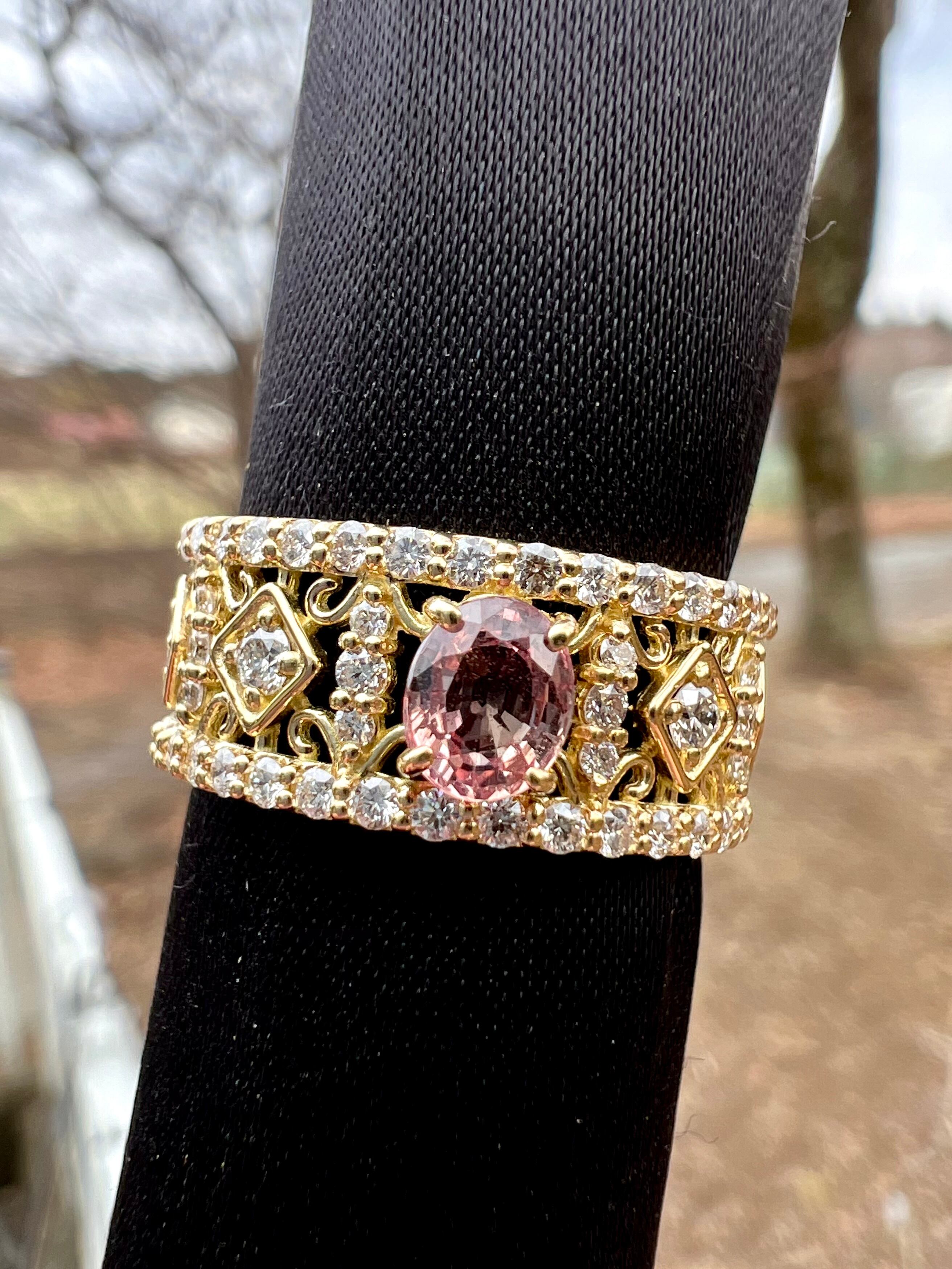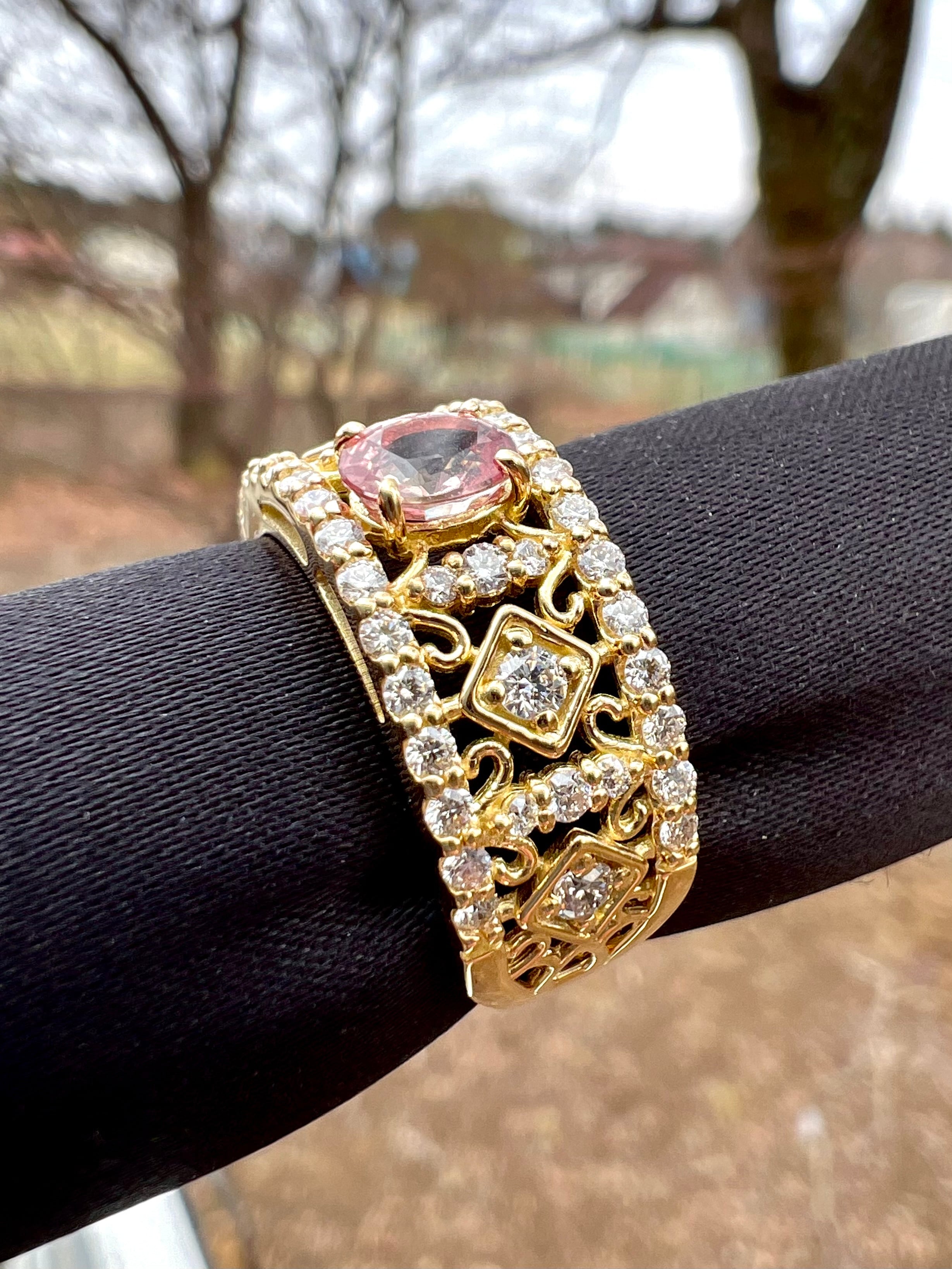 非加熱パパラチアサファイヤK18ダイヤモンドリング