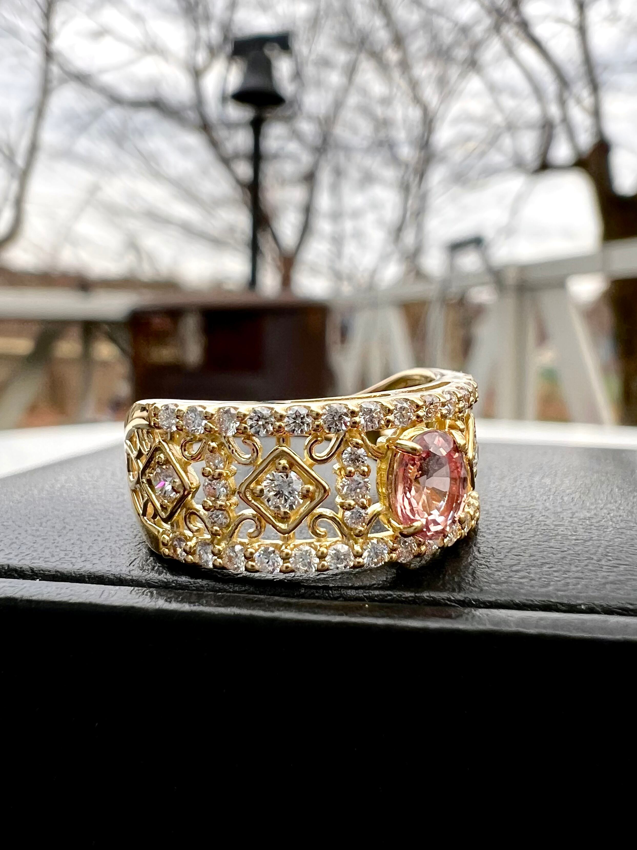 GIA 非加熱パパラチアサファイヤK18ダイヤモンドリング