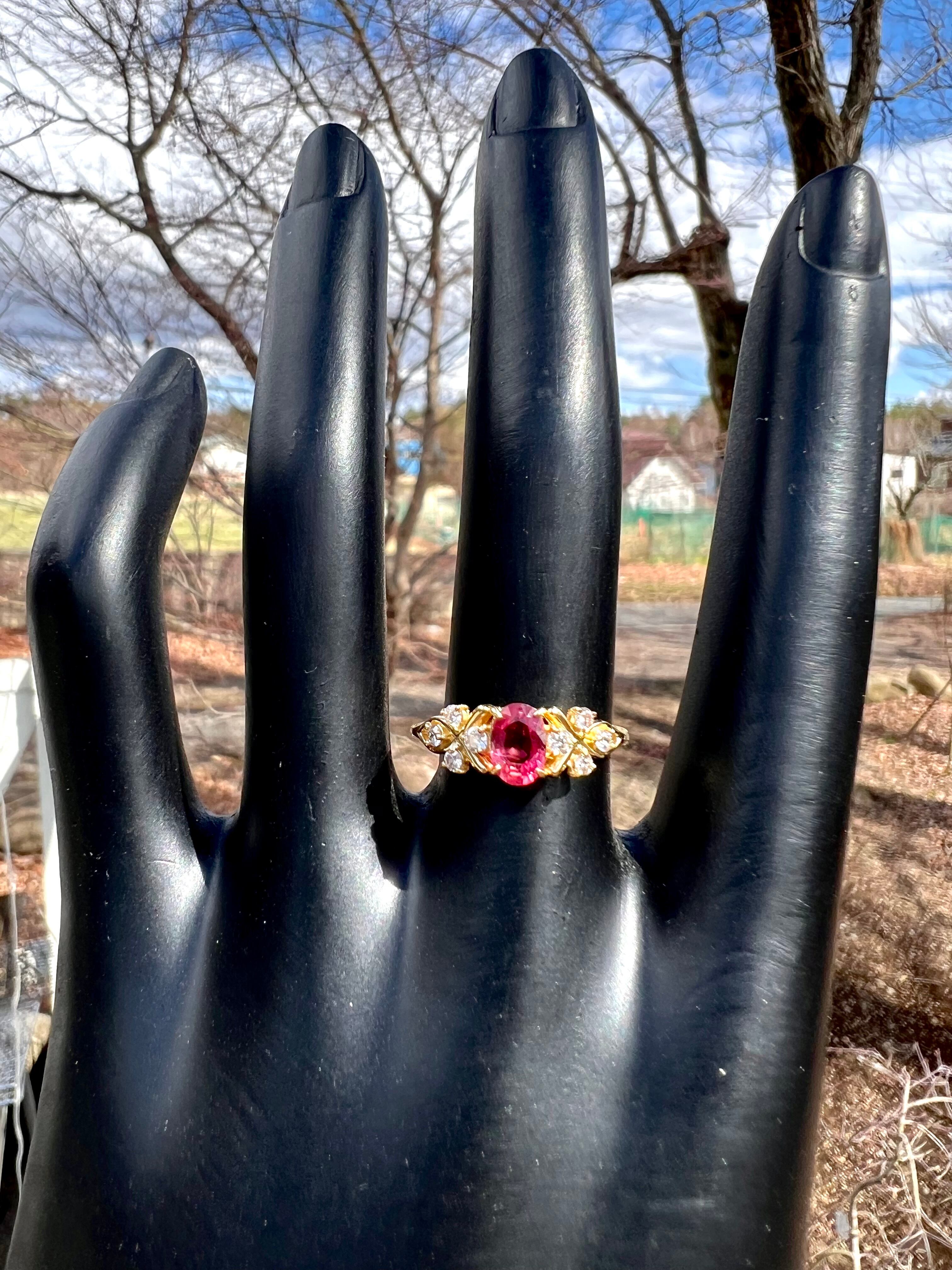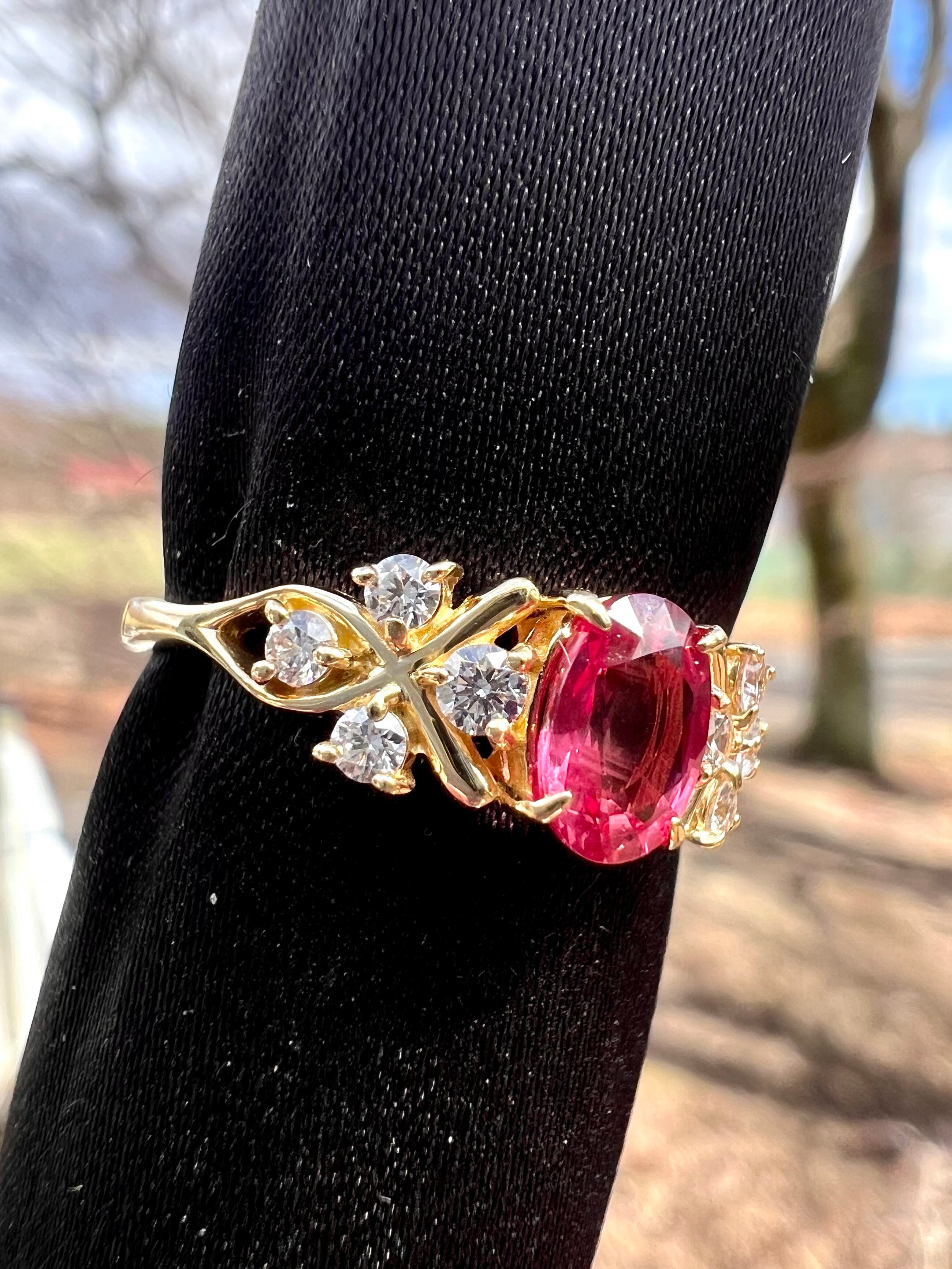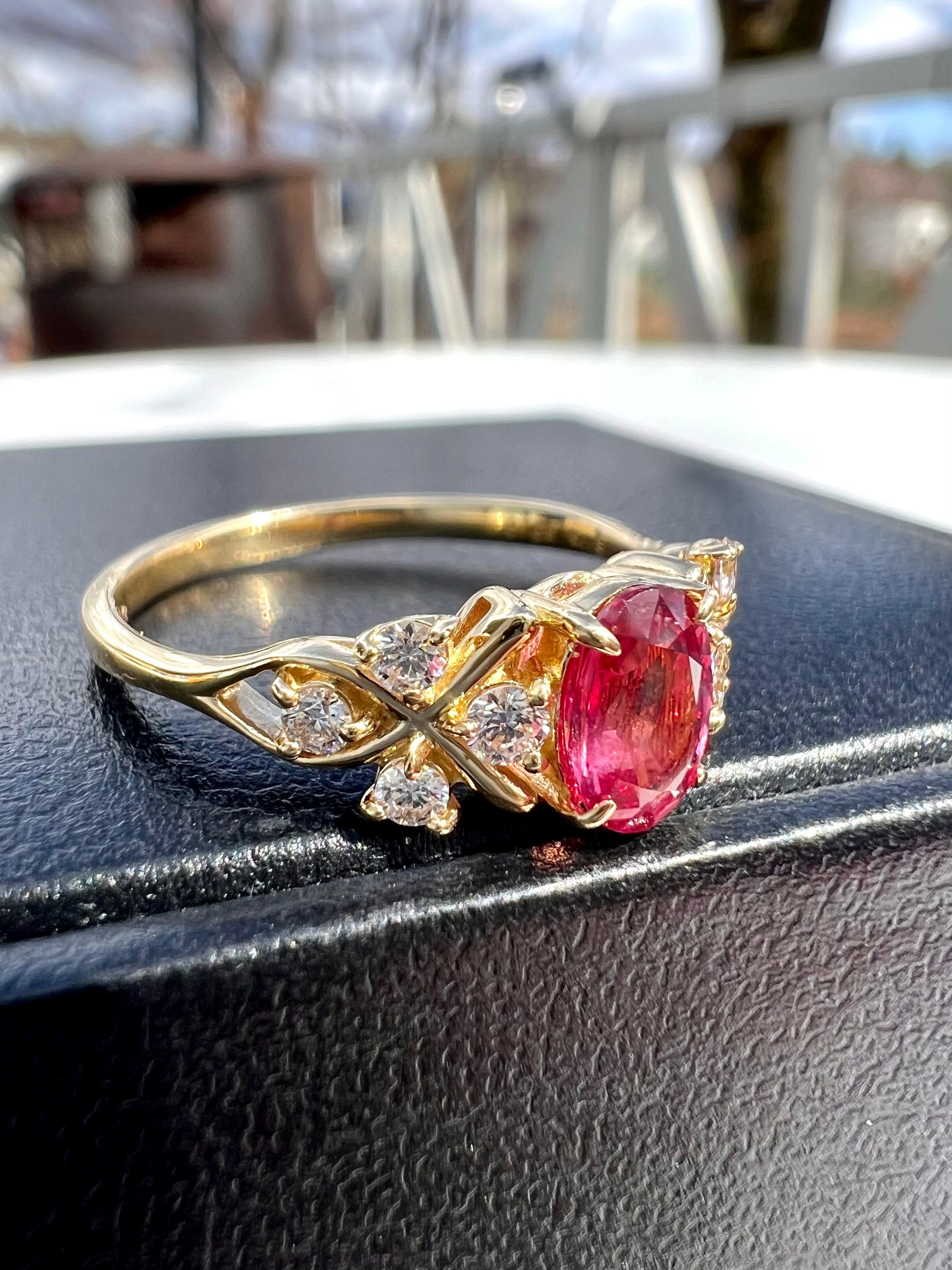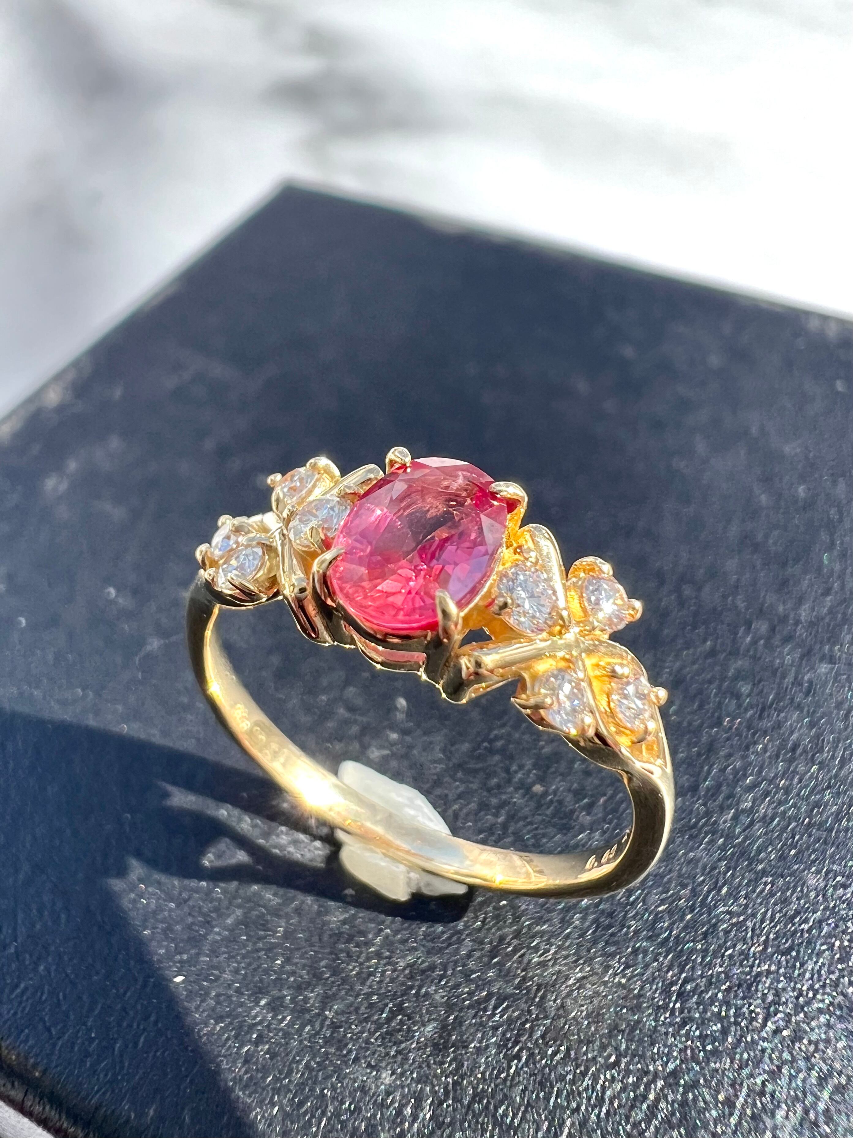 ディープカラーホットピンク!非加熱パパラチアサファイヤK18ダイヤモンドリング AIGSレポート付属