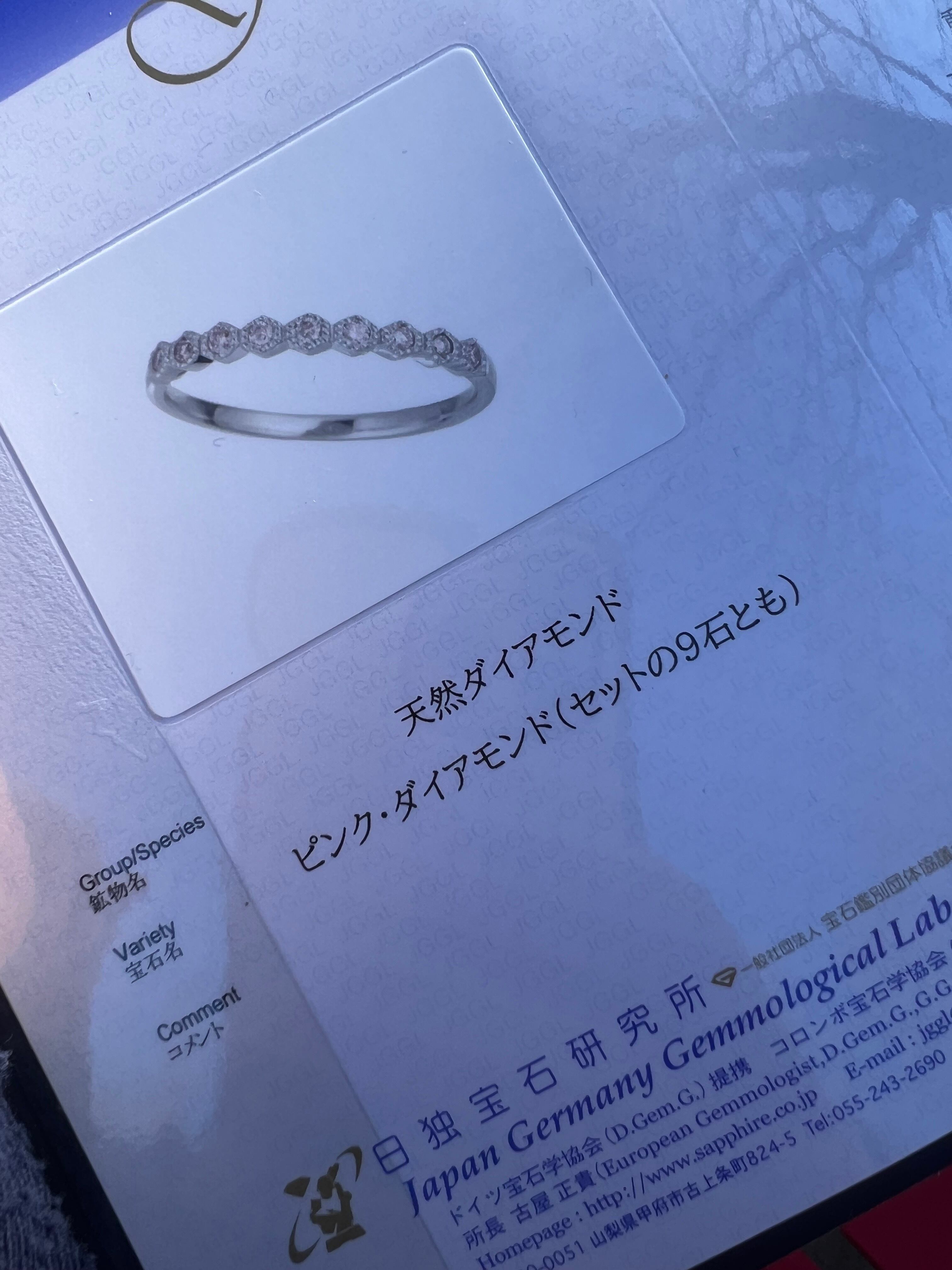 天然ピンクダイヤモンド9石 一文字リング 日独鑑別書付属