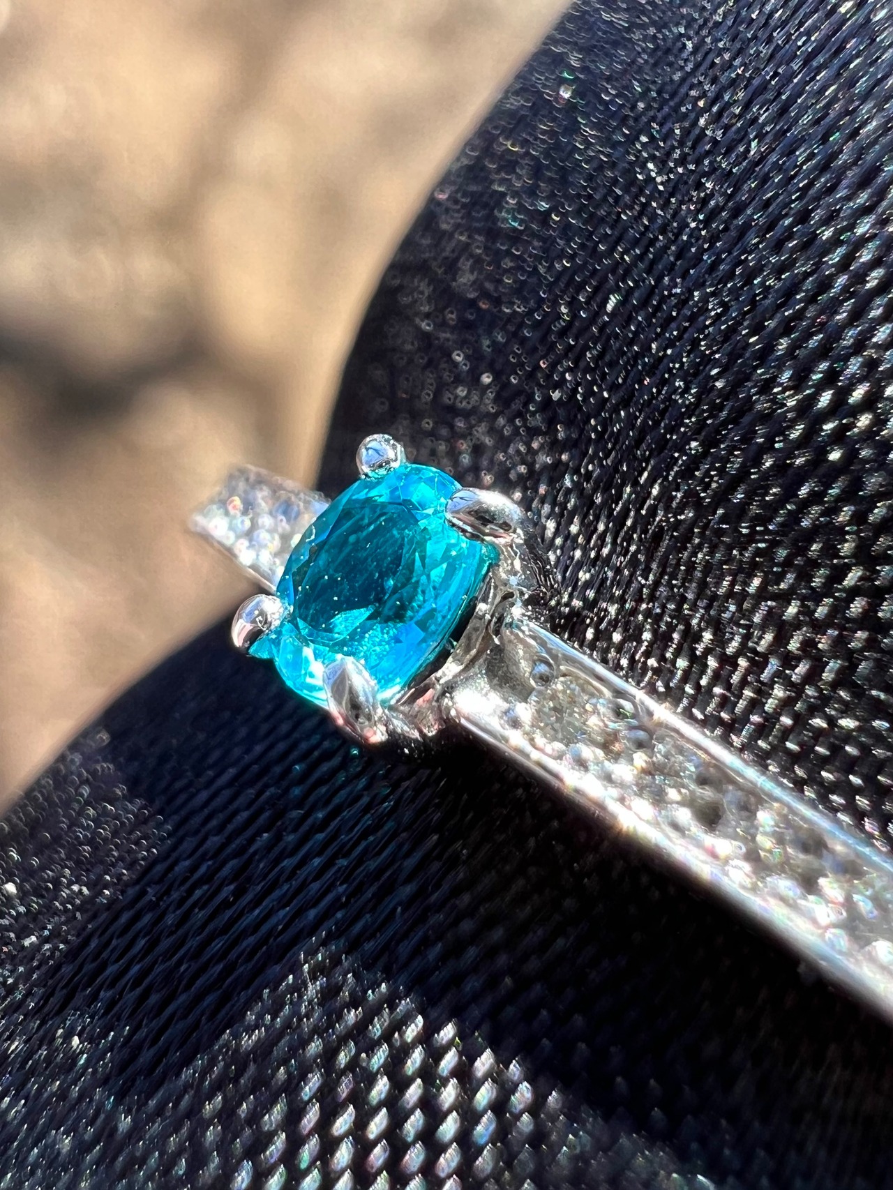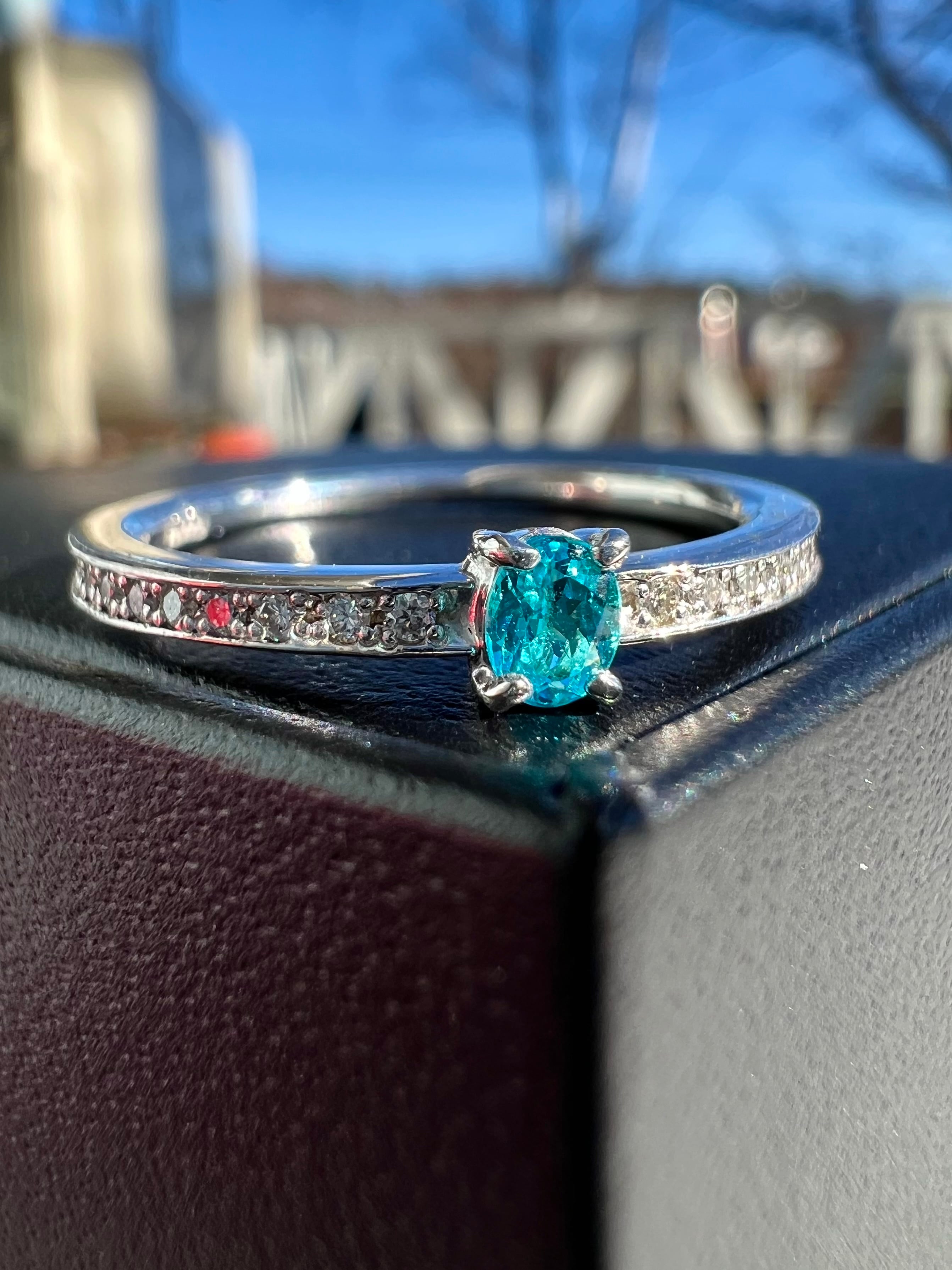 本当にクリアで青が強い綺麗なパライバです。