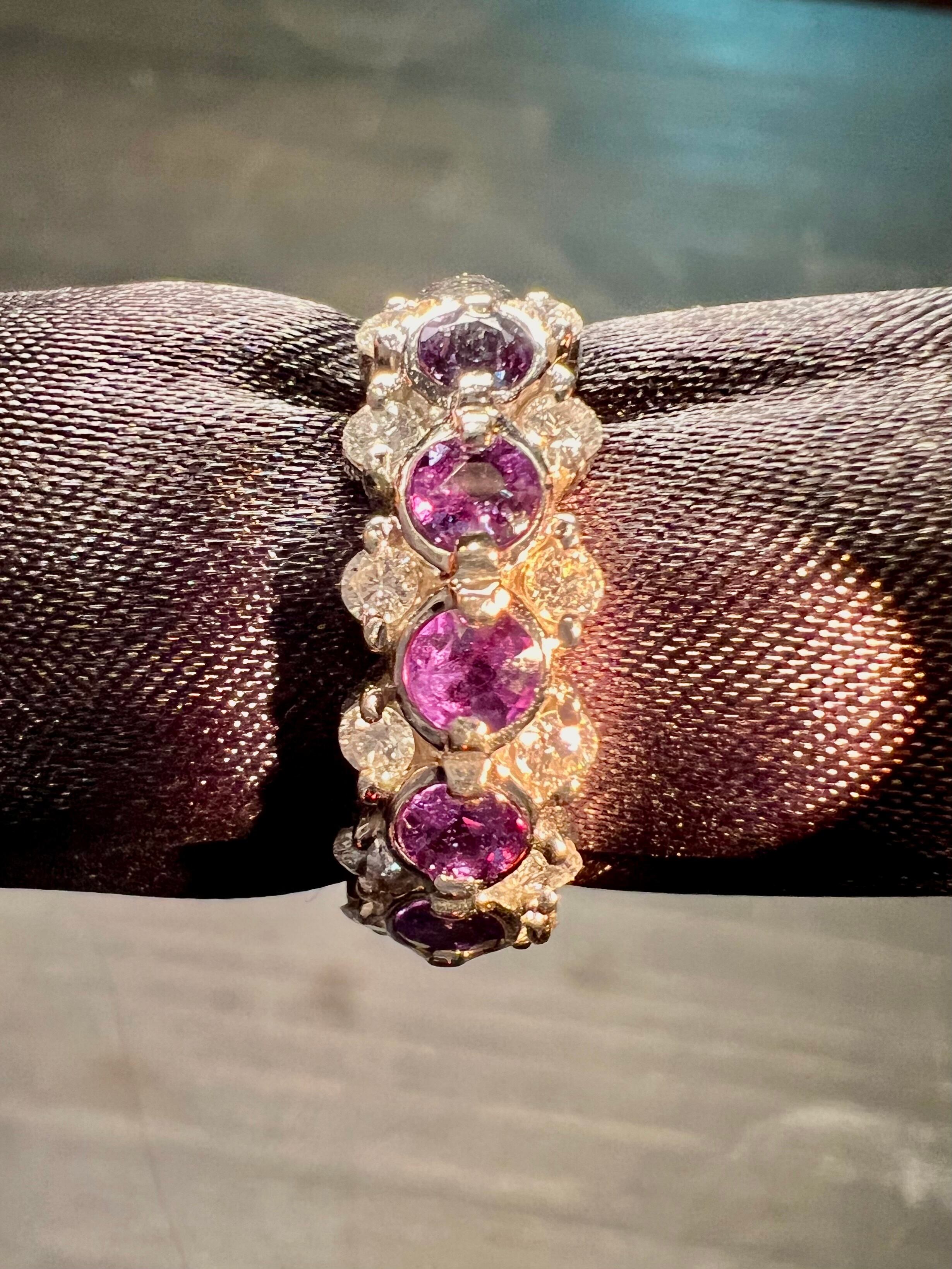 ブラジル産の美しいアレキサンドライトを一文字リングにしました。アレキサンドライトは、自然光や照明の下で石の色が変わるという特徴があり、神秘的で幻想的な魅力を持っています。