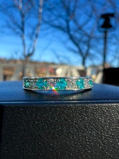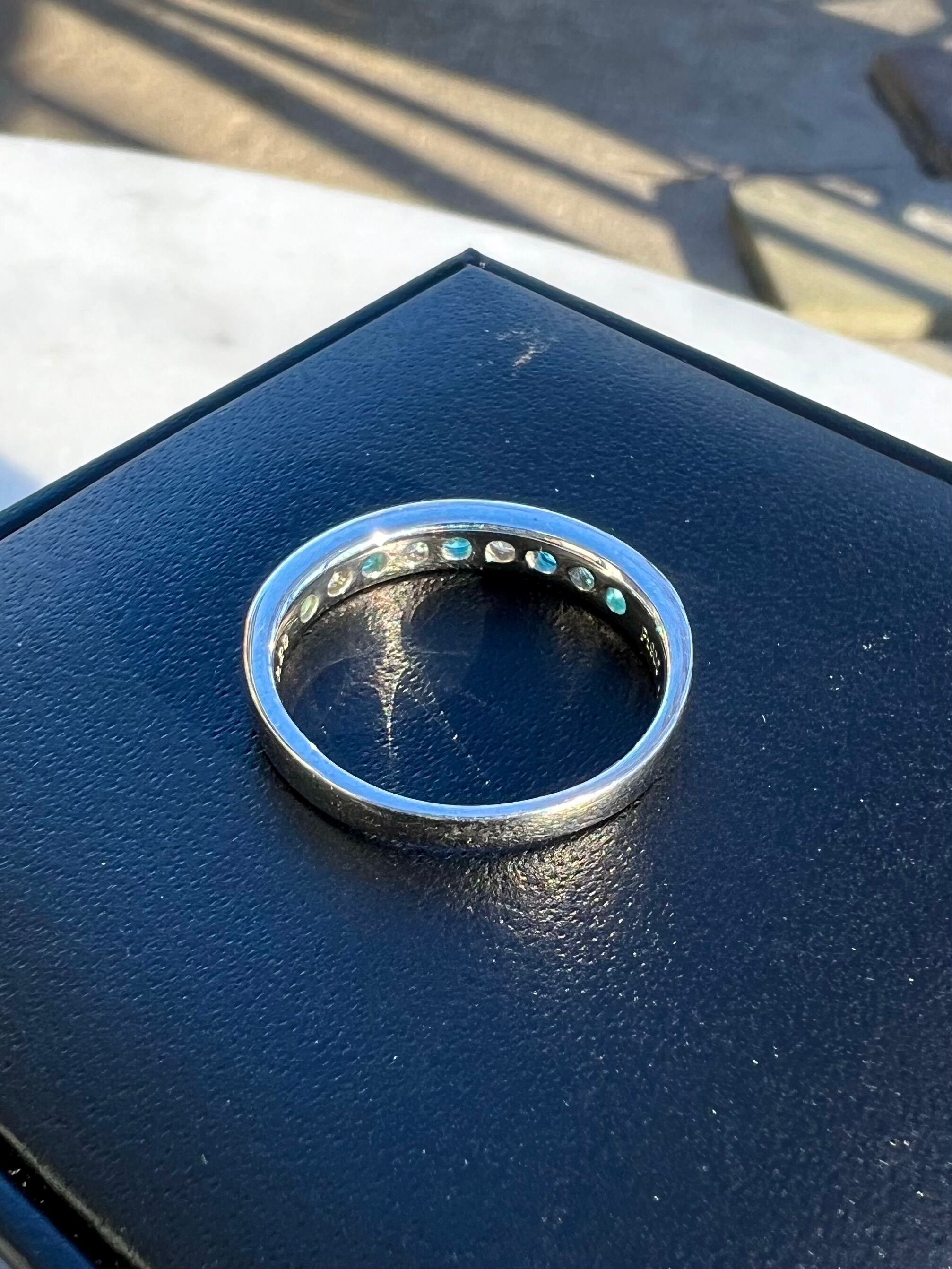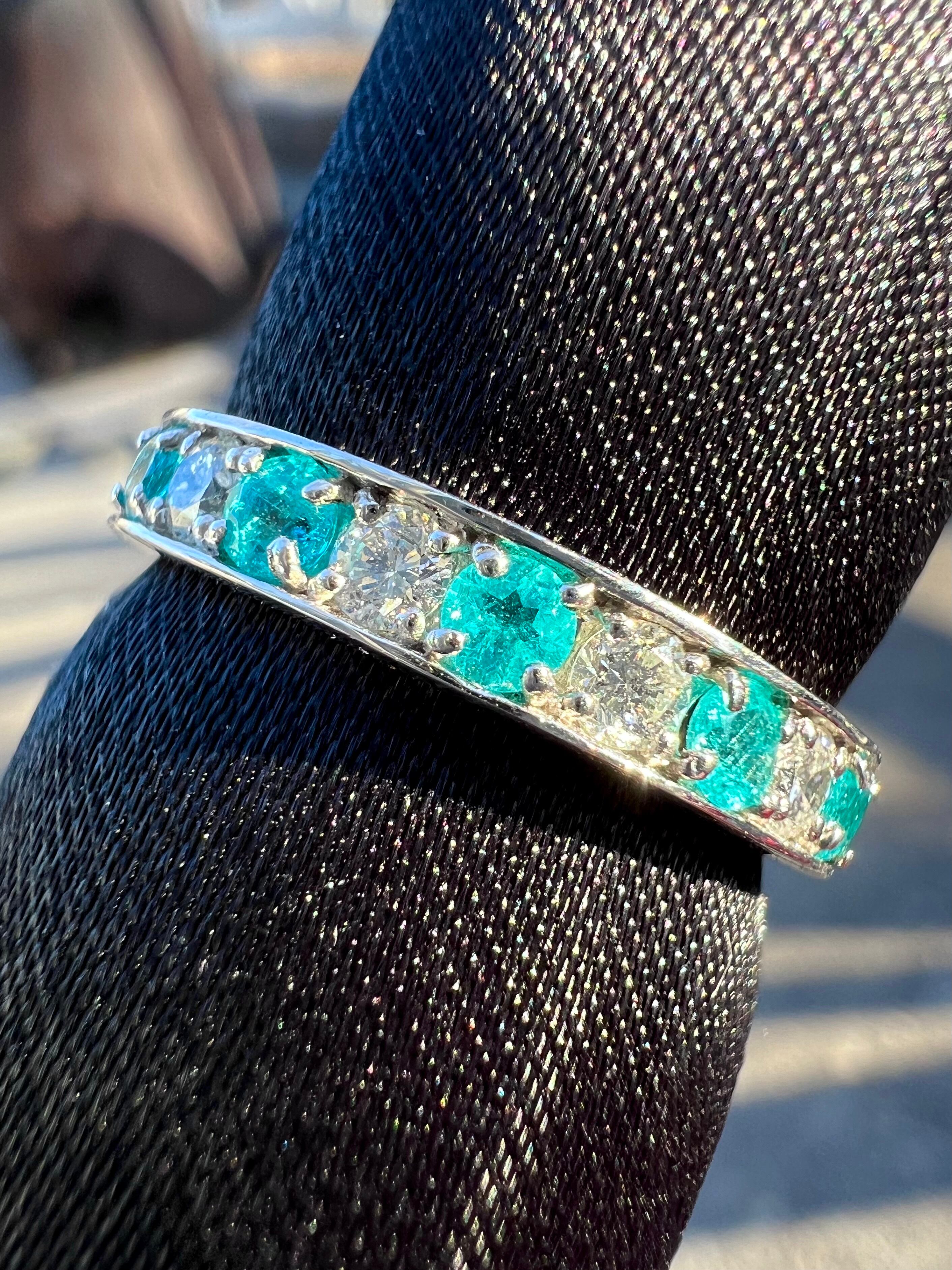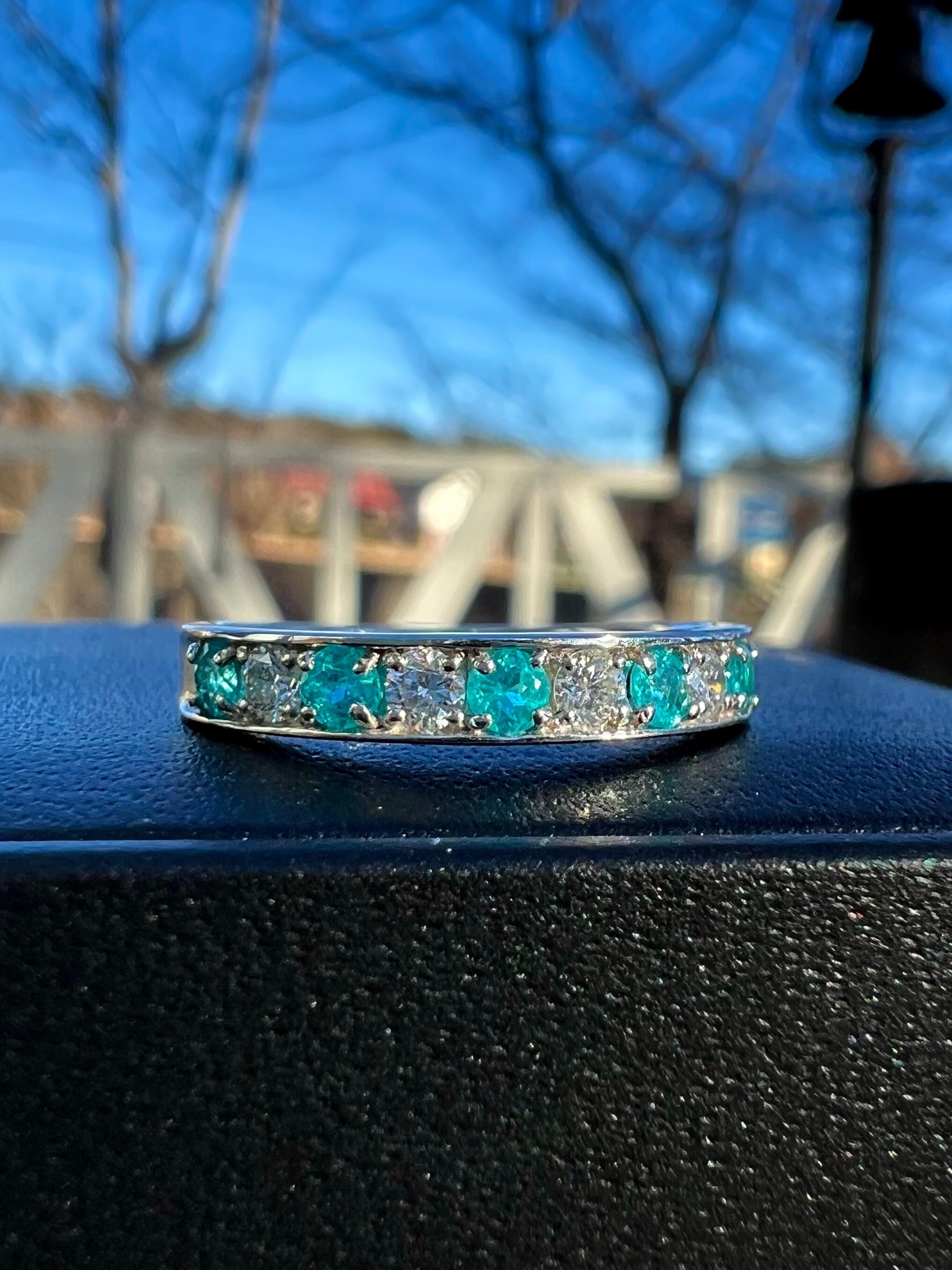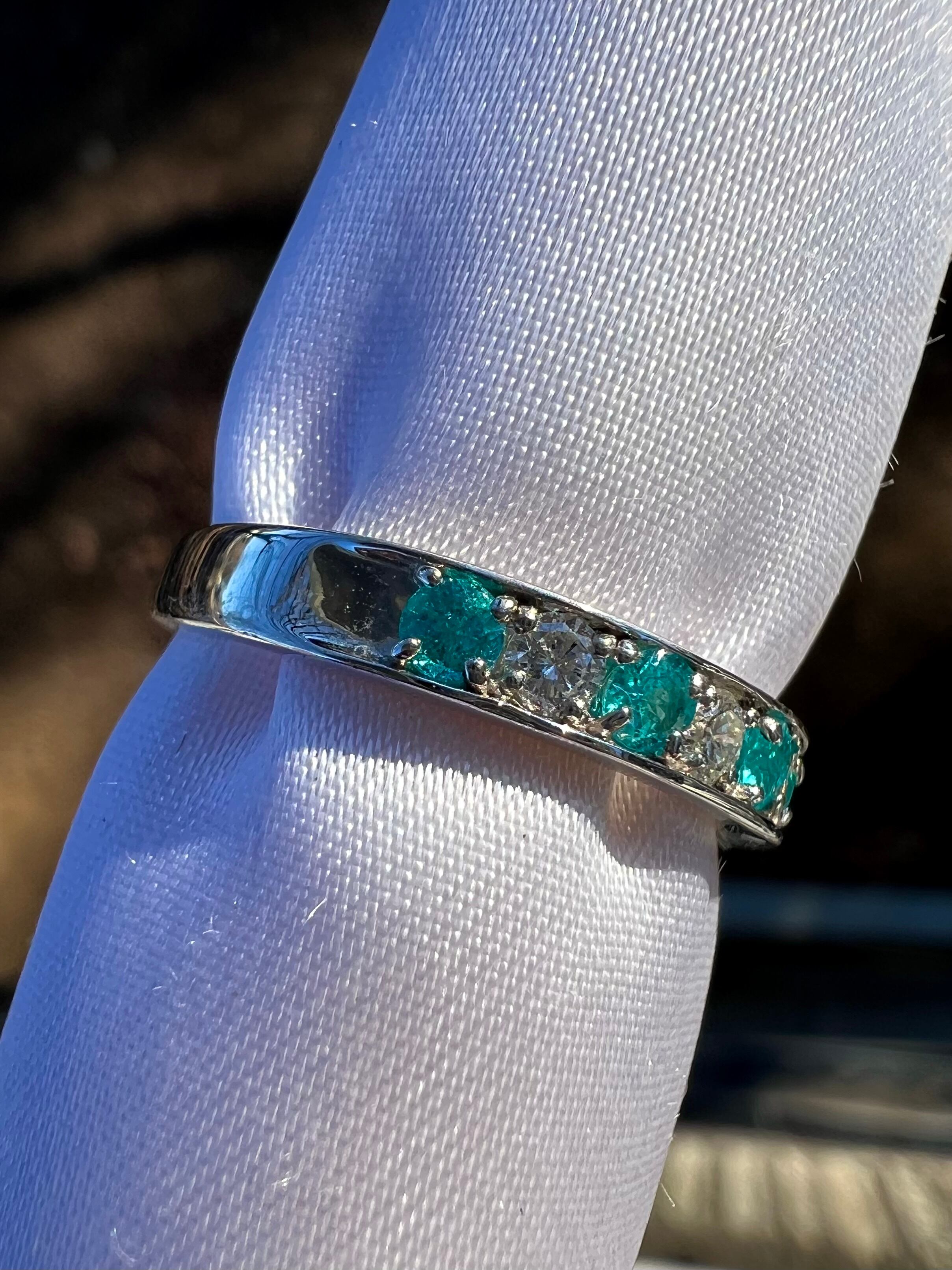 パライバ5石色合わせして一文字エタニティリングに仕上げる贅沢さ