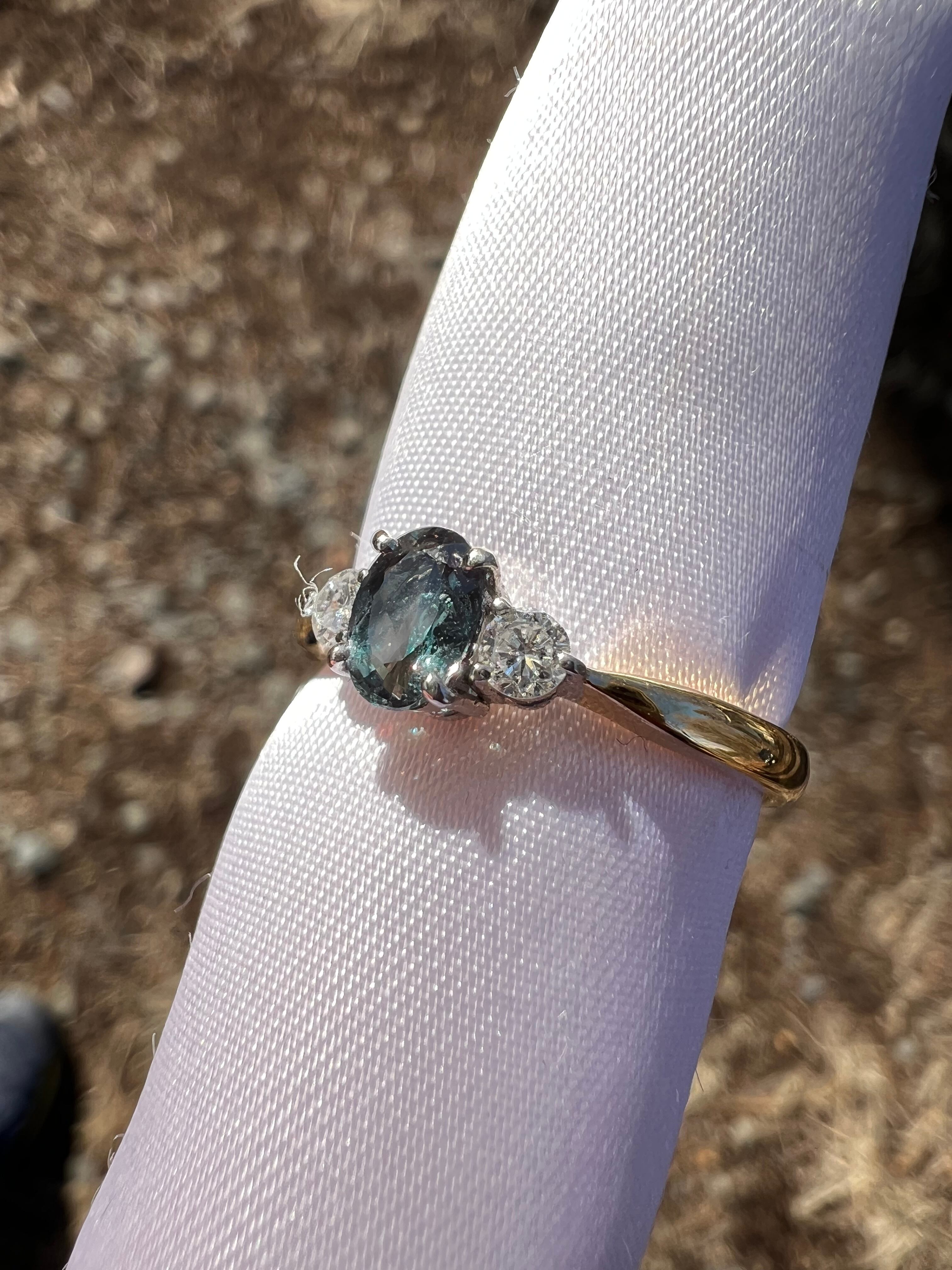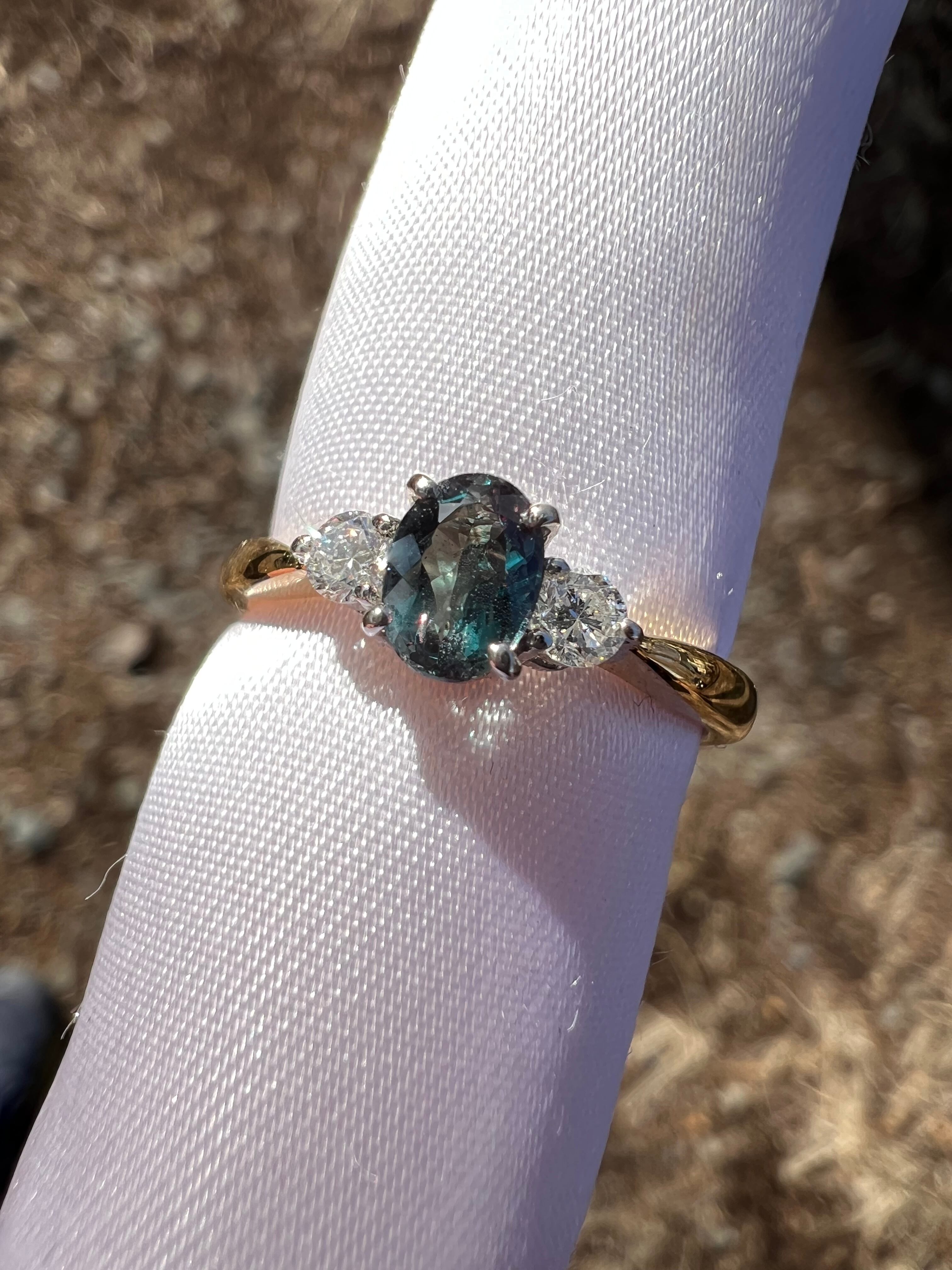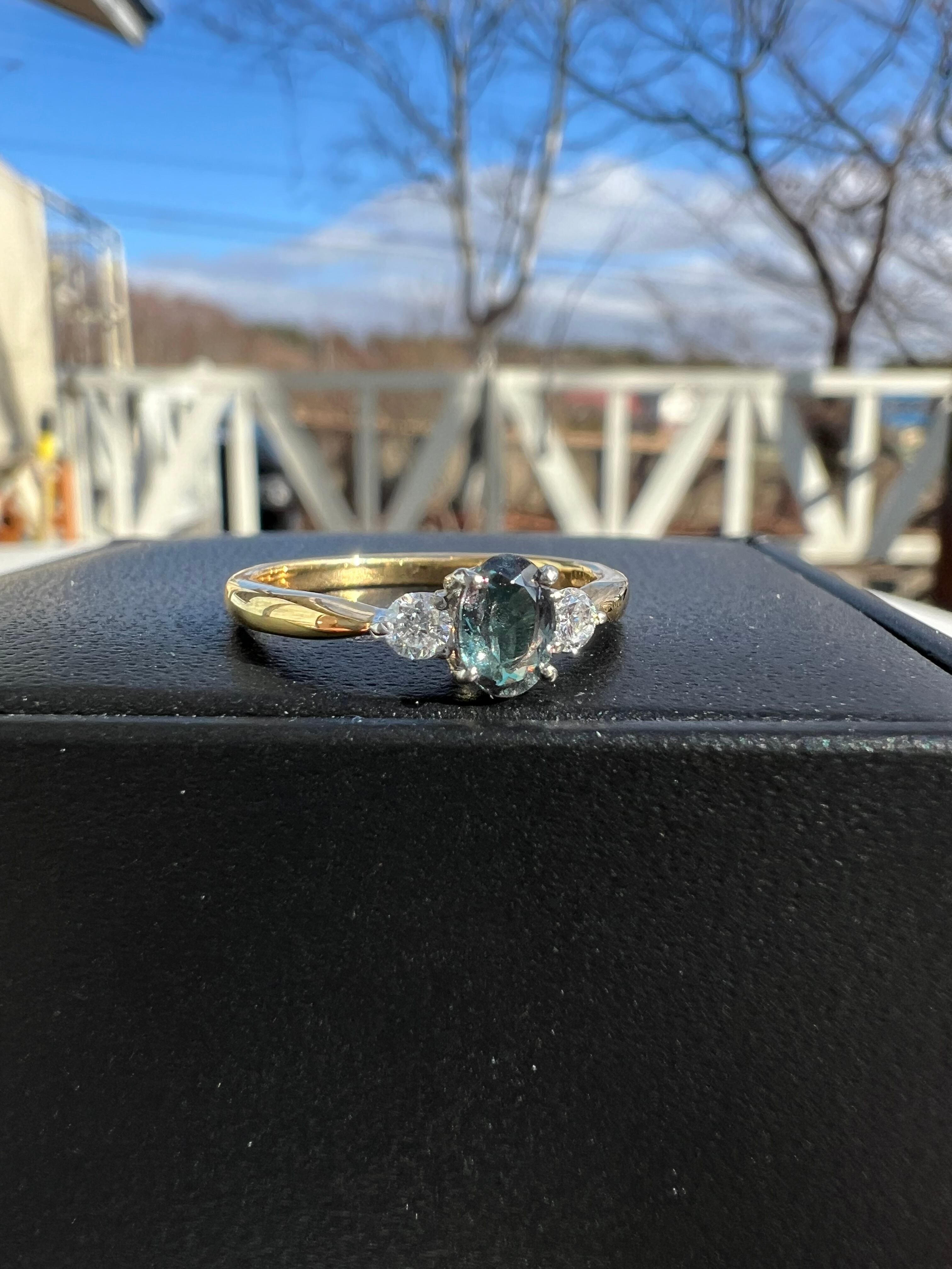 ブラジル産の美しいアレキサンドライトをリングにしました。アレキサンドライトは、自然光や照明の下で石の色が変わるという特徴があり、神秘的で幻想的な魅力を持っています。