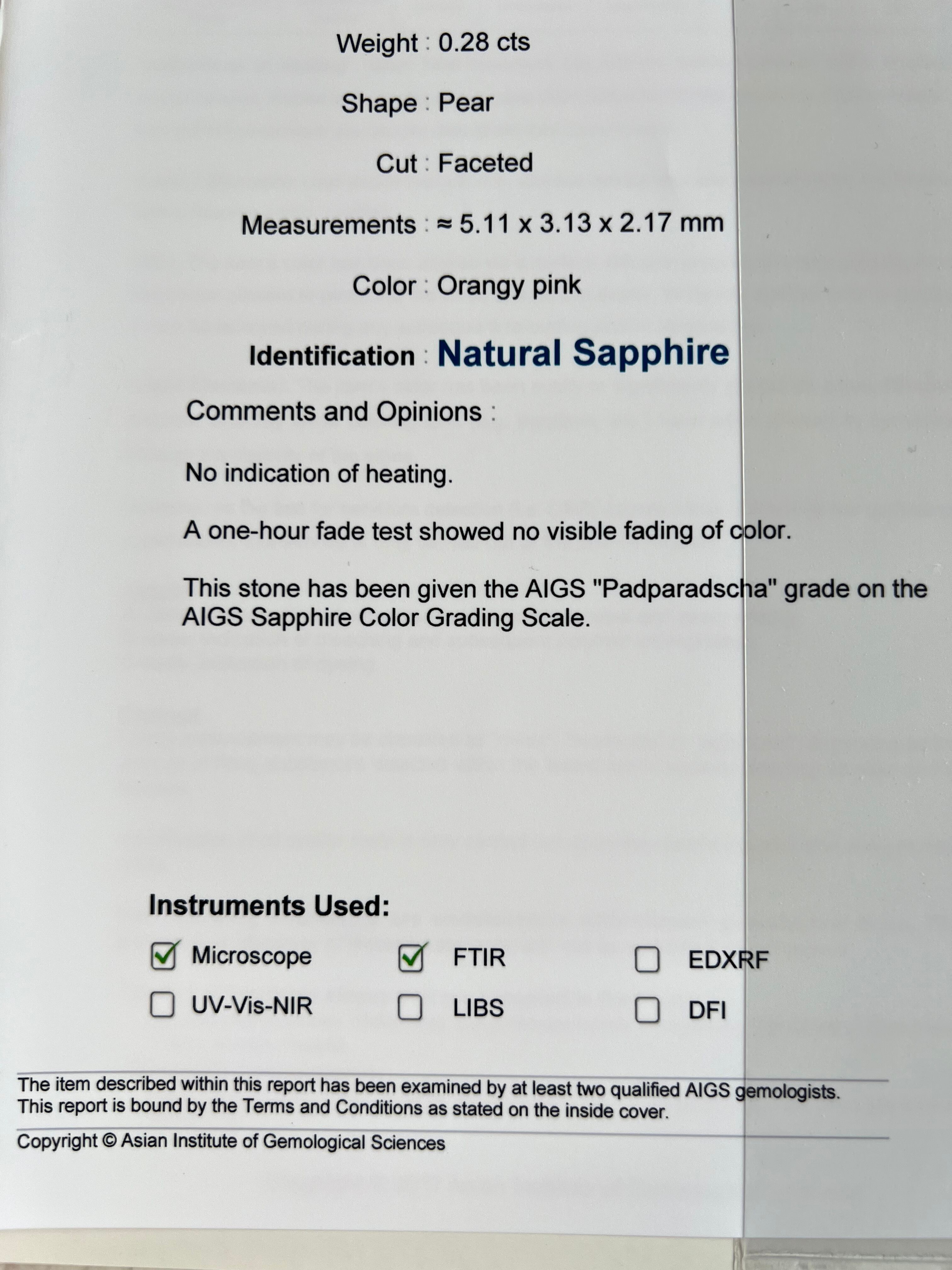 非加熱パパラチアサファイヤK18PGダイヤモンドネックレス AIGS鑑別書付属