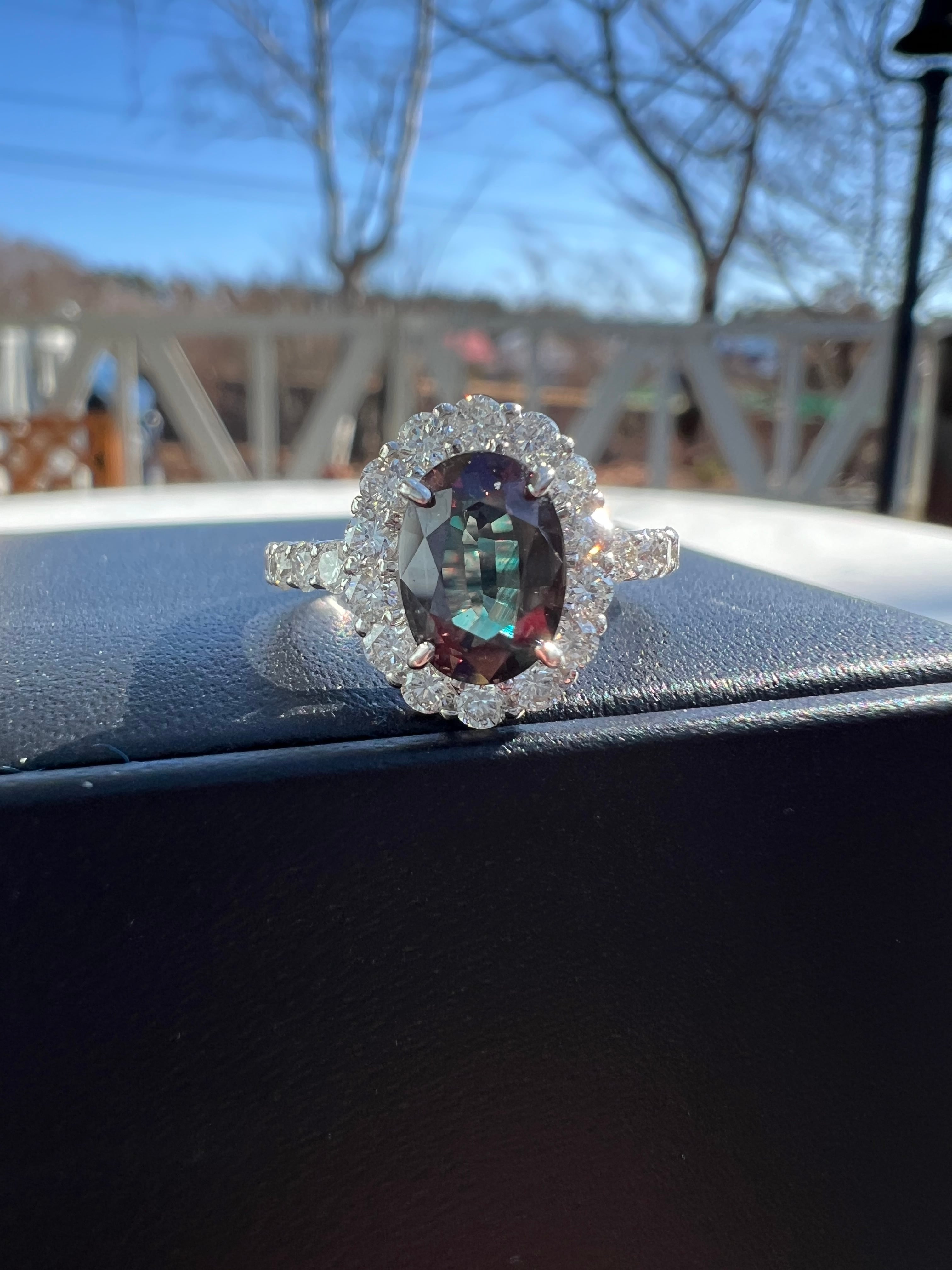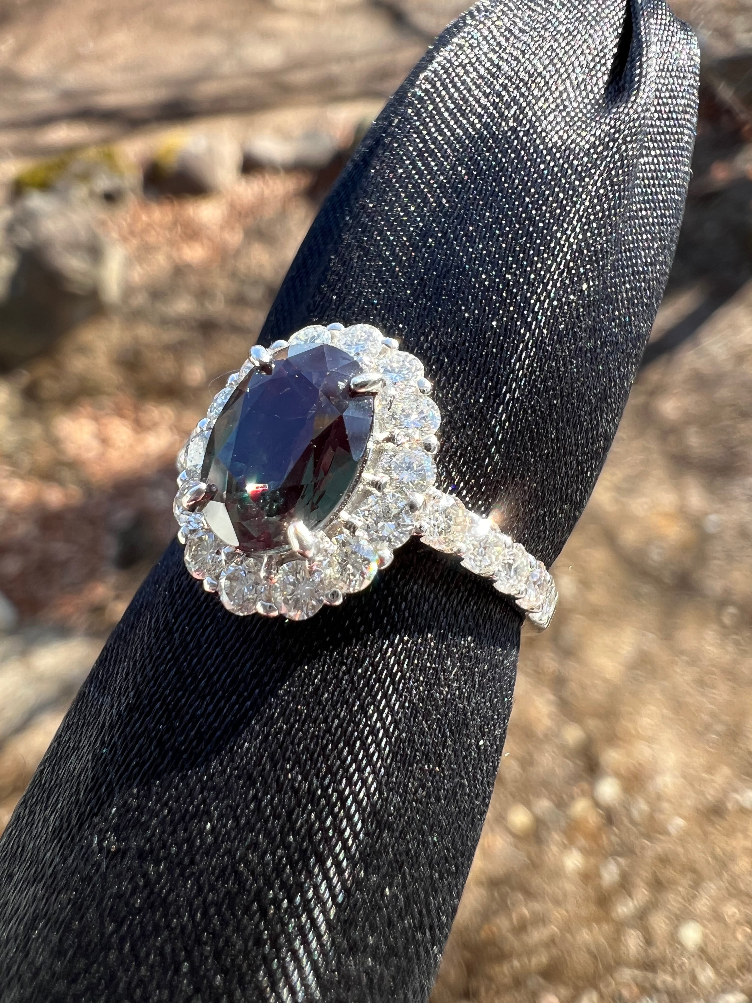 Pt900 ブラジル産アレキサンドライトダイヤモンドリング Emerald mine社製 CGL鑑別書付属