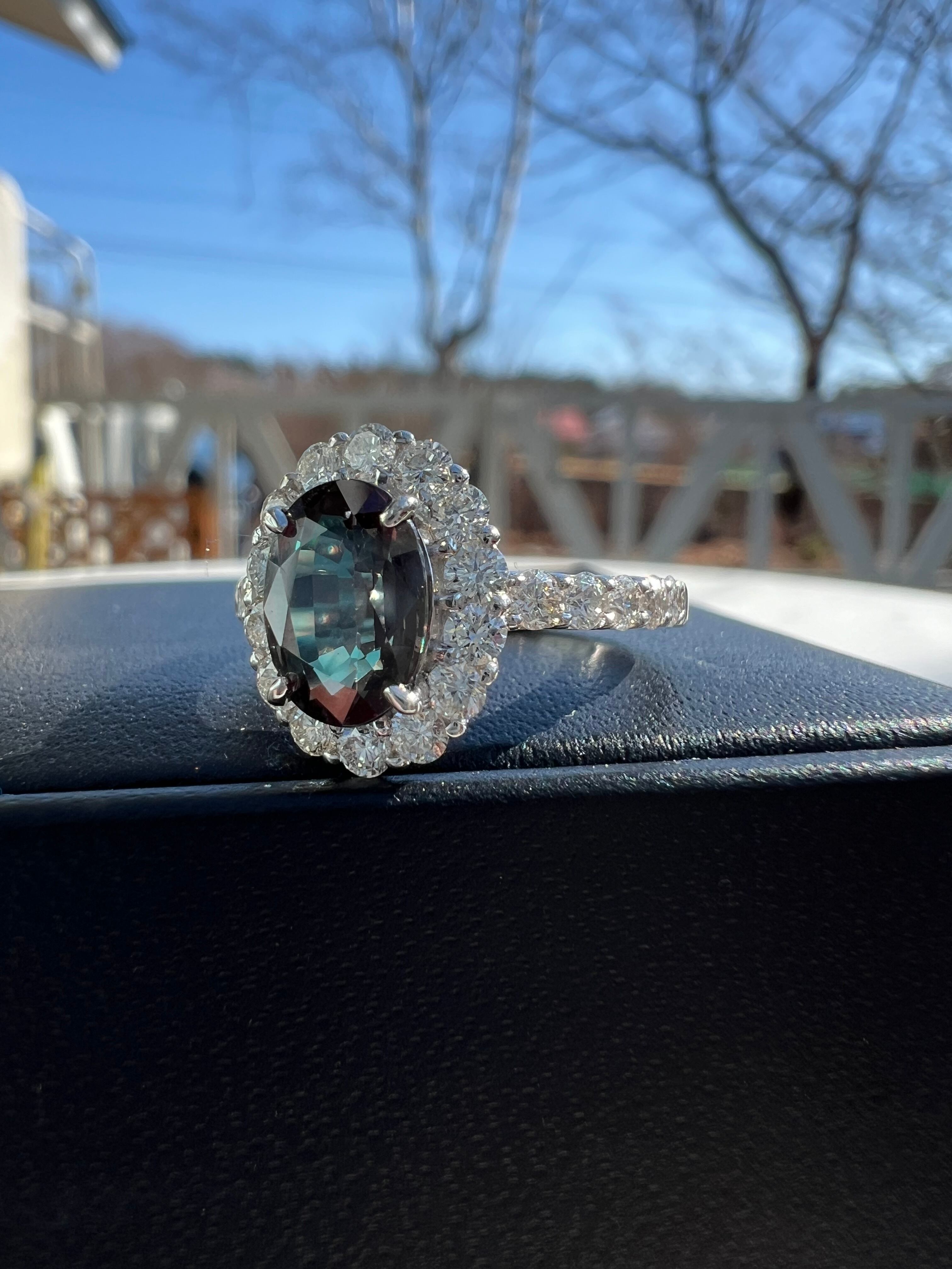 emerald mine社製ブラジル産の美しいアレキサンドライトをリングにしました。アレキサンドライトは、自然光や照明の下で石の色が変わるという特徴があり、神秘的で幻想的な魅力を持っています。
