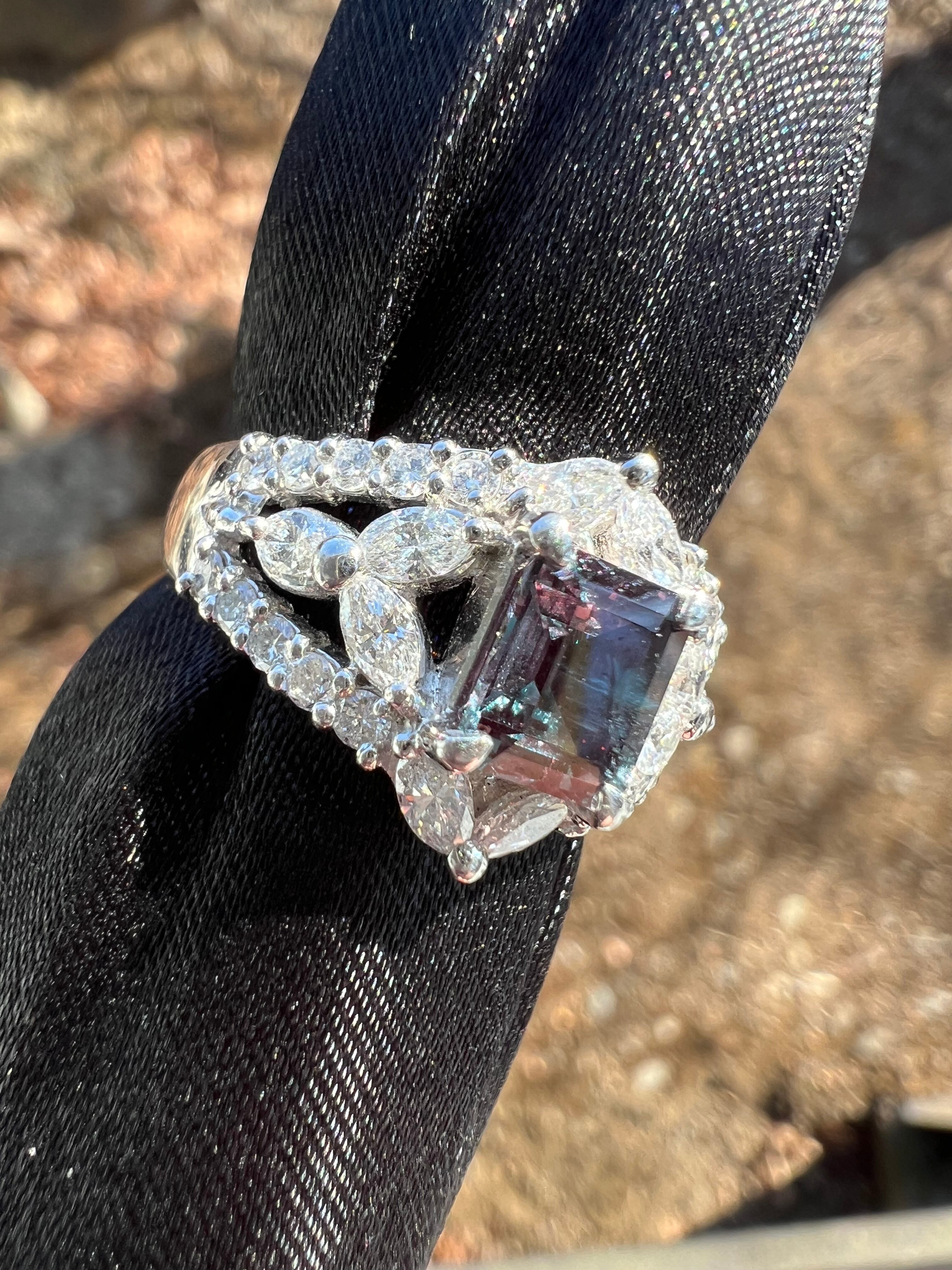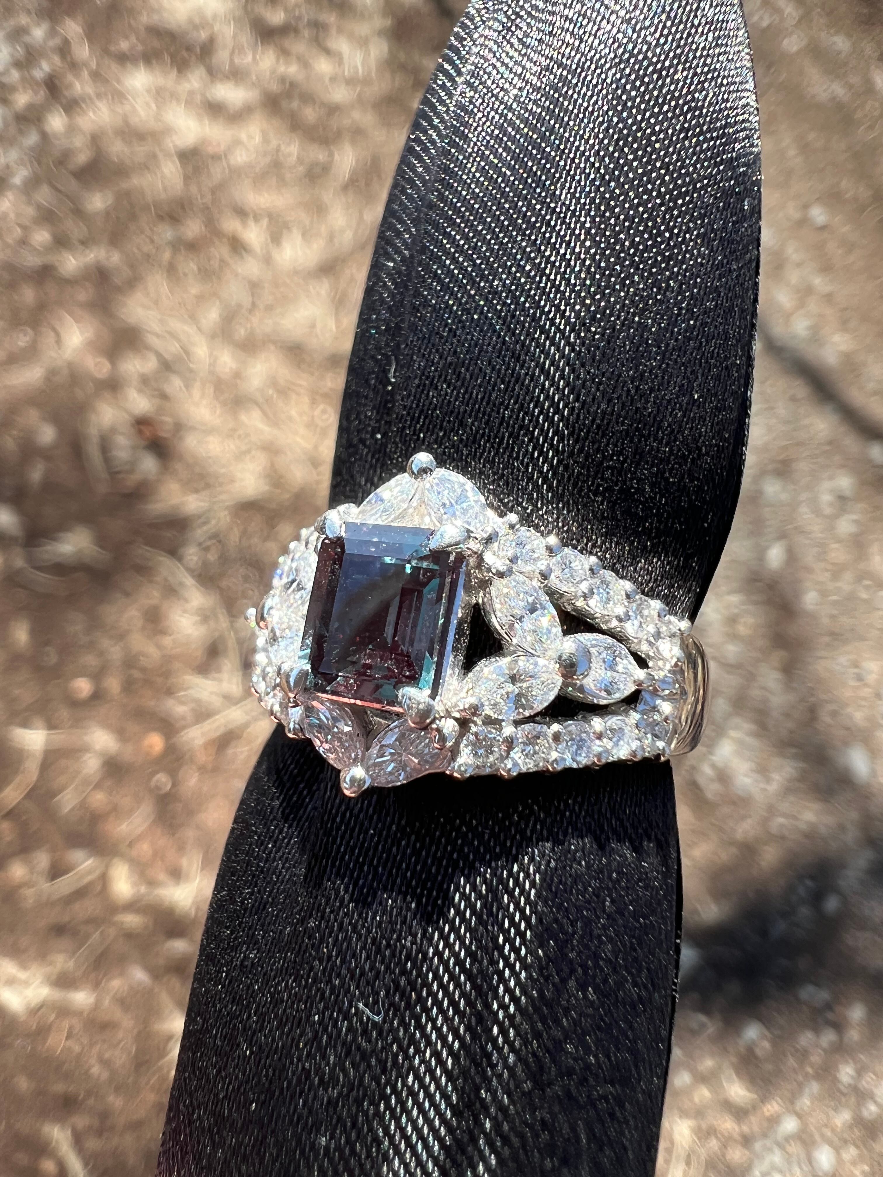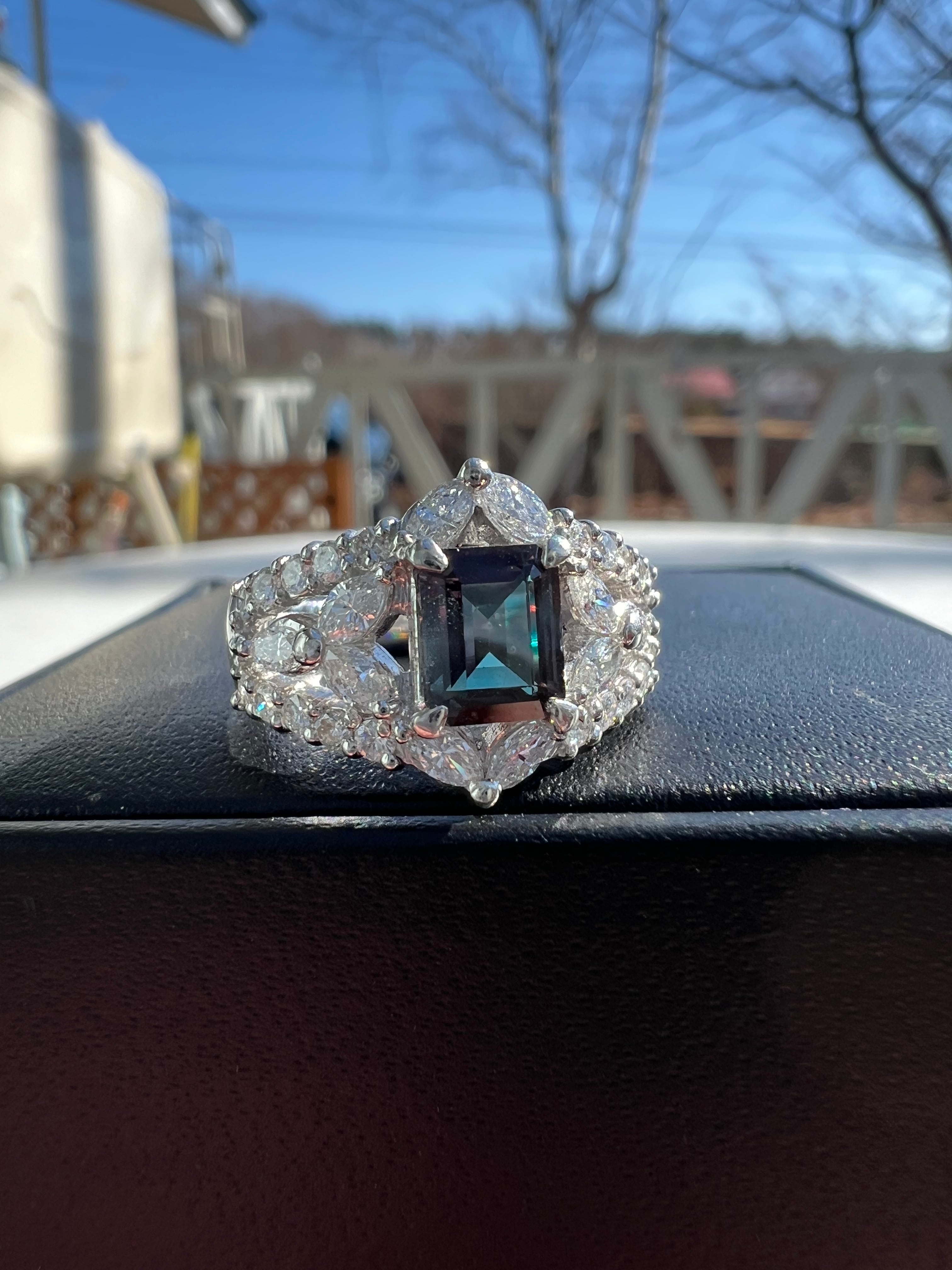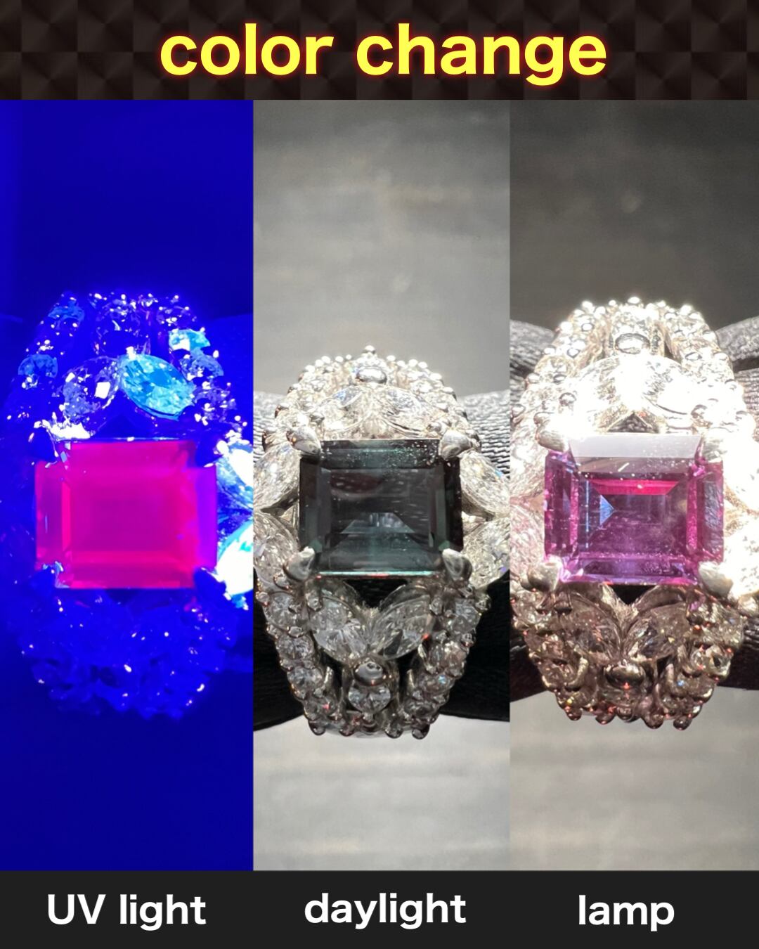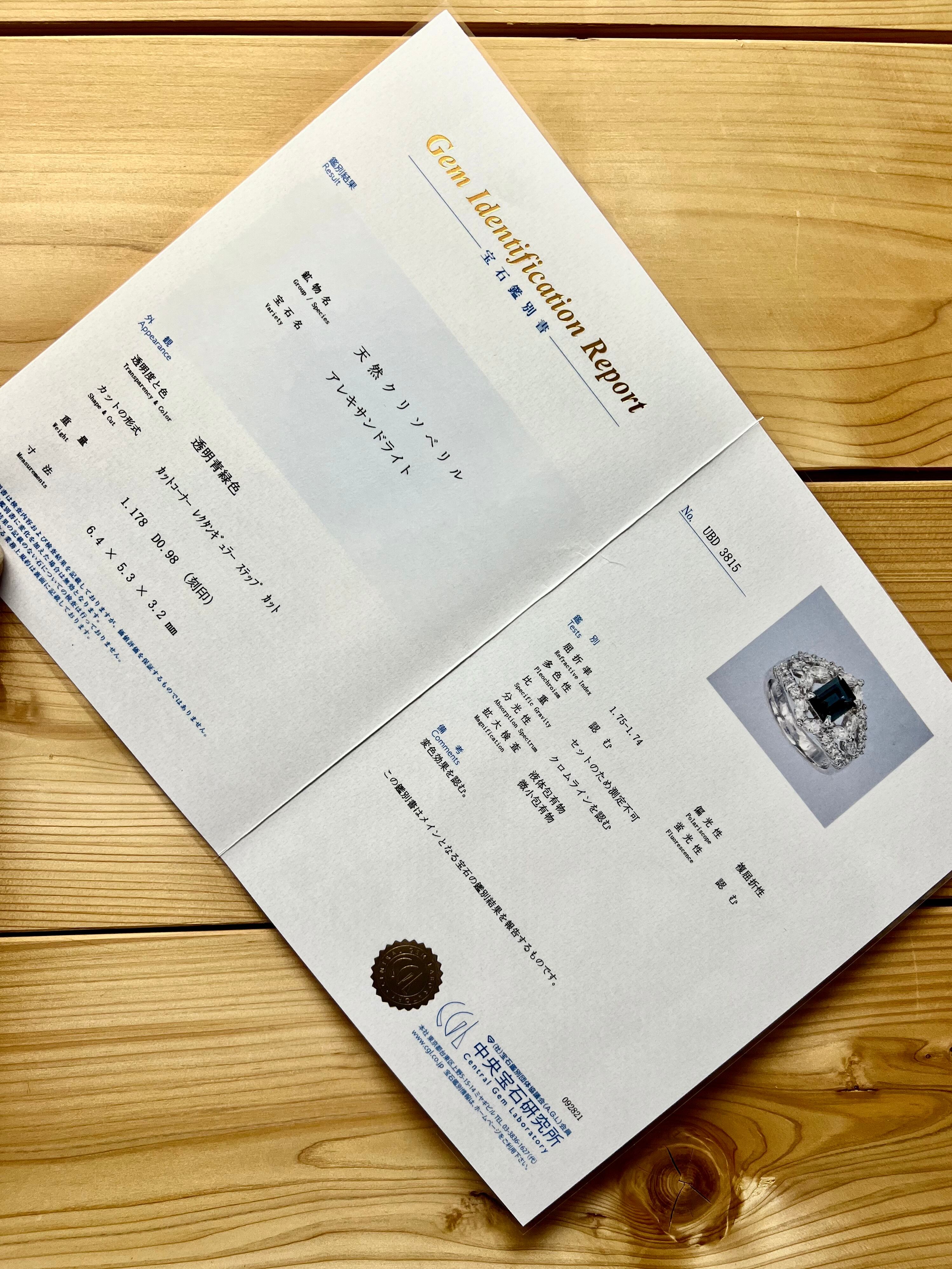 Pt900 ブラジル産アレキサンドライトダイヤモンドリング エメラルドマイン社製 鑑別書付属