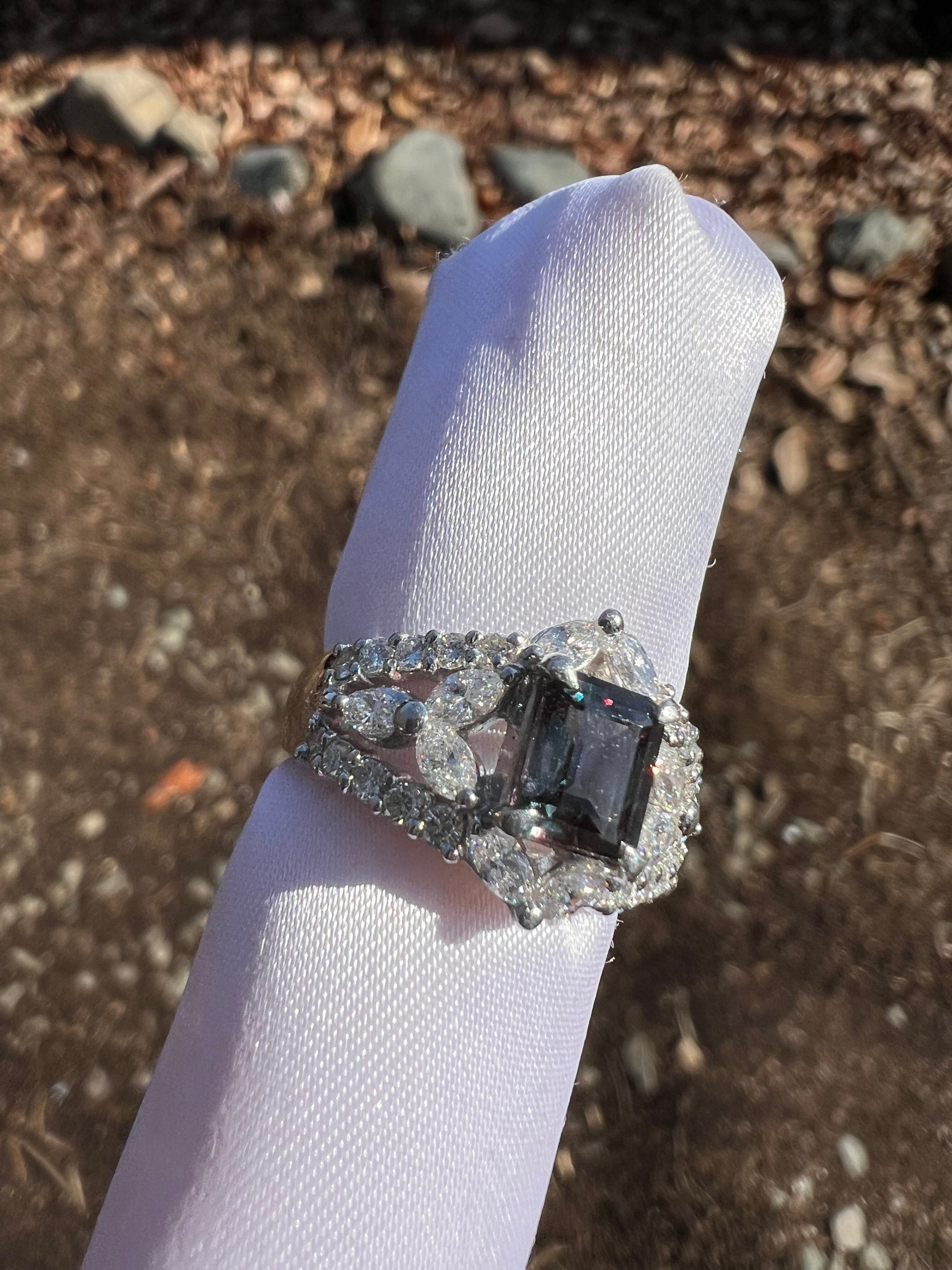emerald mine社製ブラジル産の美しいアレキサンドライトをリングにしました。アレキサンドライトは、自然光や照明の下で石の色が変わるという特徴があり、神秘的で幻想的な魅力を持っています。