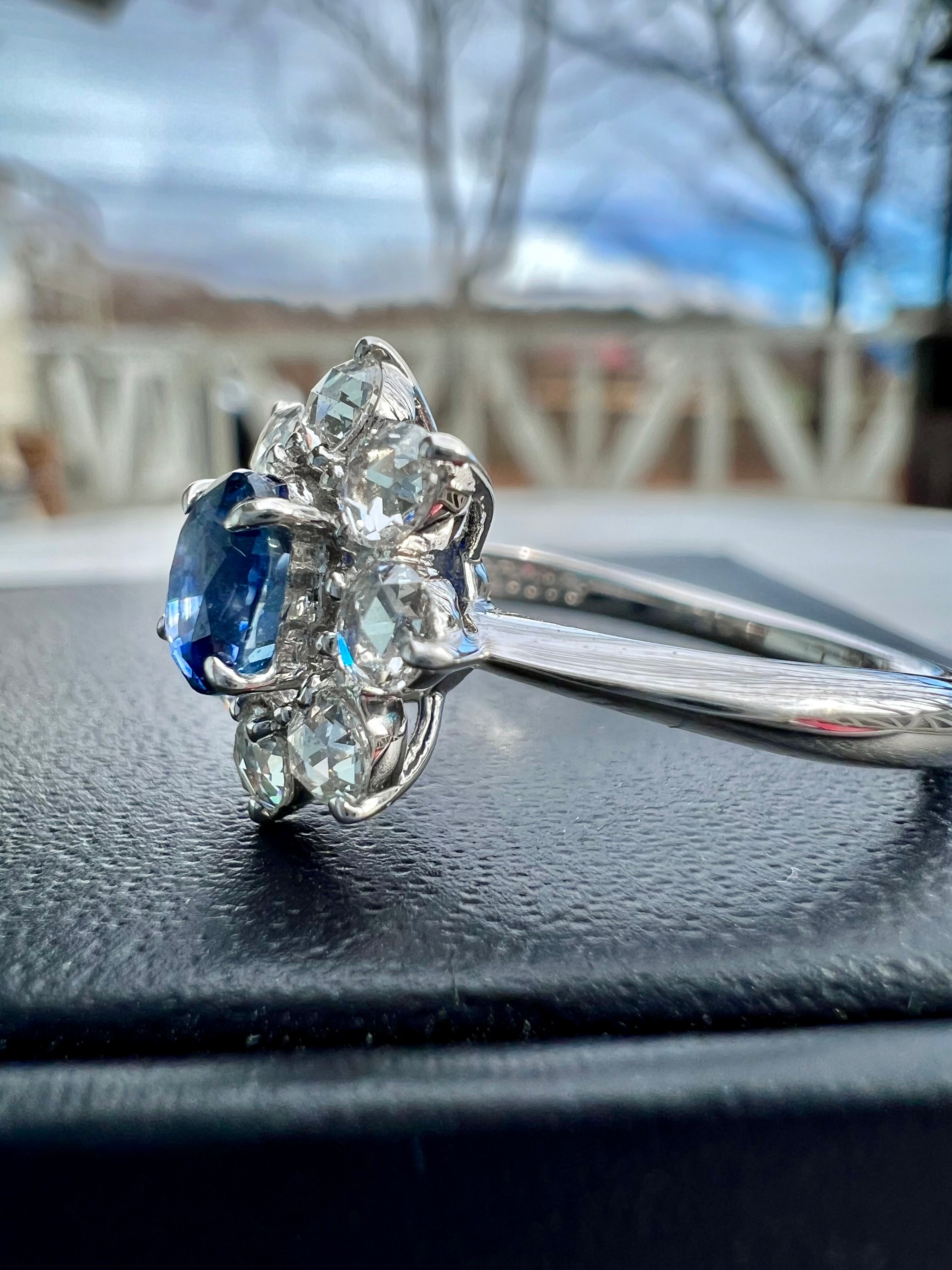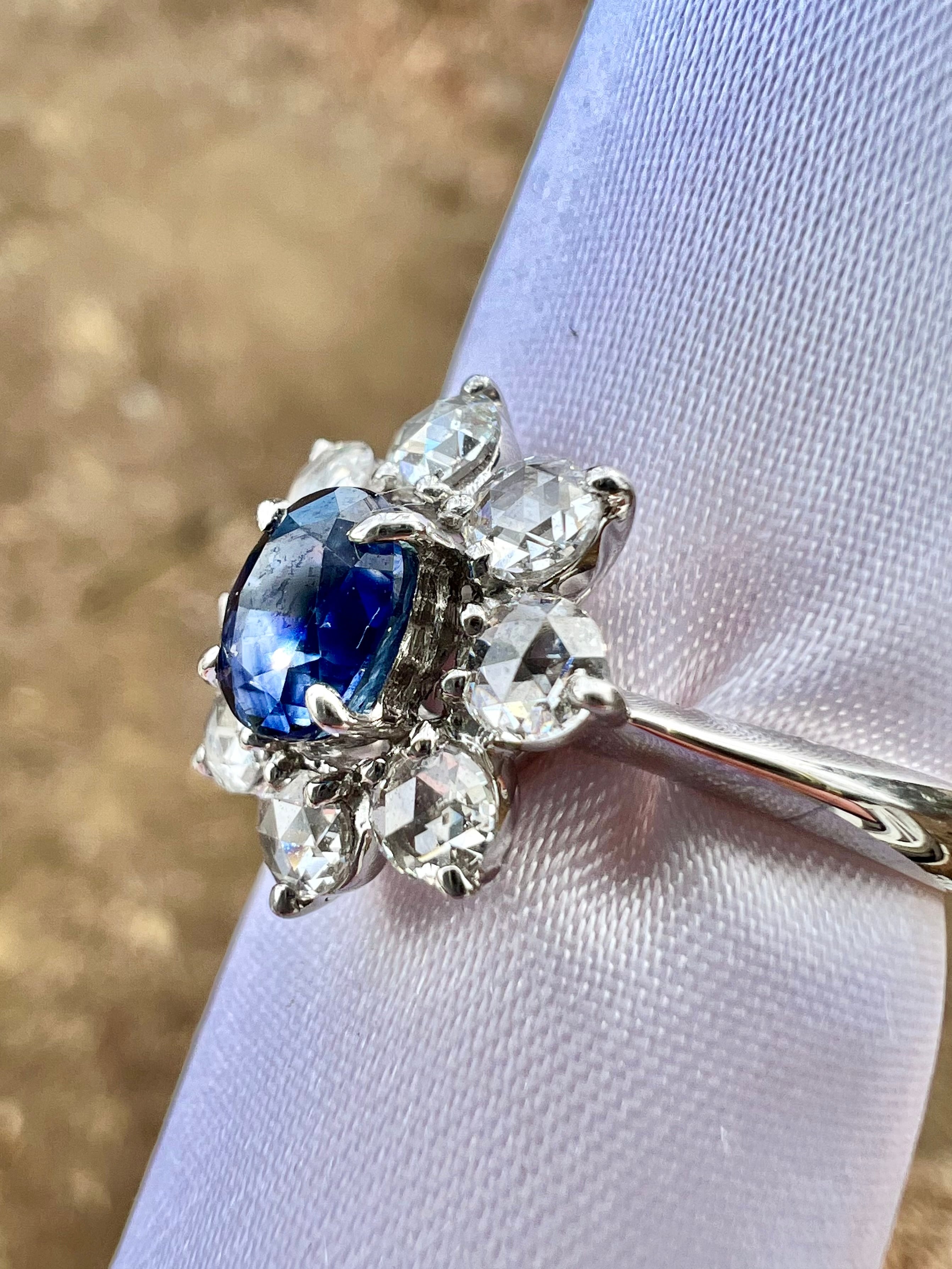 激レアPt900カシミールサファイヤローズカットダイヤモンドリング GIA鑑別付属