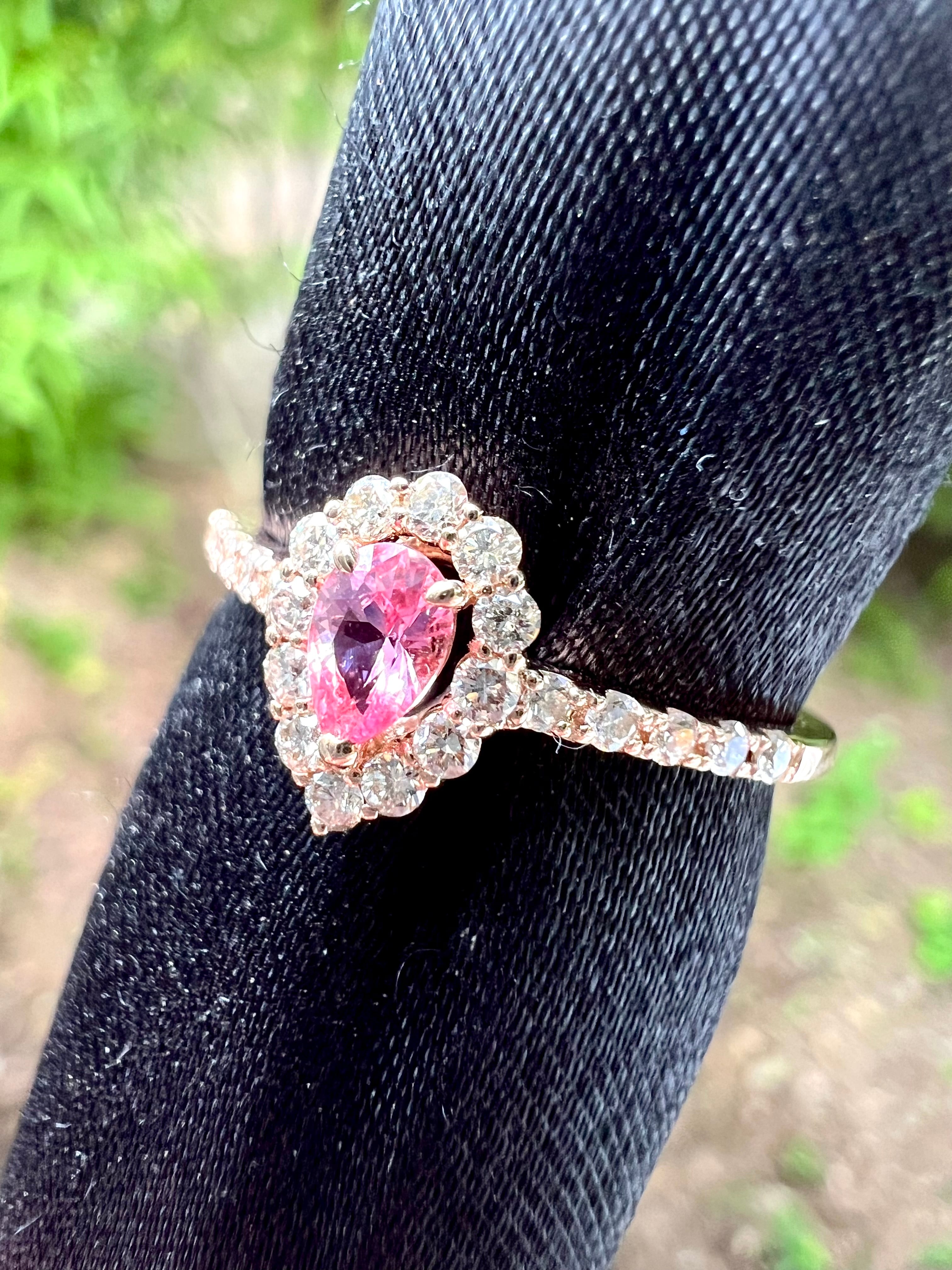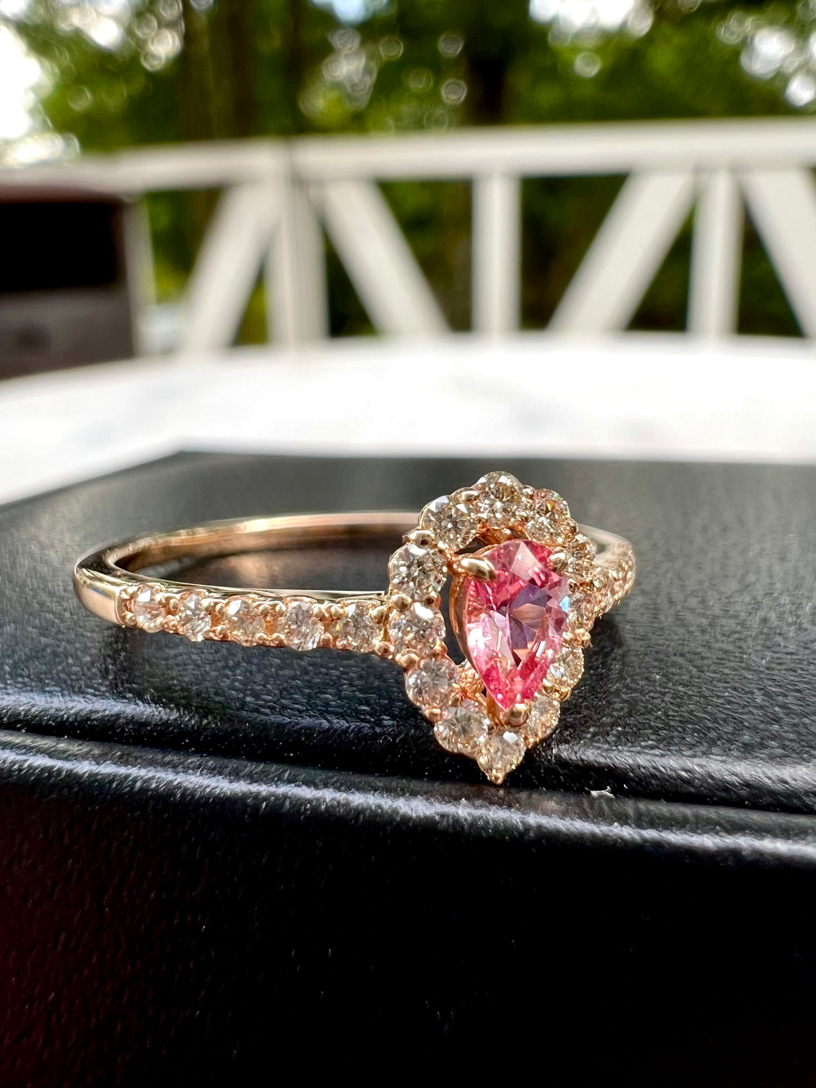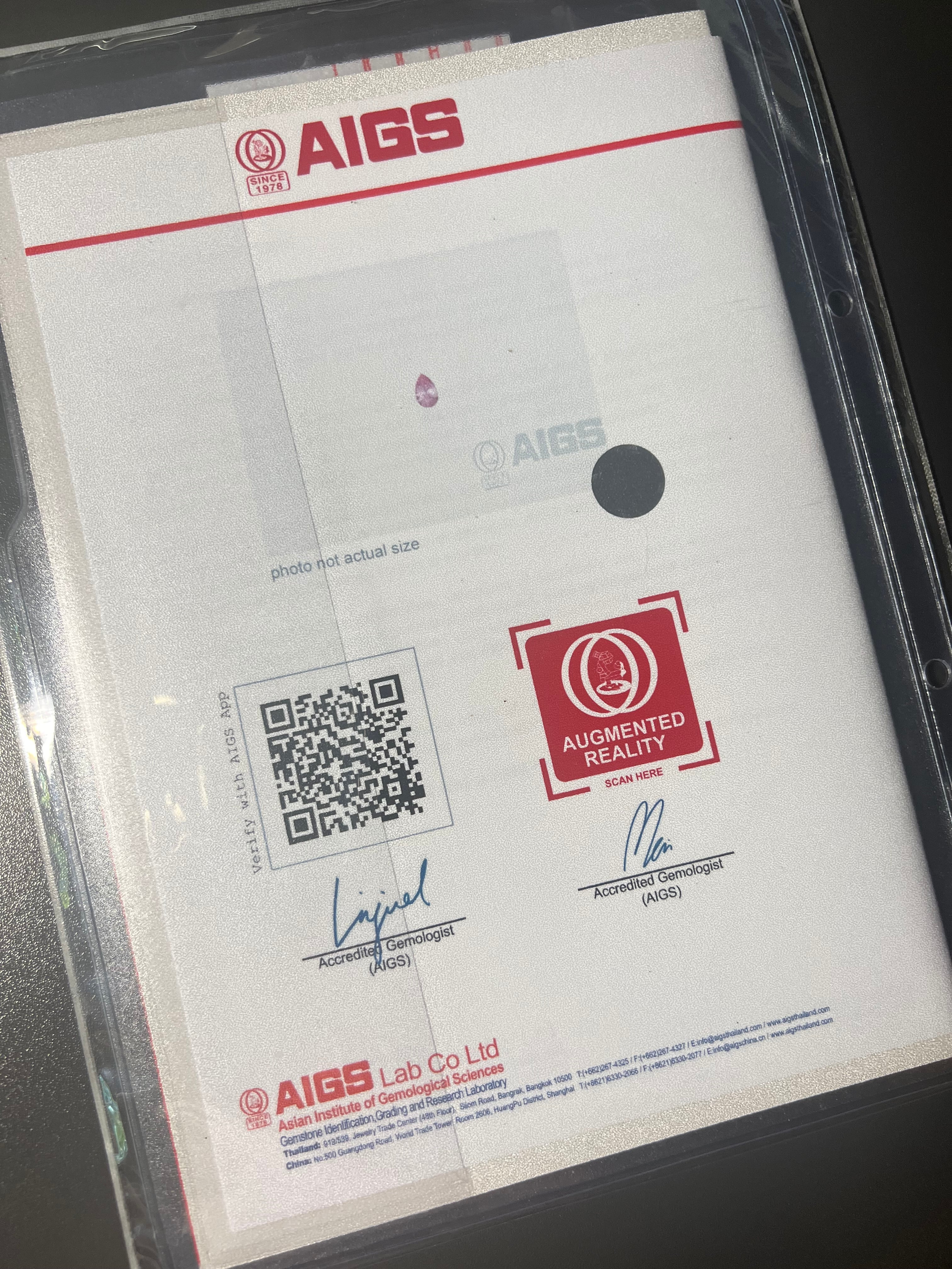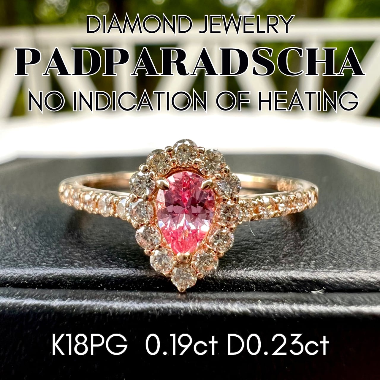 非加熱パパラチアサファイヤK18PGダイヤモンドリング AIGS鑑別書付属
