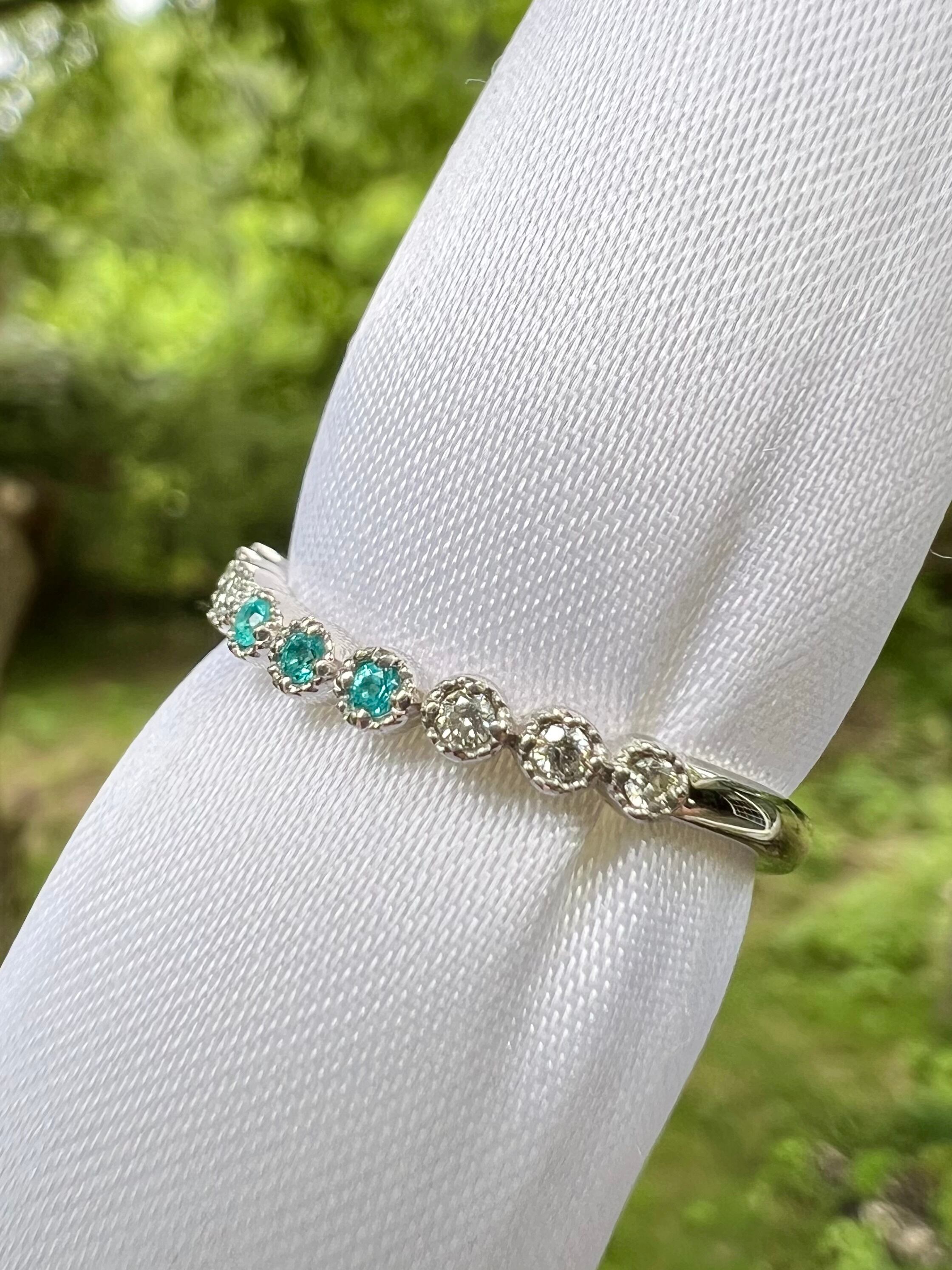 Pt900 ブラジル産 パライバトルマリン Diamond Half eternity ring