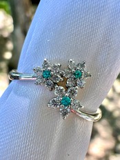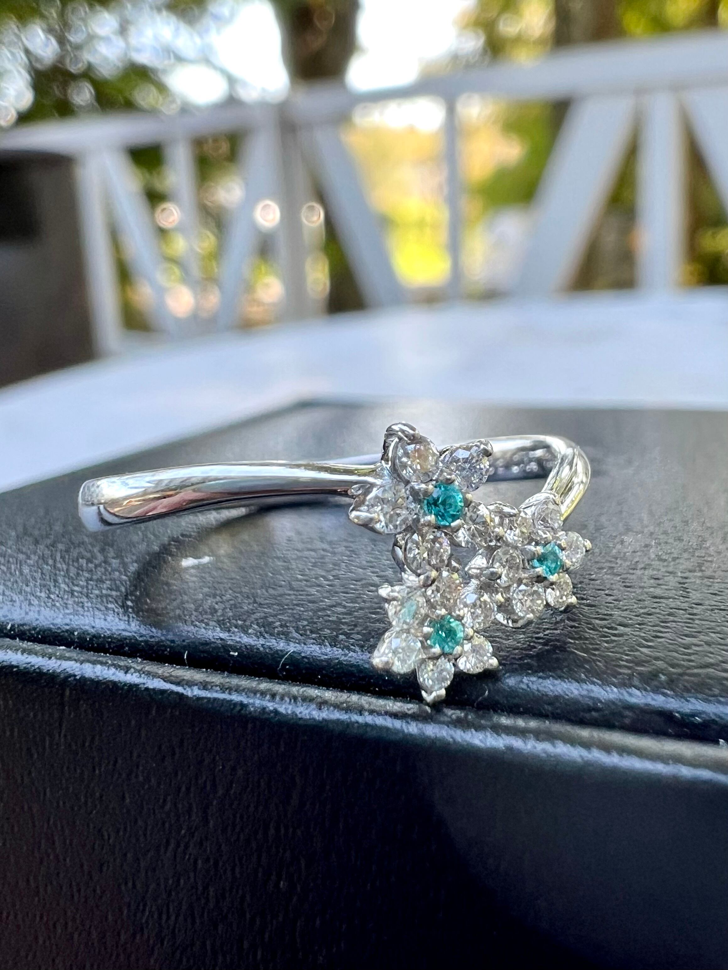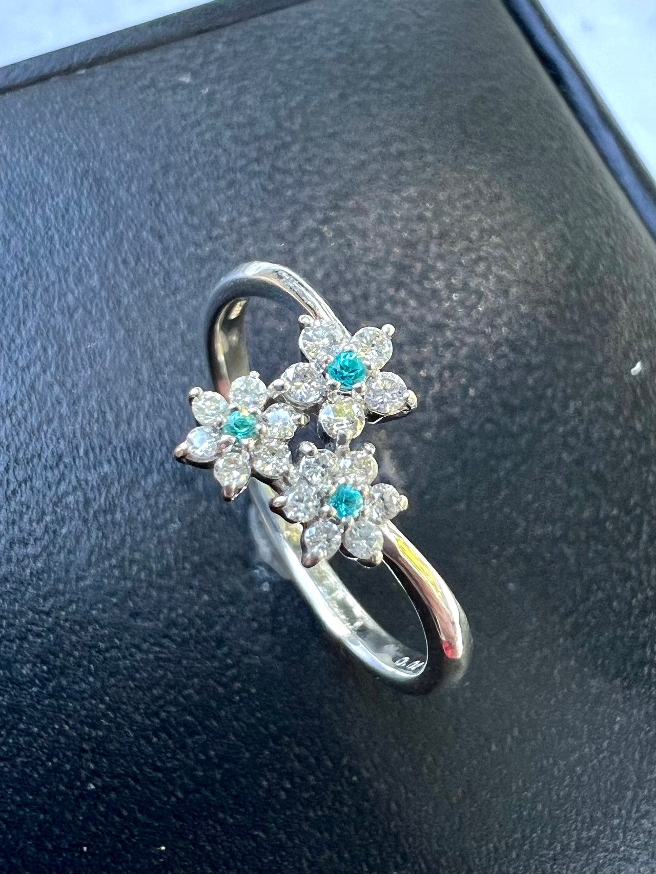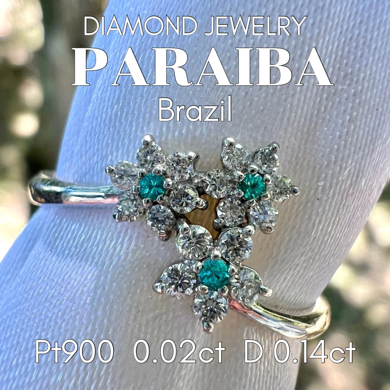 Pt900フラワーモチーフブラジル産パライバトルマリンリング《小さいながらも綺麗なパライバ》