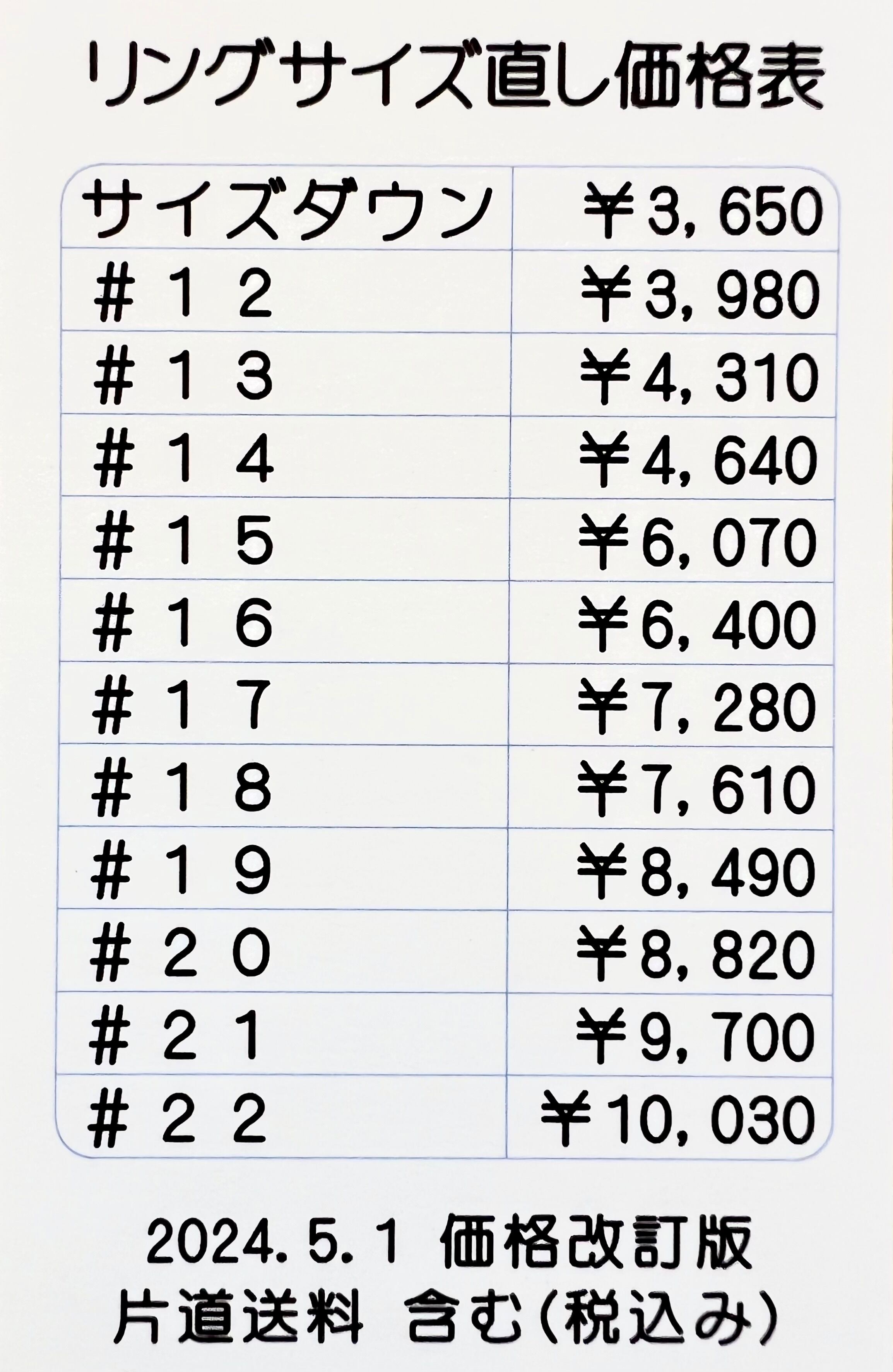 サイズお直しをされるお客様は別途サイズごとの『サイズお直し』をご購入下さい。